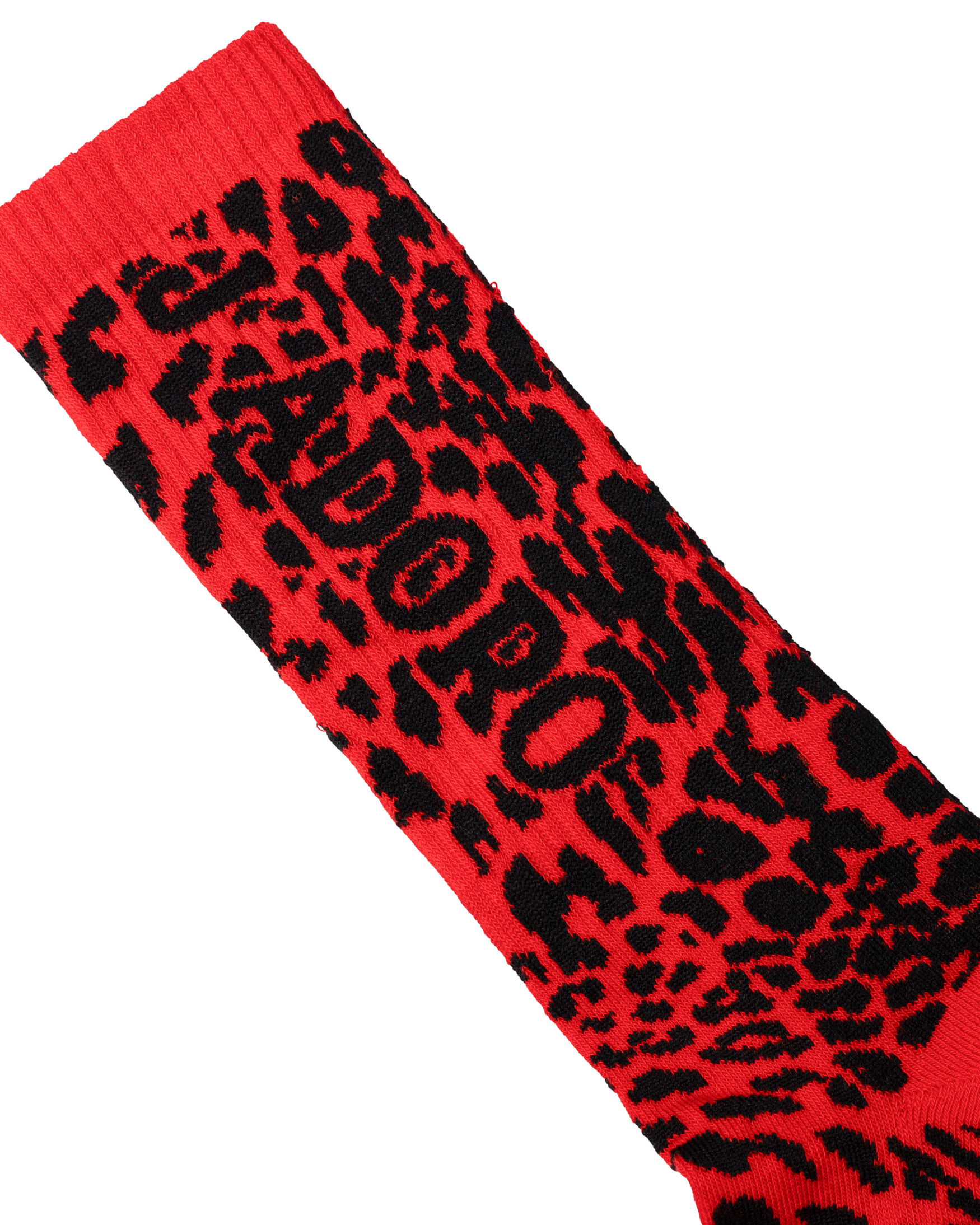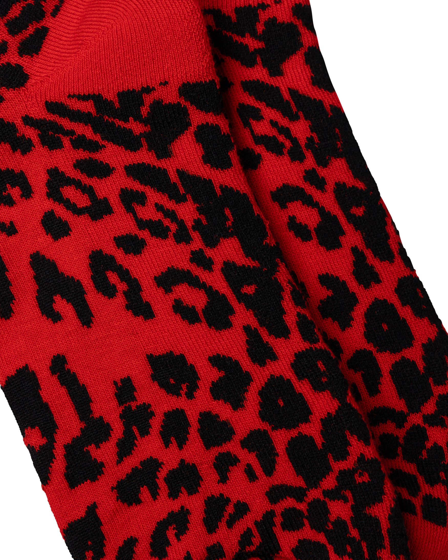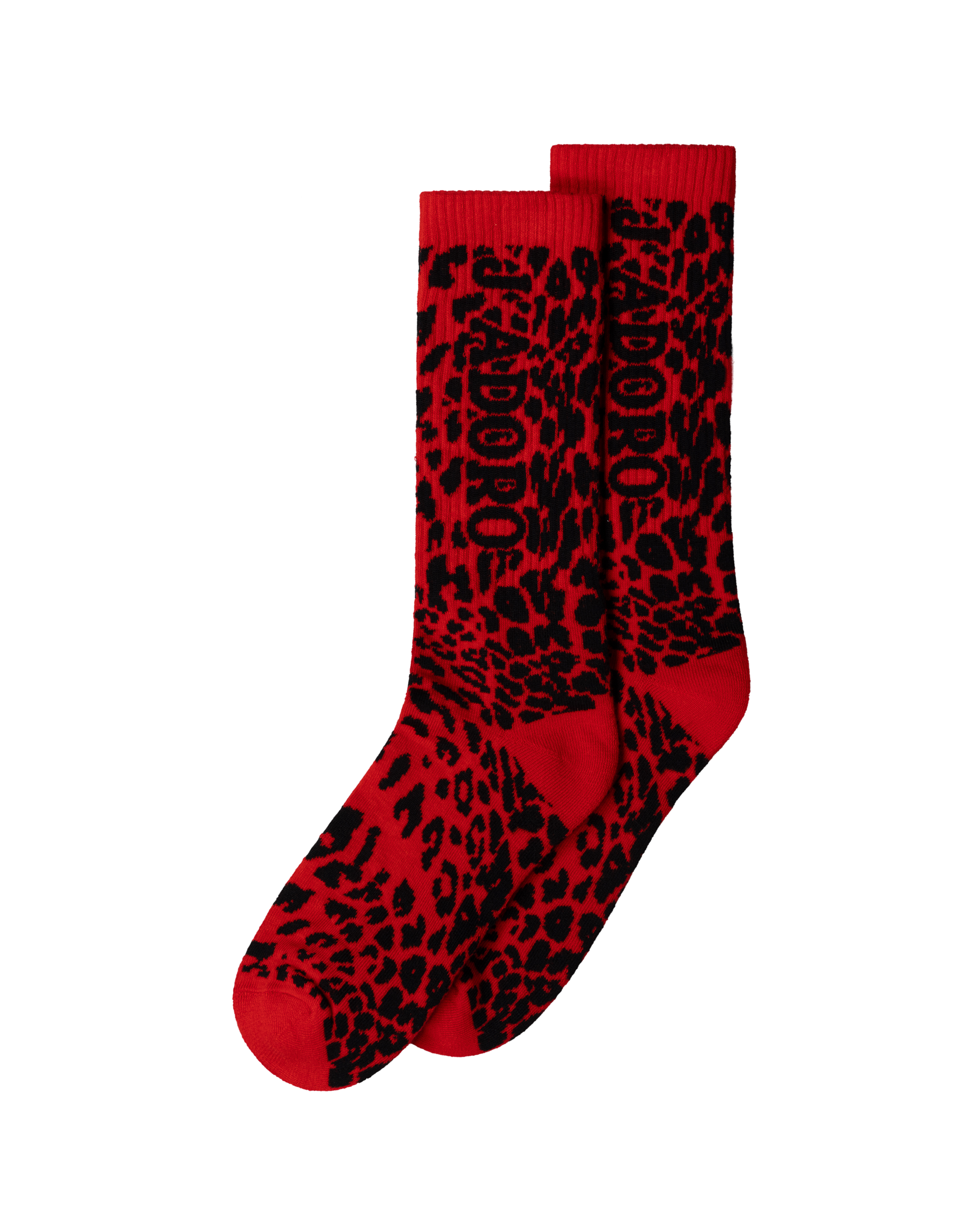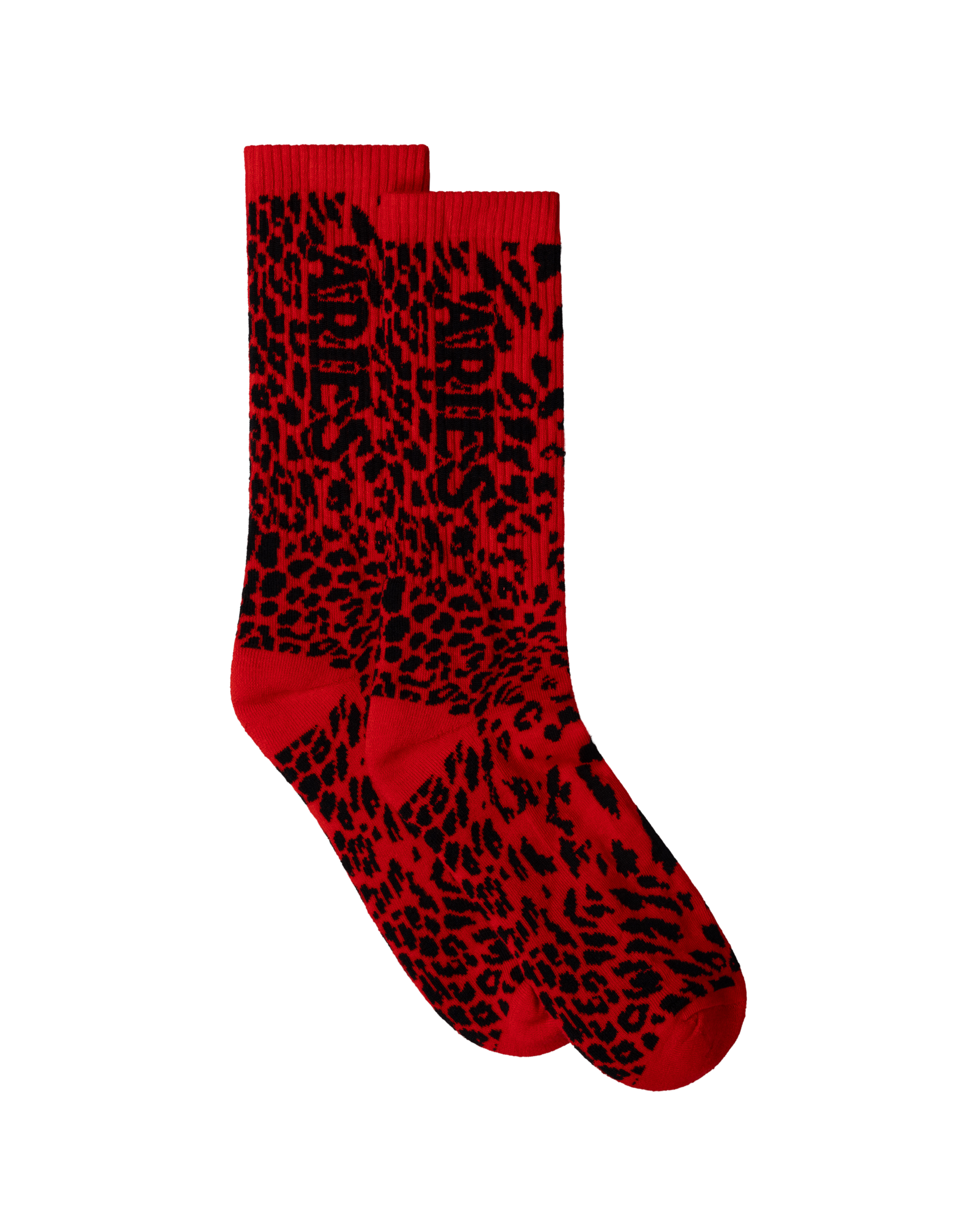 Jacquard socks in a sports-blend mix yarn, with leopard all over and J'adoro Aries graphic. Padded sole for extra comfort.