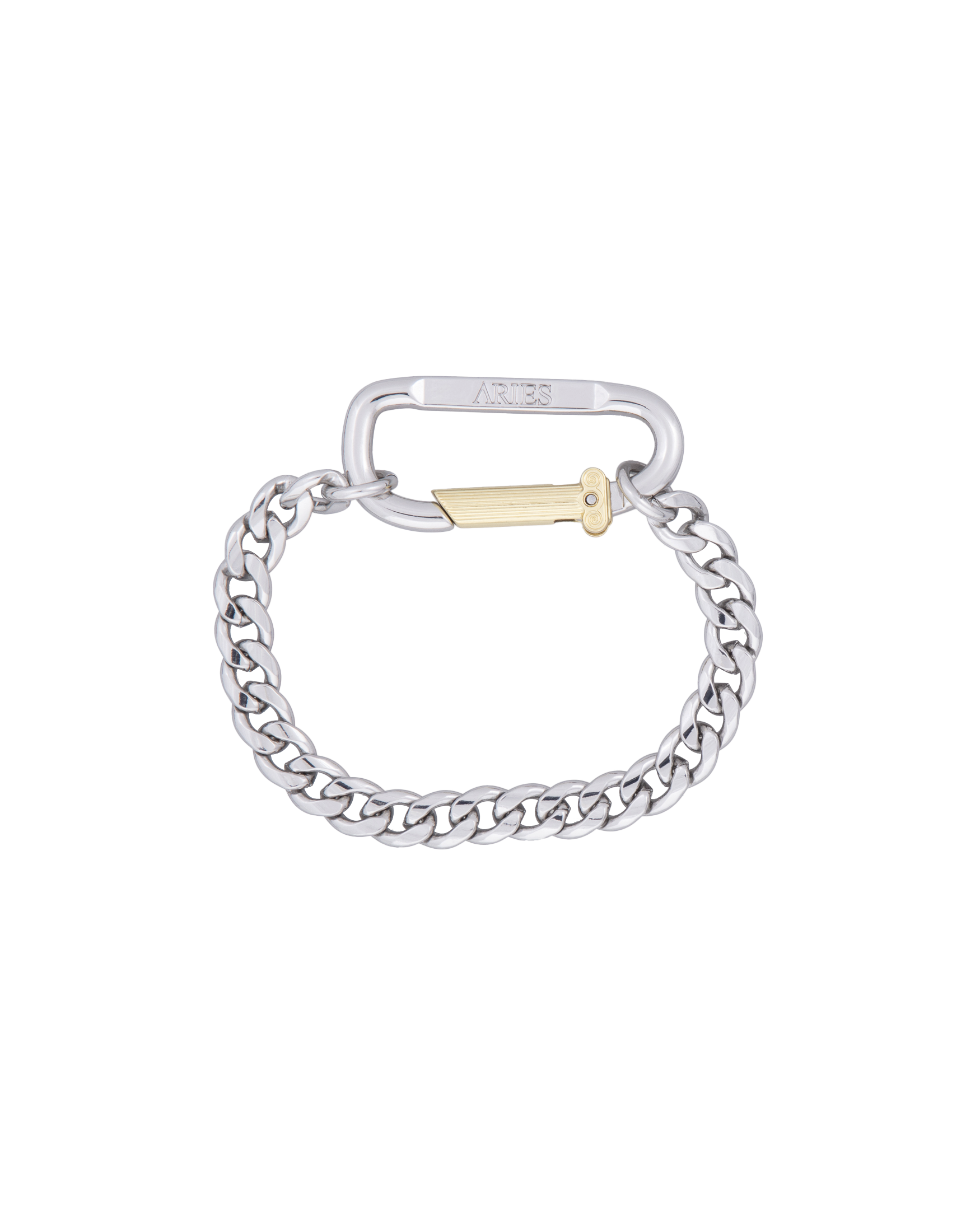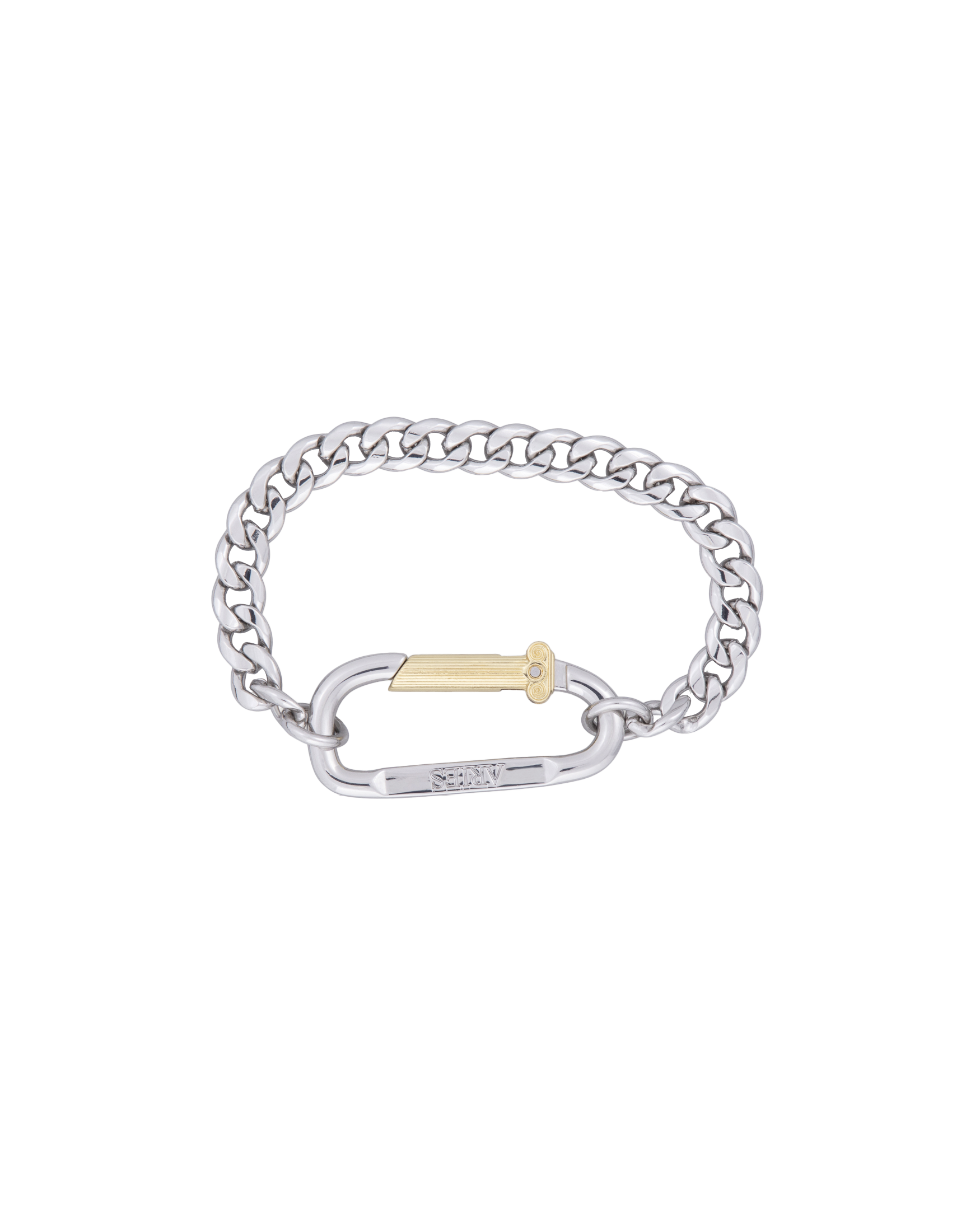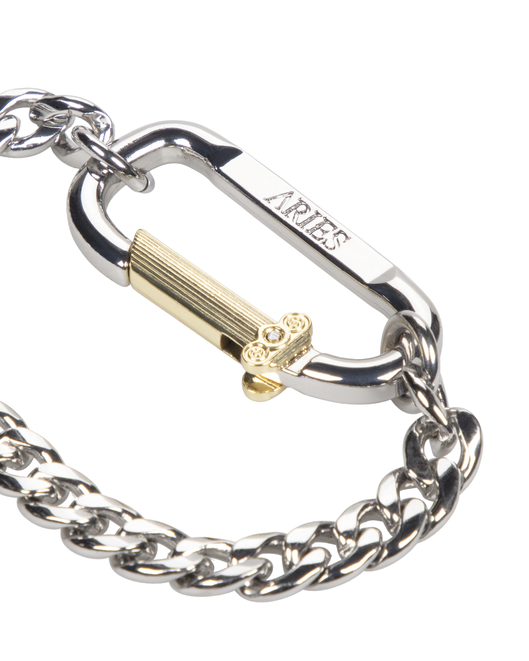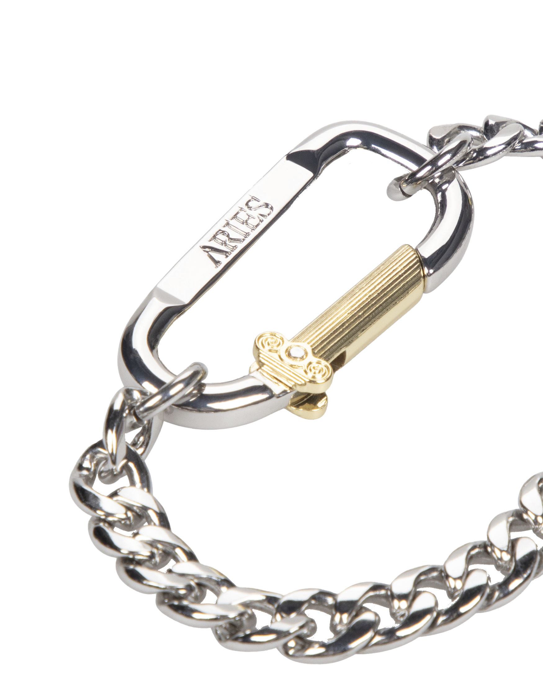 Mini carabiner chain bracelet. Zinc alloy 50% Brass 5% Iron 45%