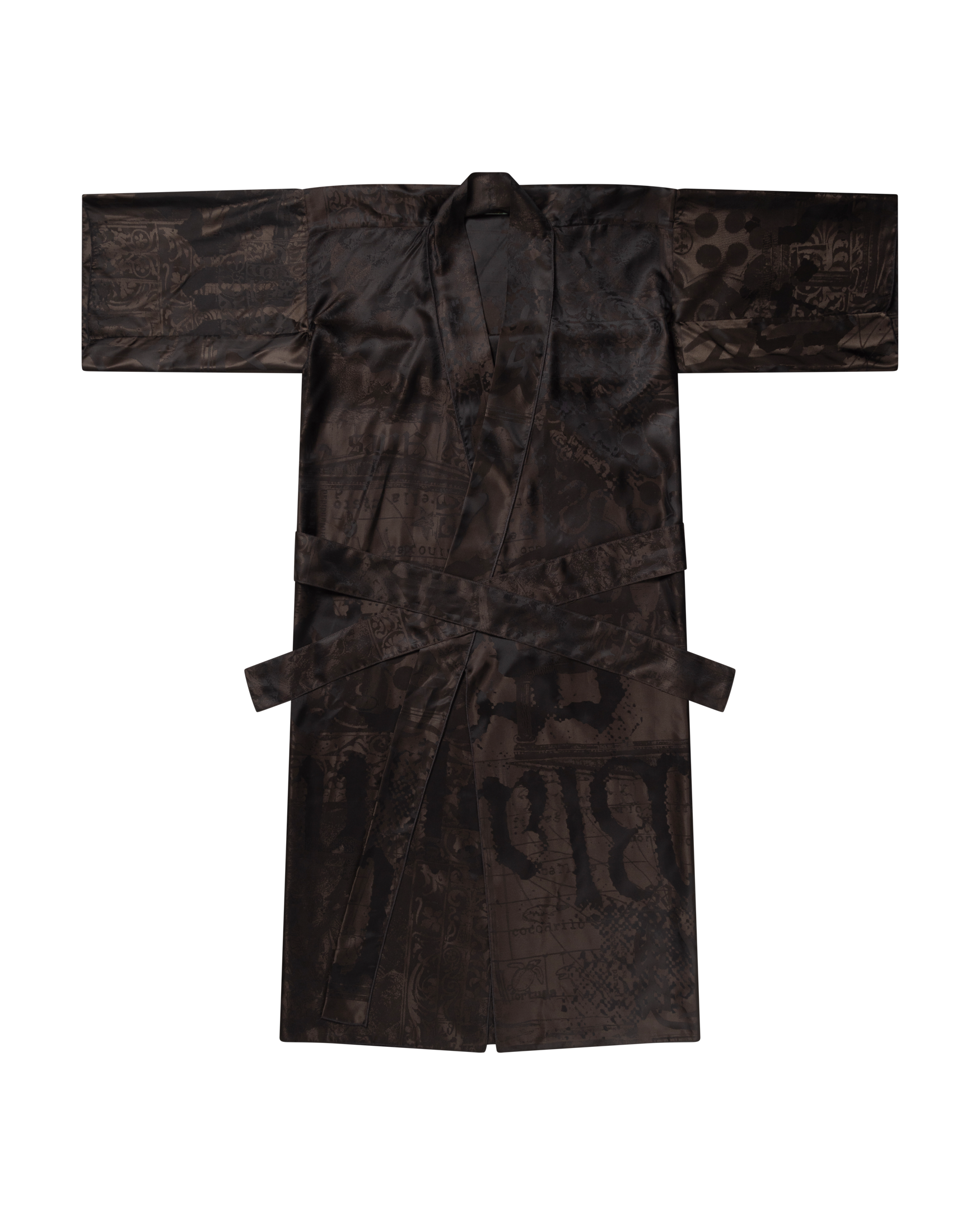 Kimono dress in a luxe silky 100% cupro fabric with a tie belt in a custom Aries jacquard.