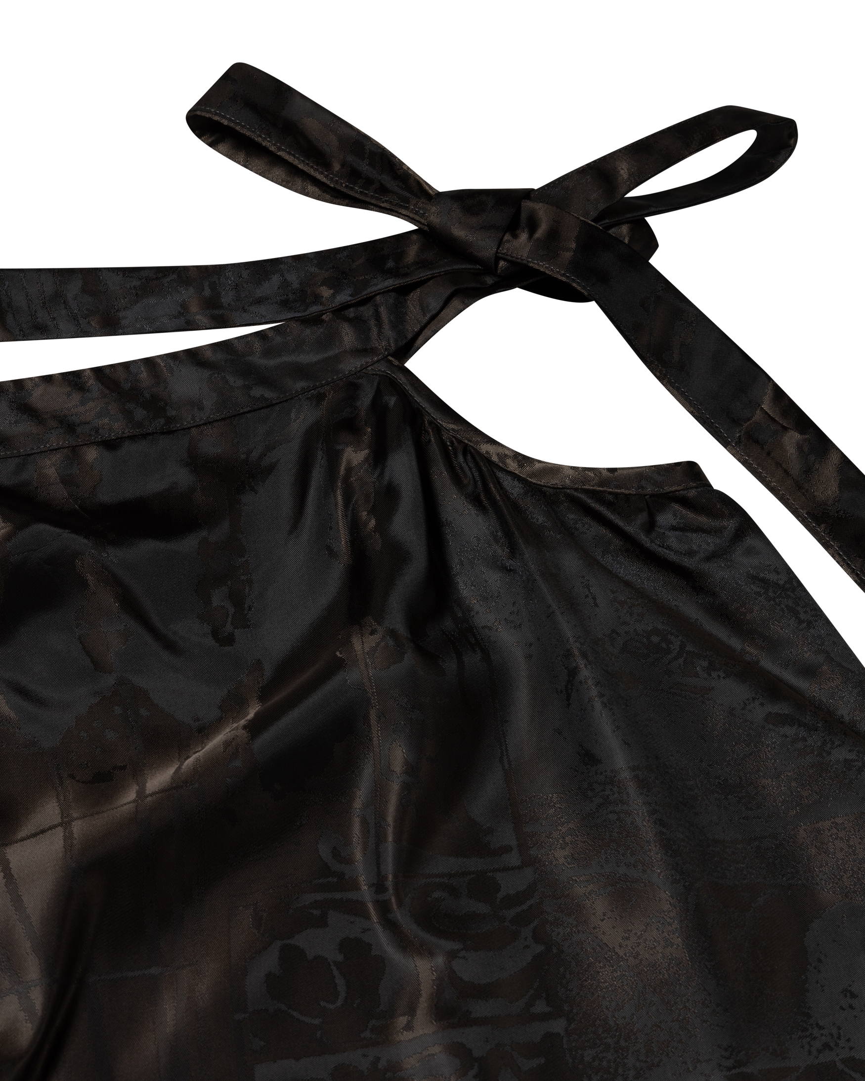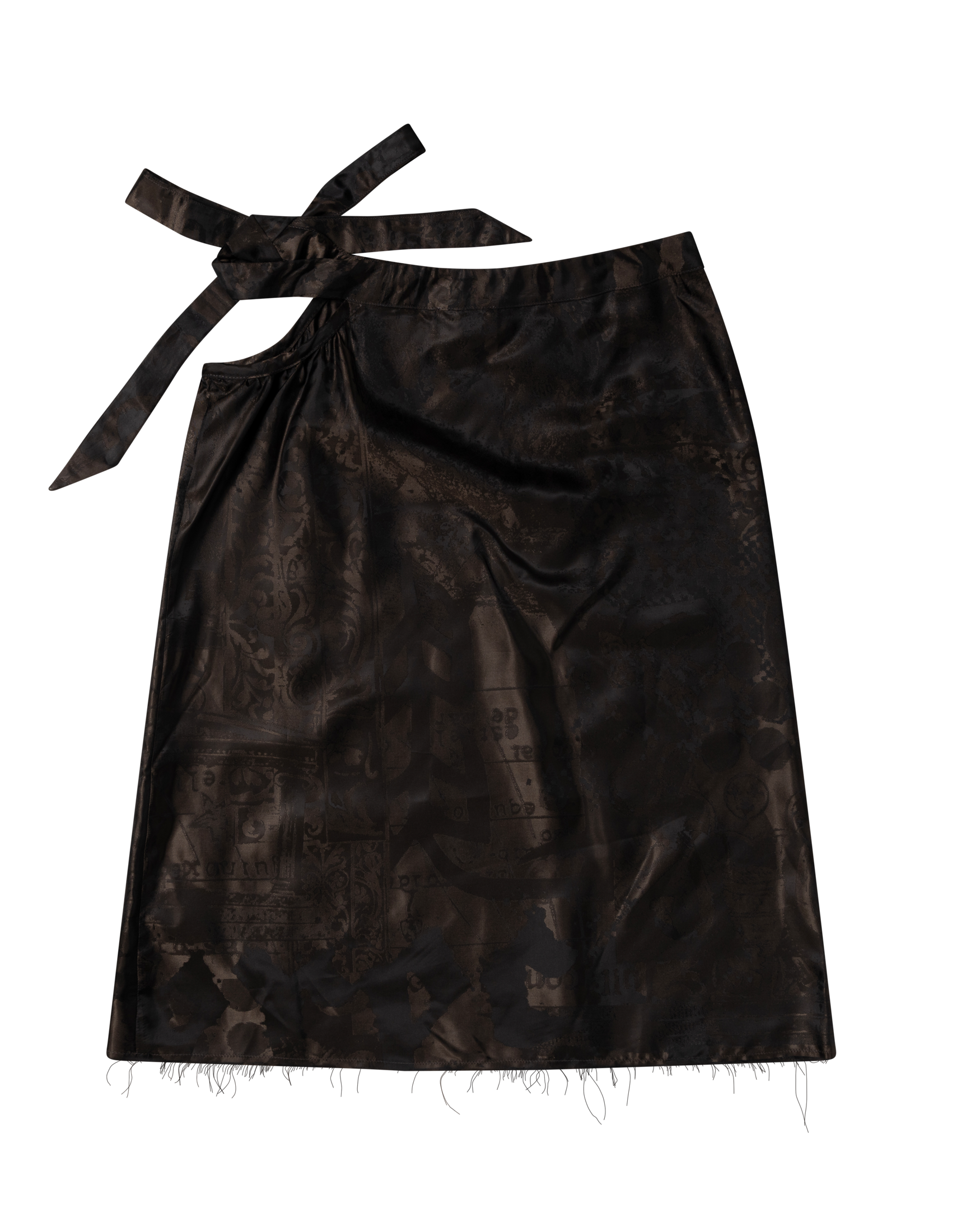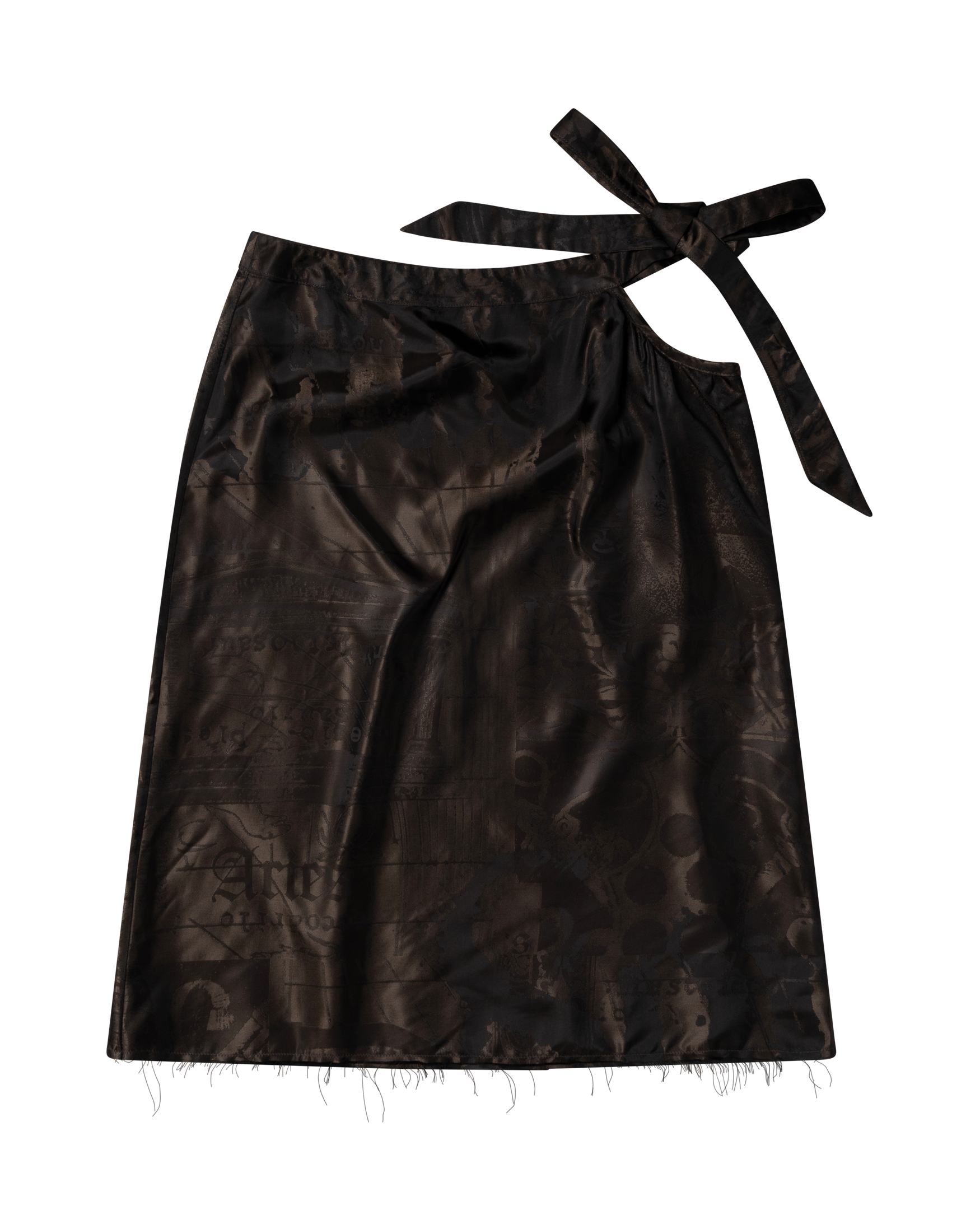 Mid length skirt with a tie side cut out detail in a luxe silky fabric featuring an all over custom Aries Jacquard.