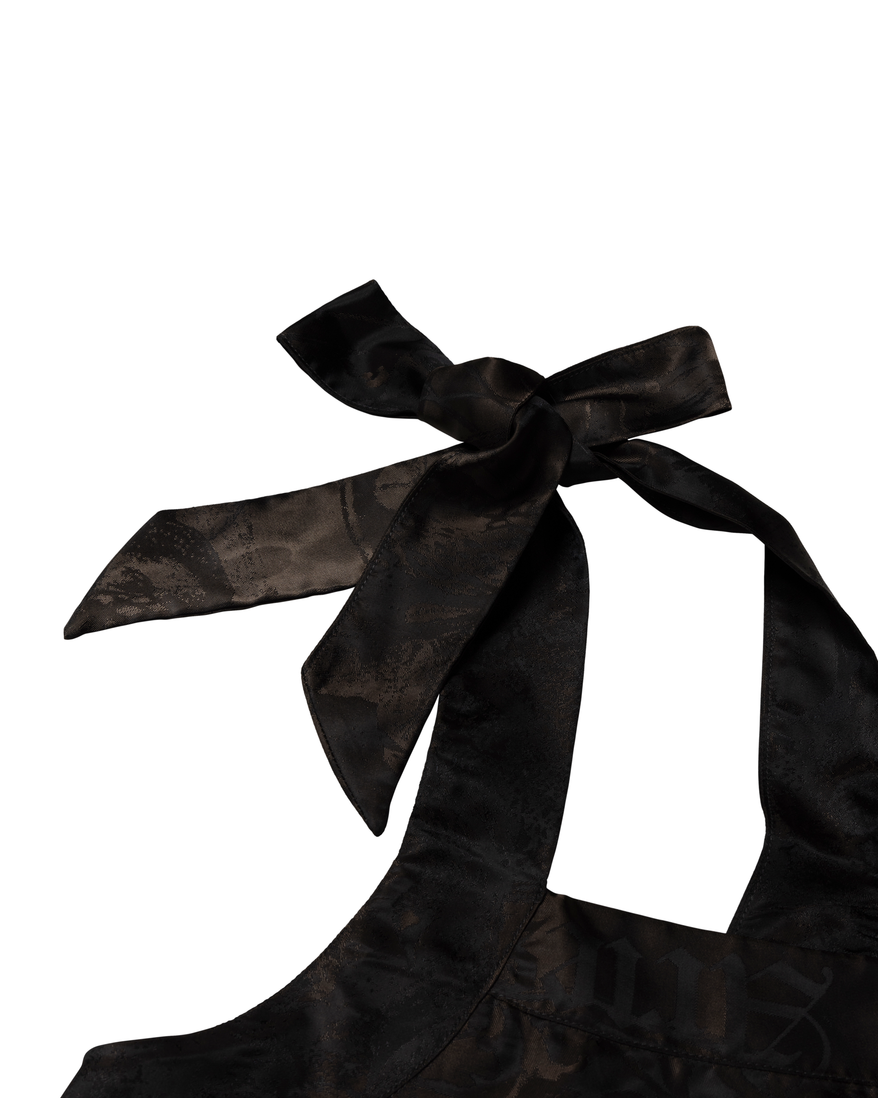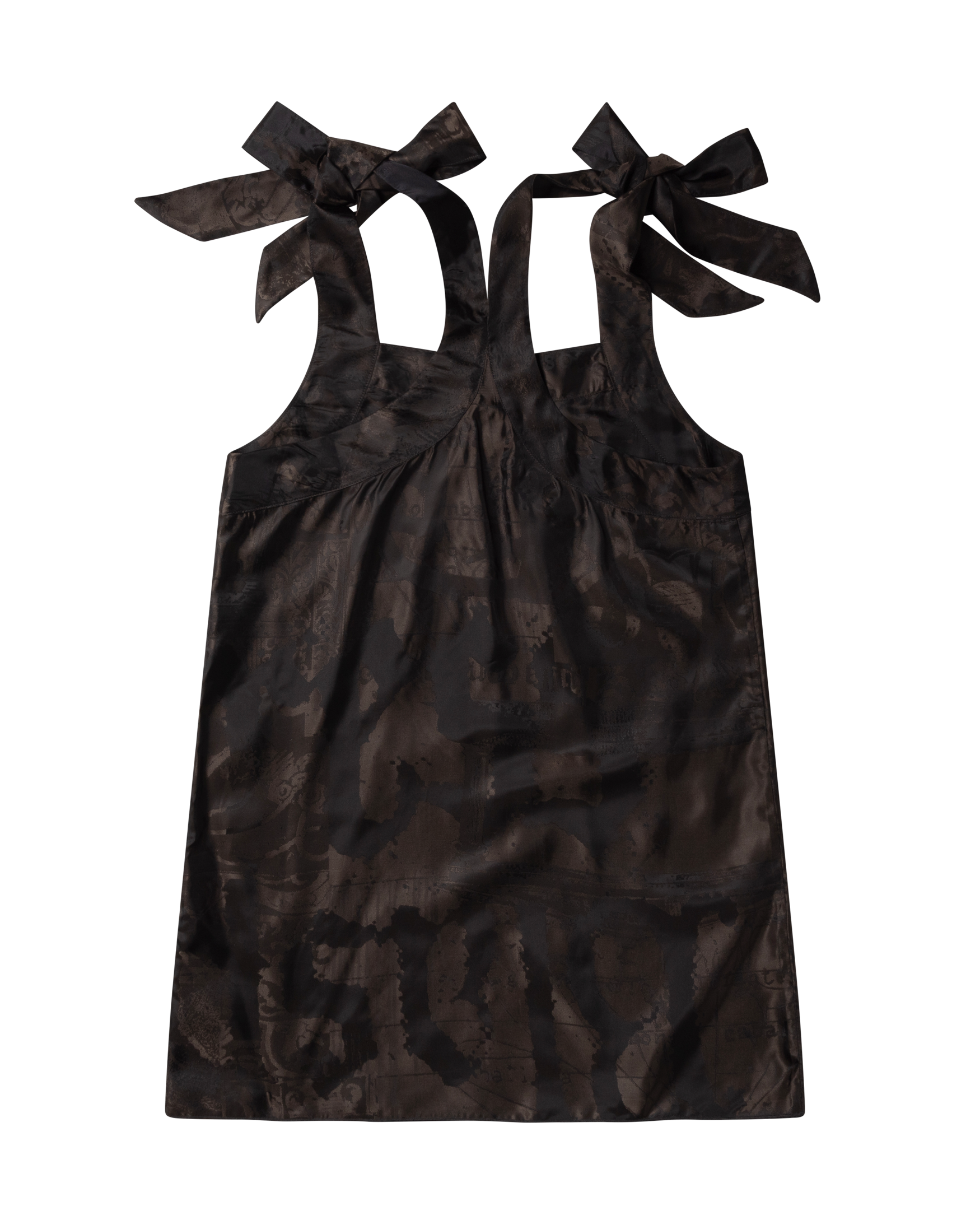 Strappy dress in a luxe silky 100% cupro fabric with an adjustable tie back in a custom Aries jacquard