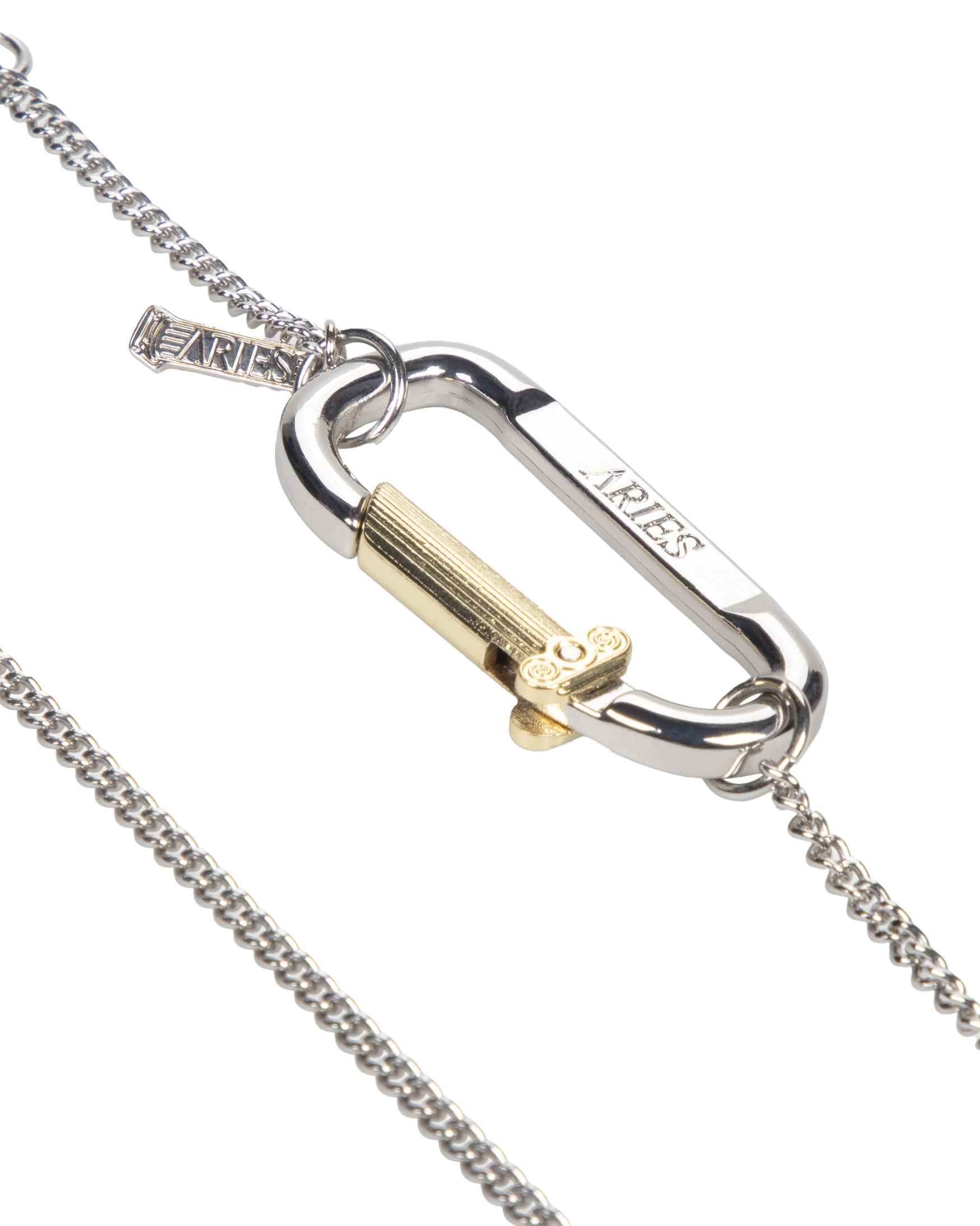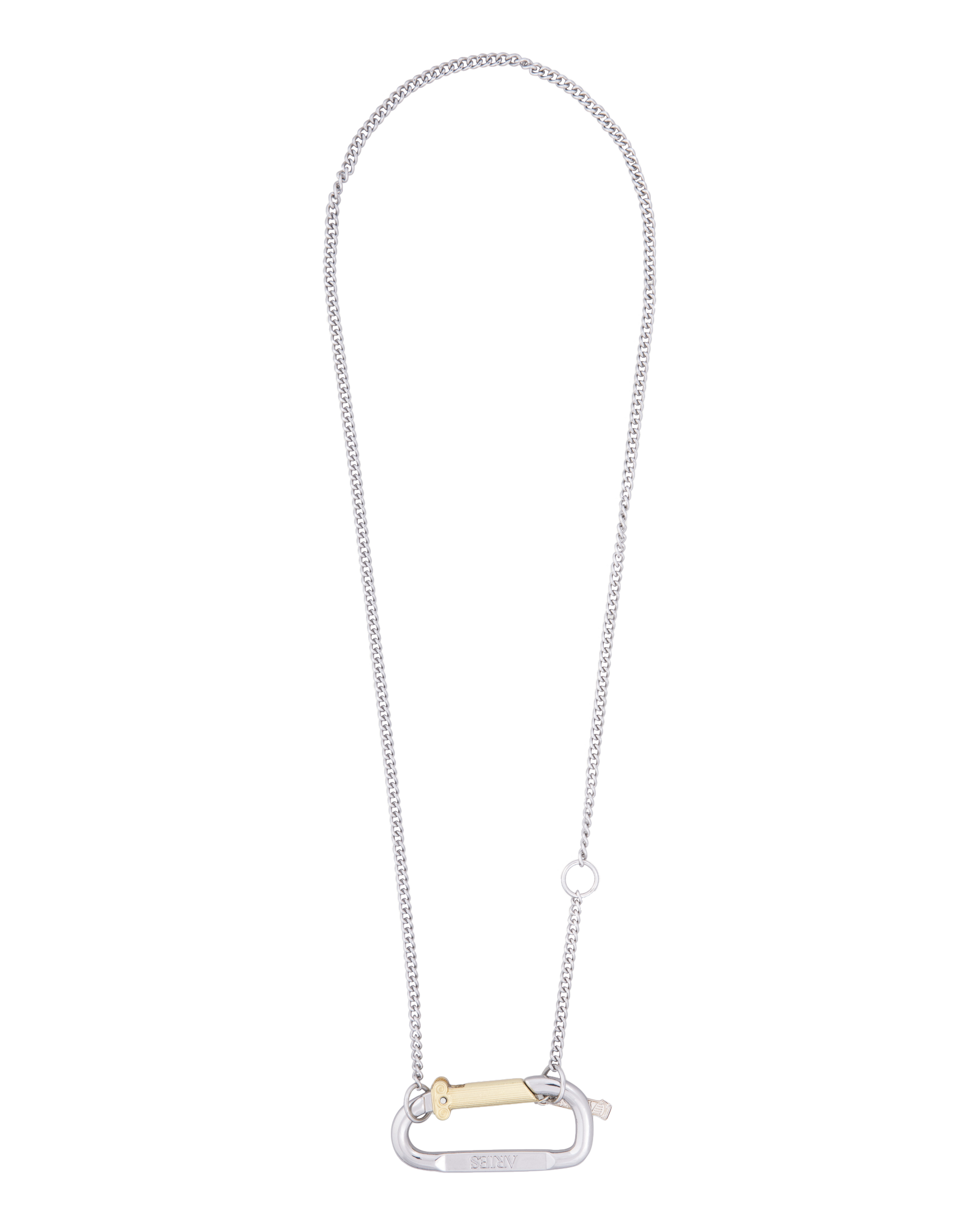 Mini carabiner chain necklace. Silver-plated brass.