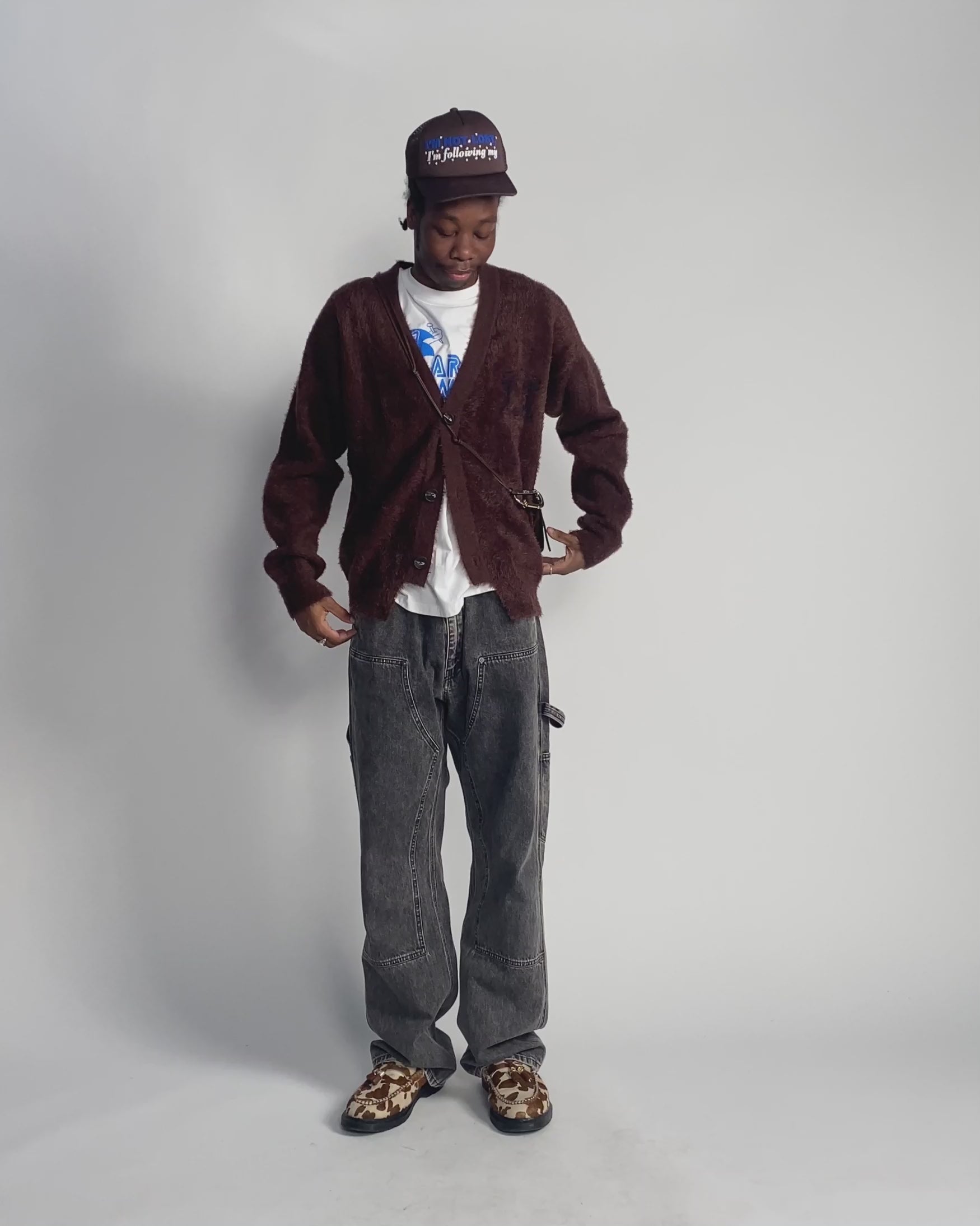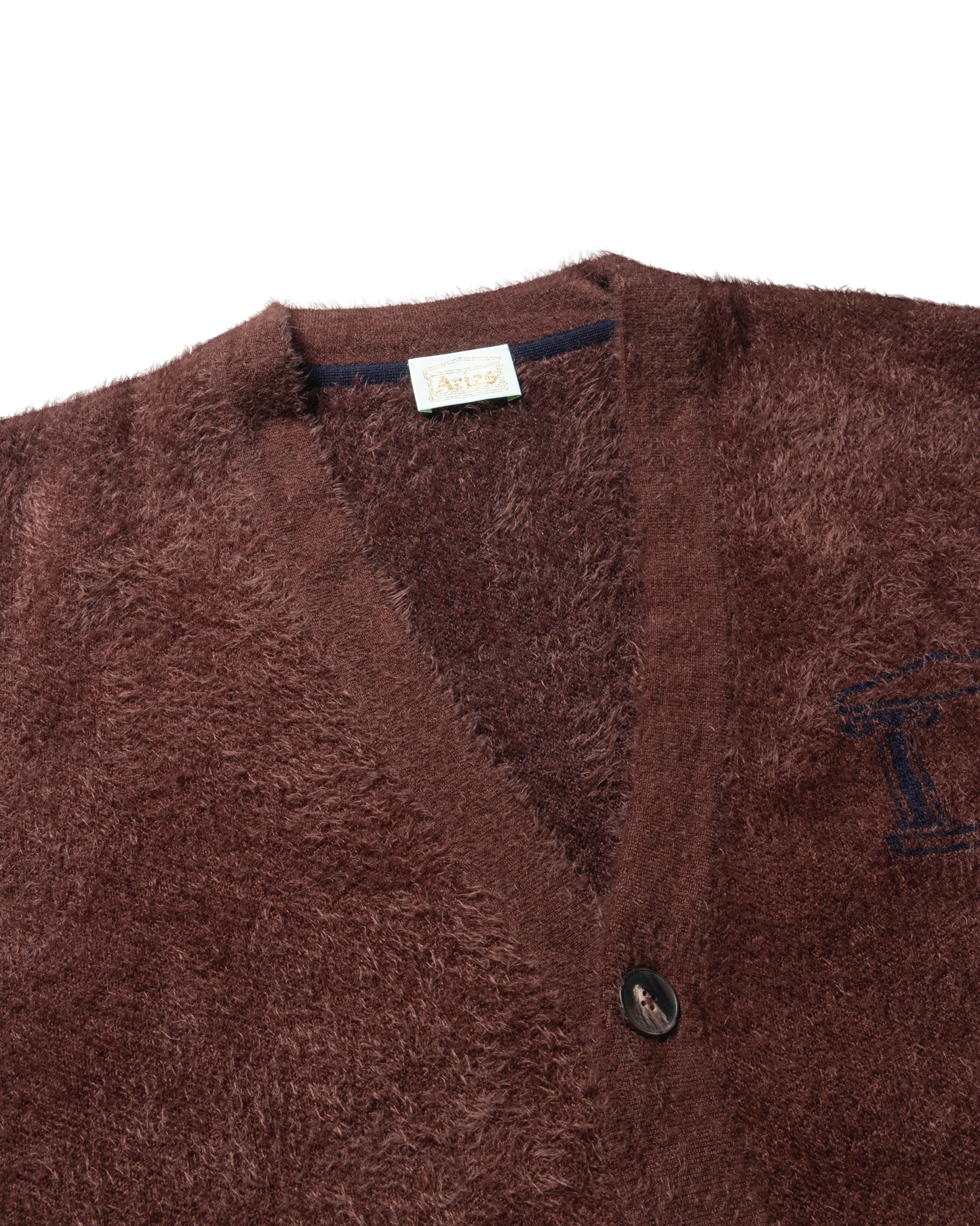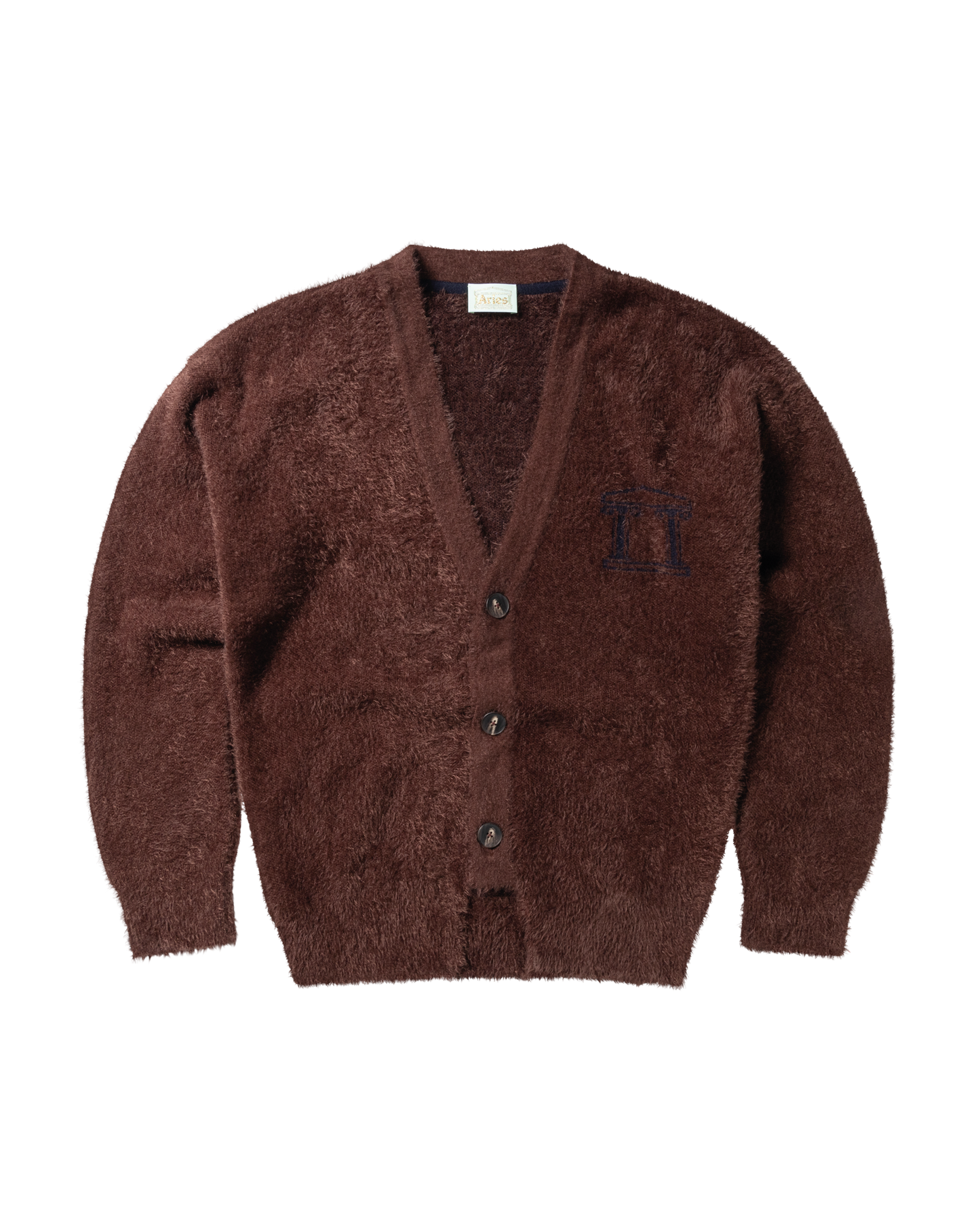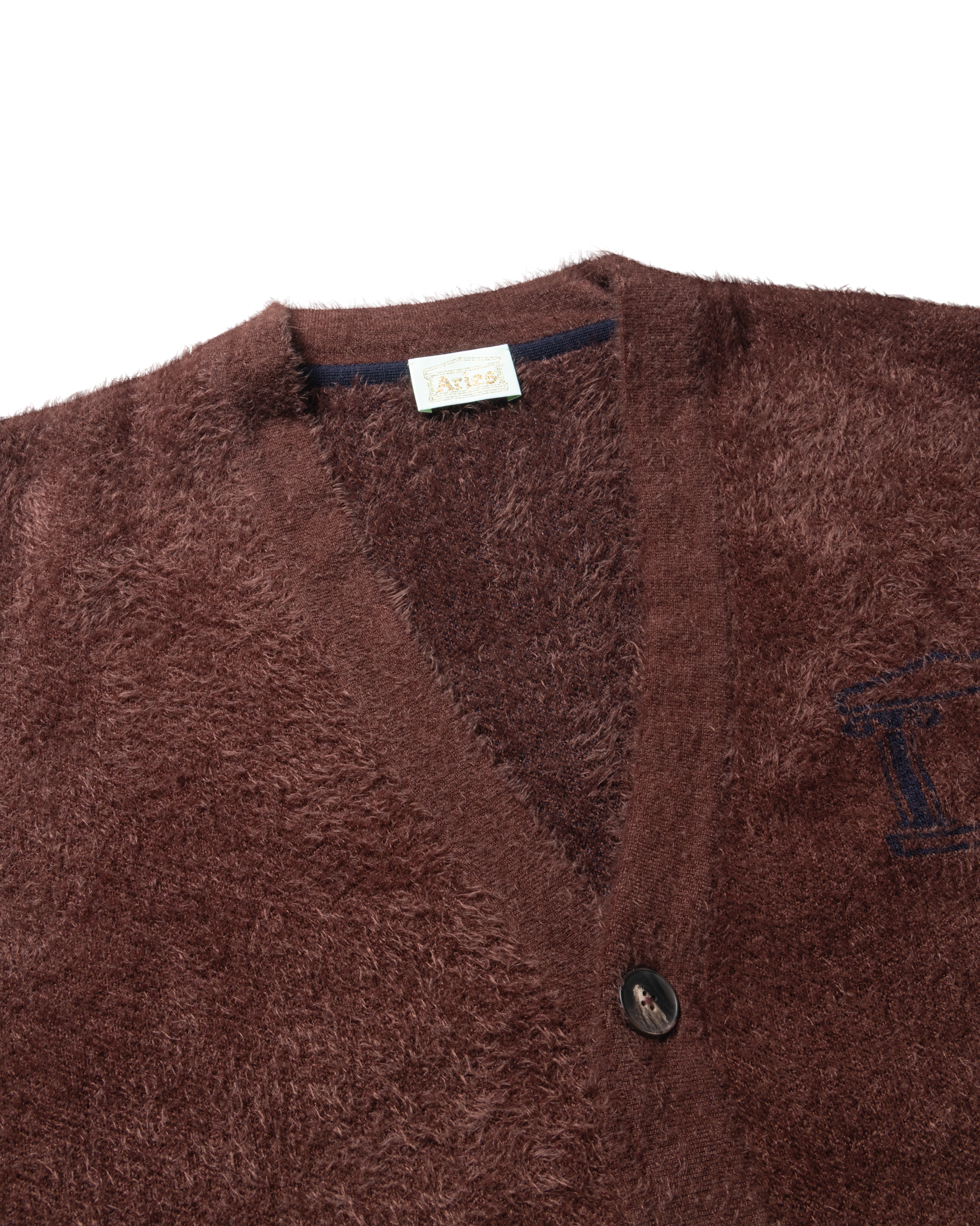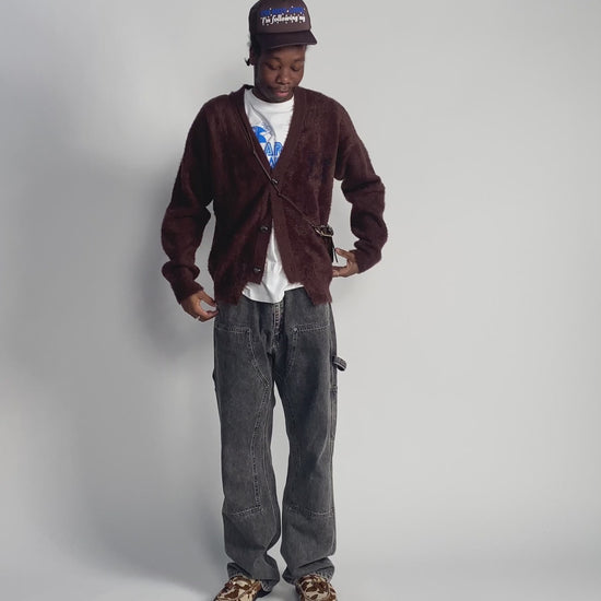 Unisex oversized piquet knit cardigan, made with a fluffy chenille yarn. With a subtle Empty Temple jacquard logo on the left chest.