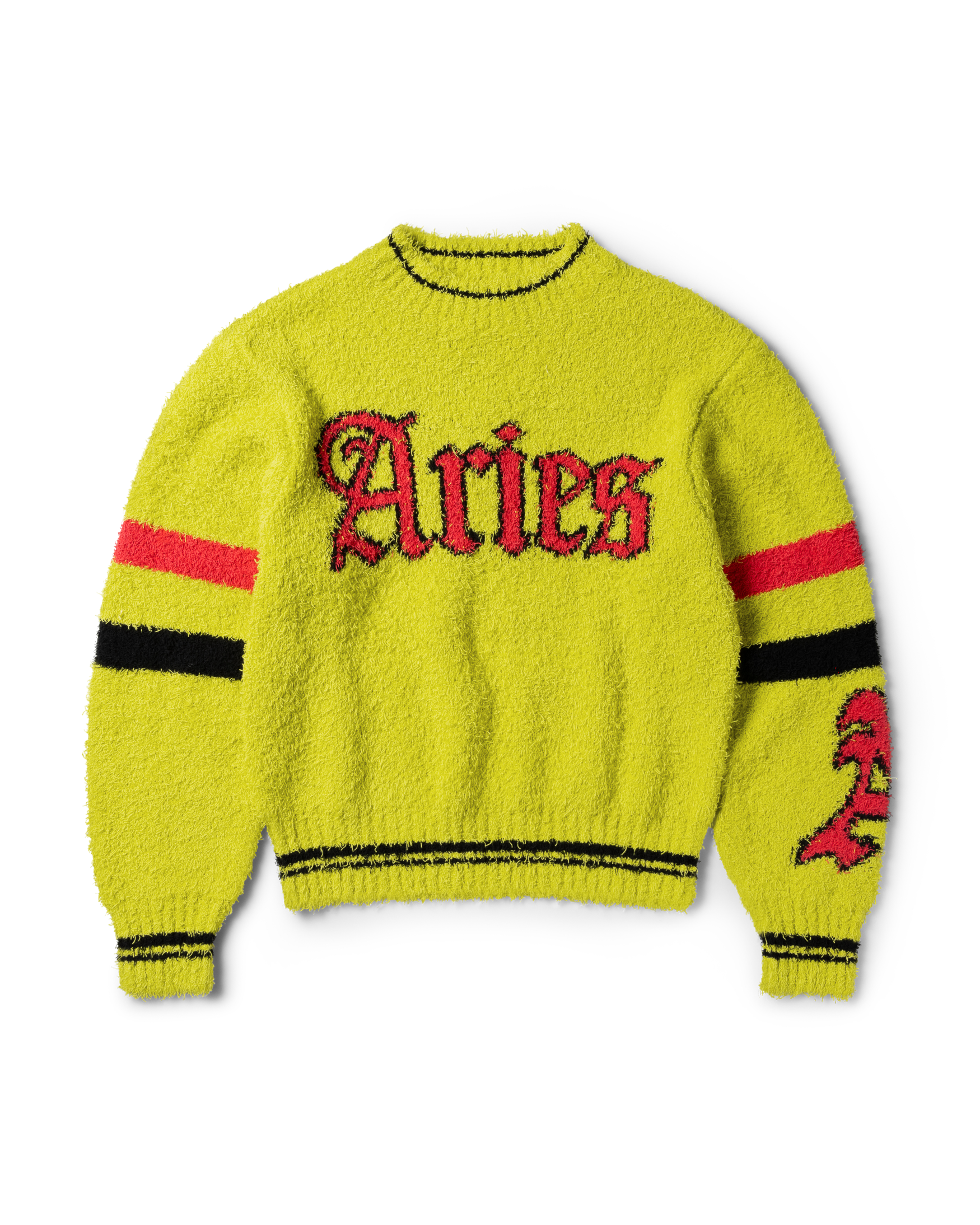 Unisex boucle yarn sweatshirt with Gothic Aries jacquard graphics on the front, back and sleeves.