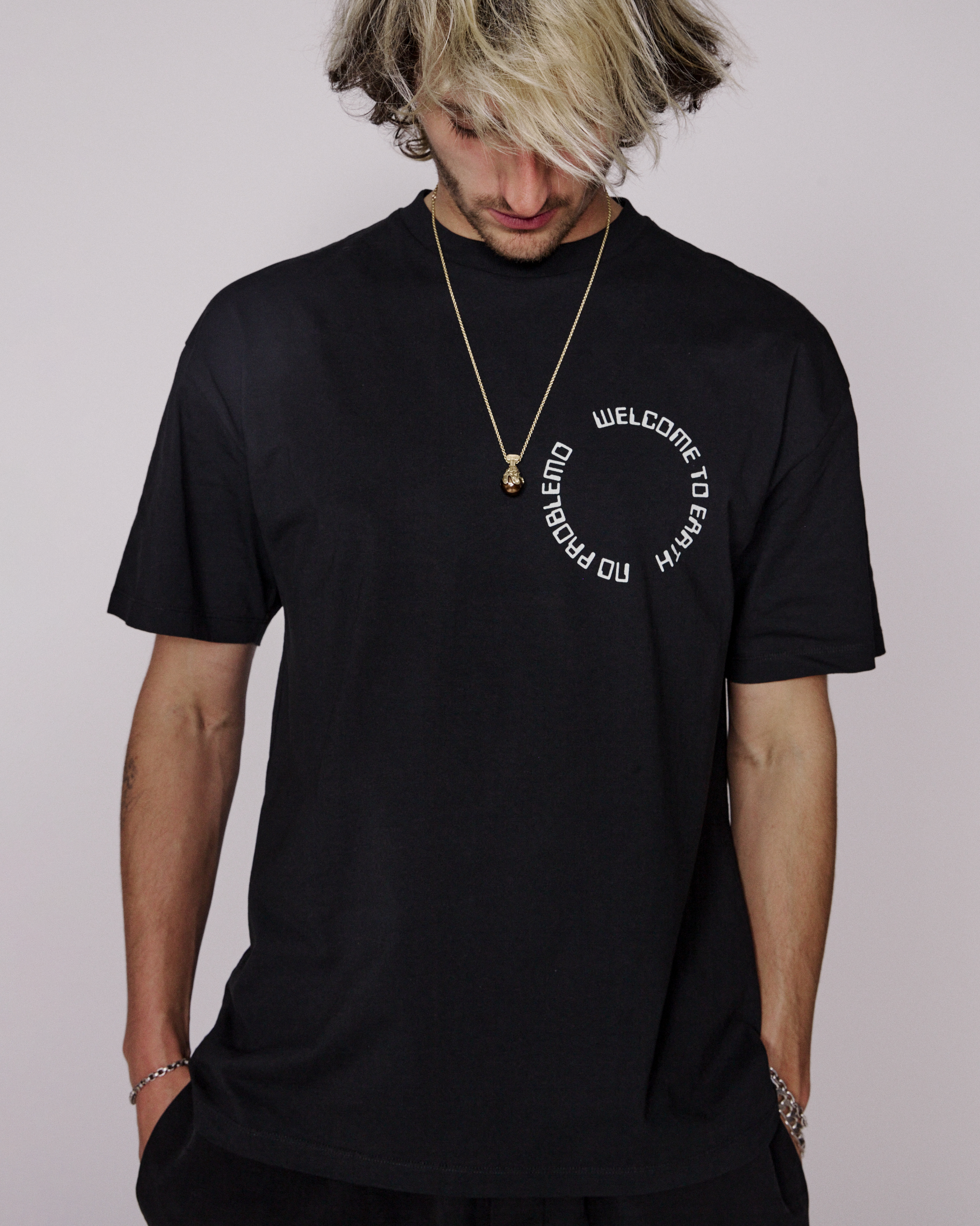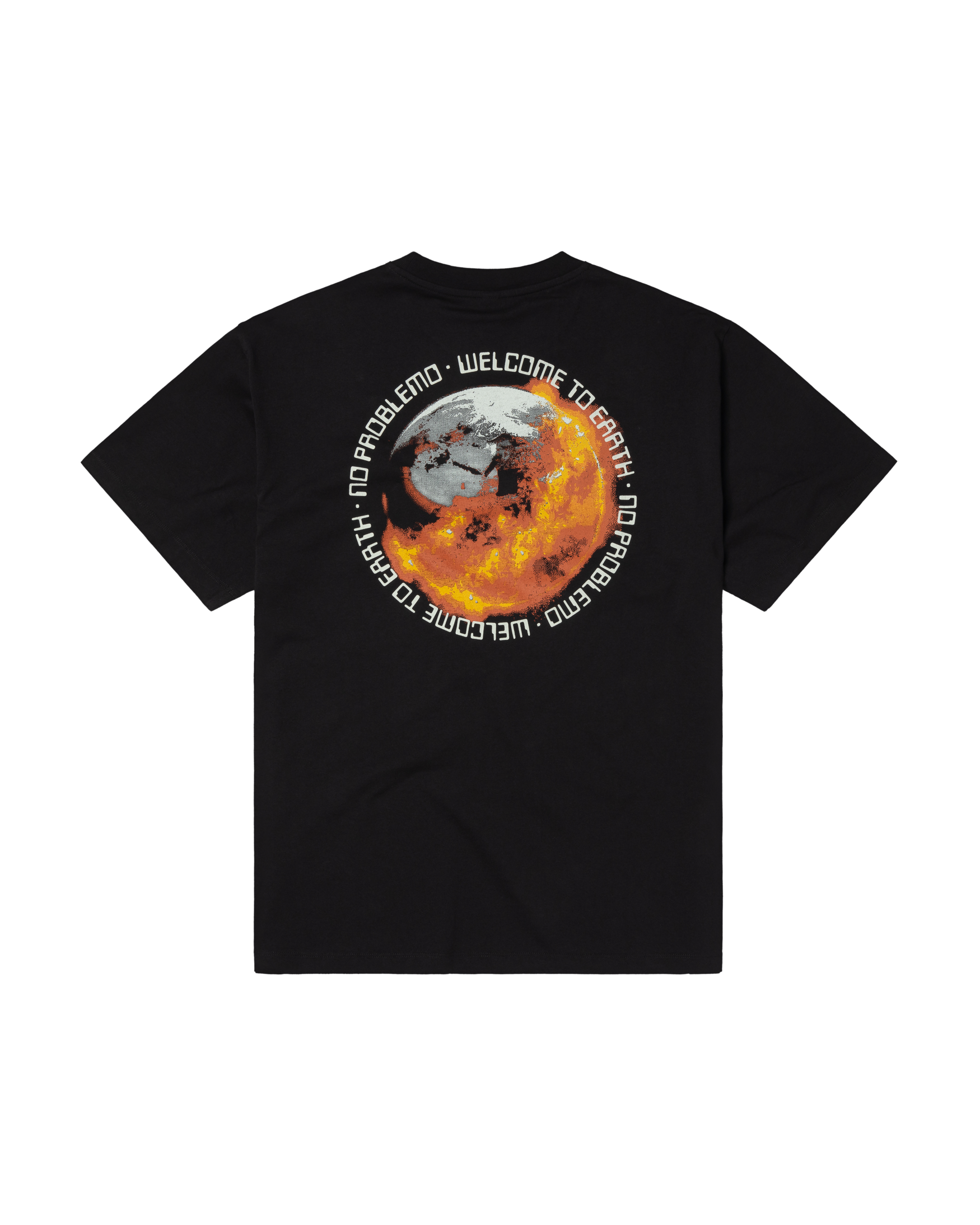 featuring 'welcome to earth' graphic on the chest and back.
