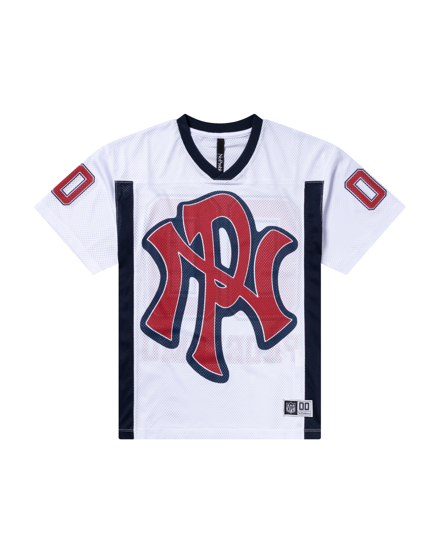 Airtex SS sport jersey in polyester and mesh mix with NYP graphic on the front, 00 Problemo Graphic on the back, and 00 graphic prints on sleeve, featuring branded label on the front.