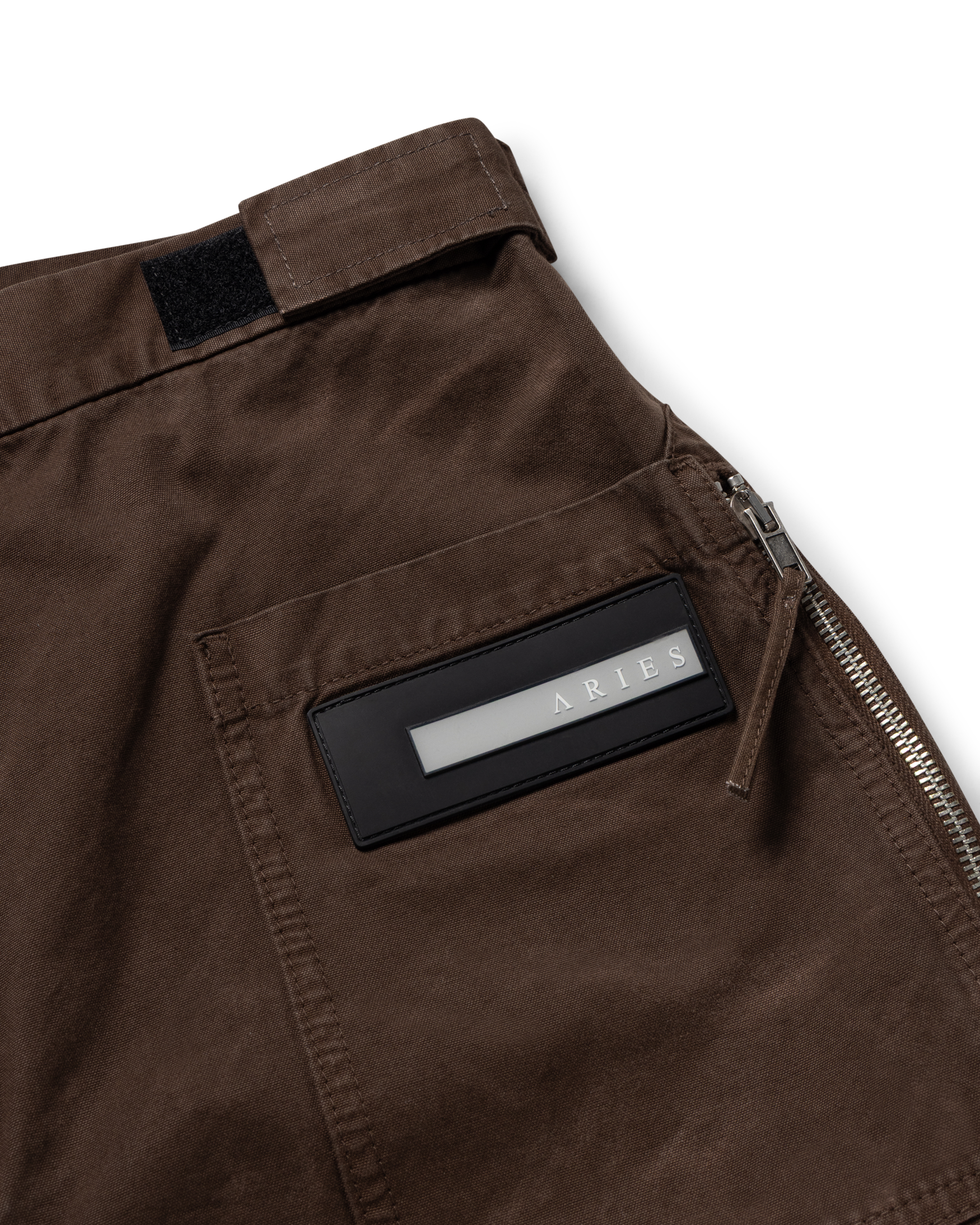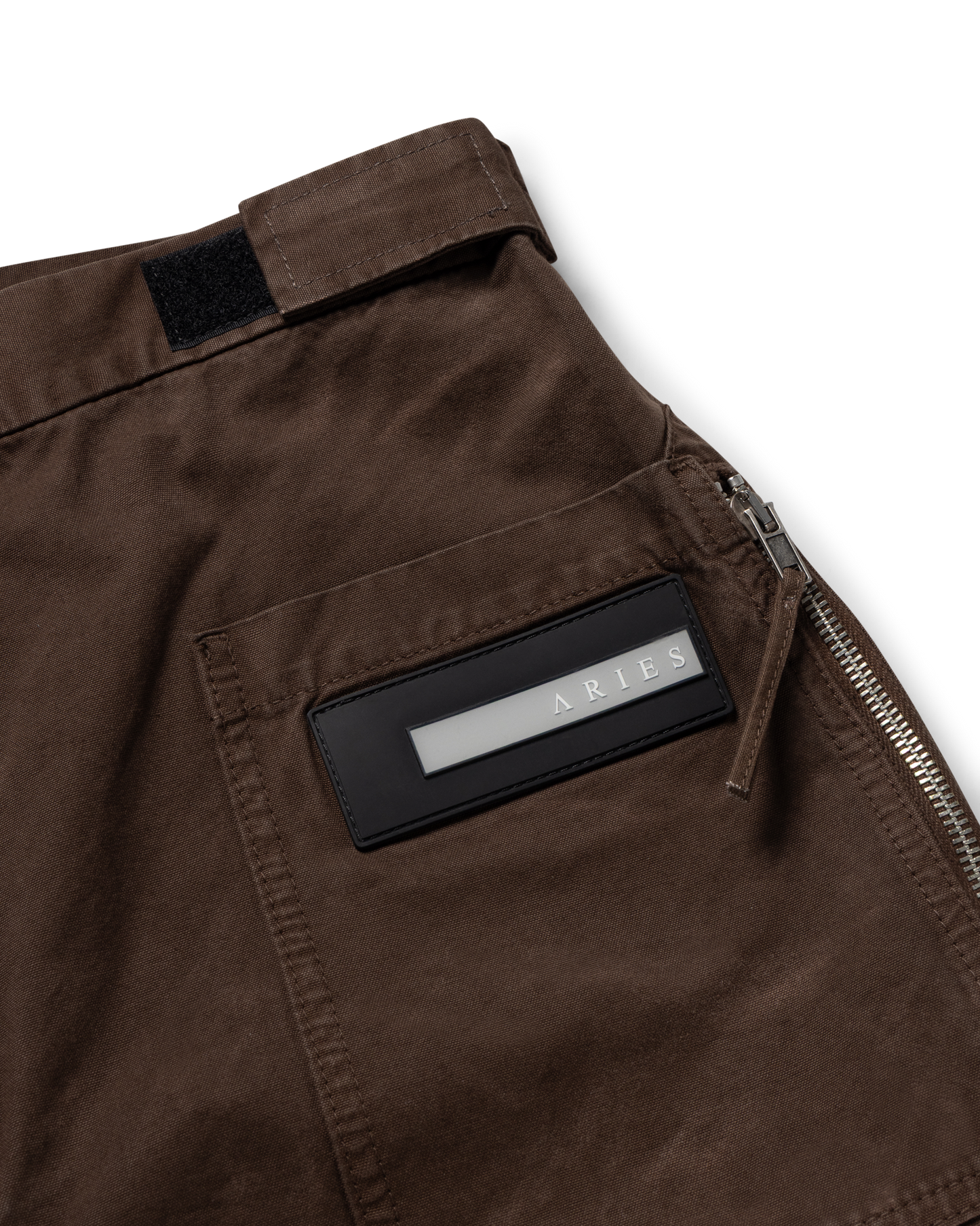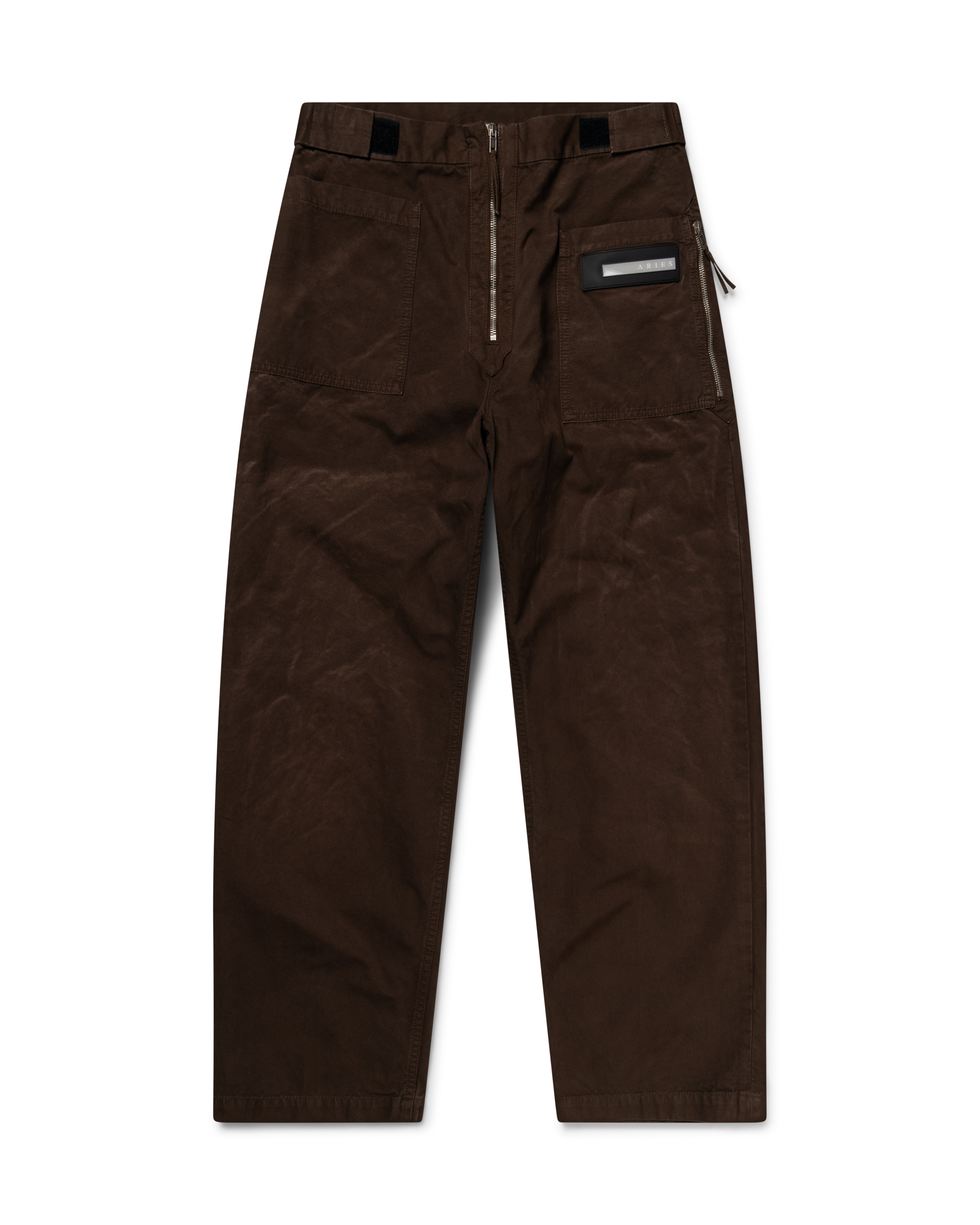 Canvas walking-style trousers with chunky contrast front zip, velcro side tabs to adjust the waist and zipped side pockets.