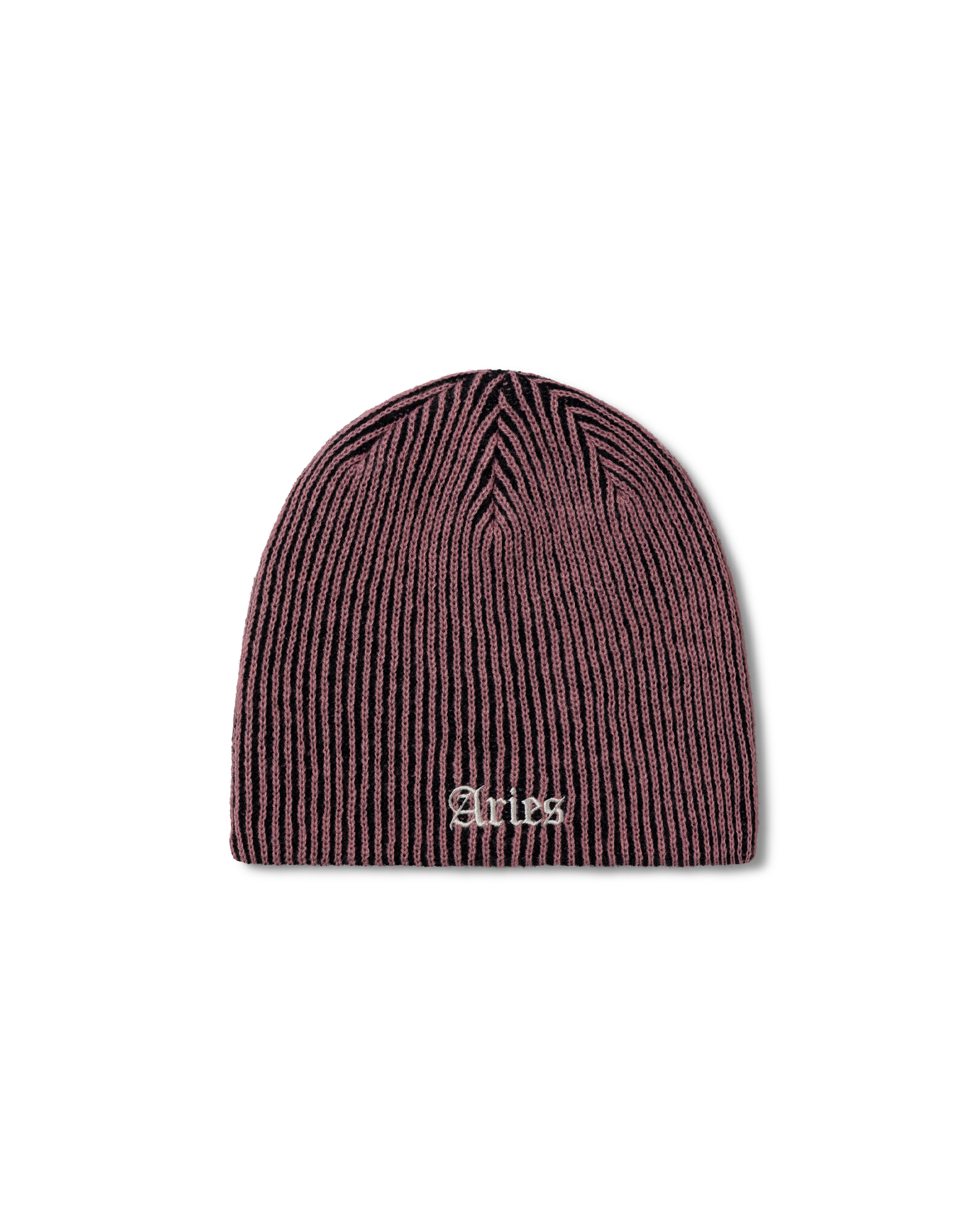 Rib knit Skull Beanie with Gothic Aries embroidery.
