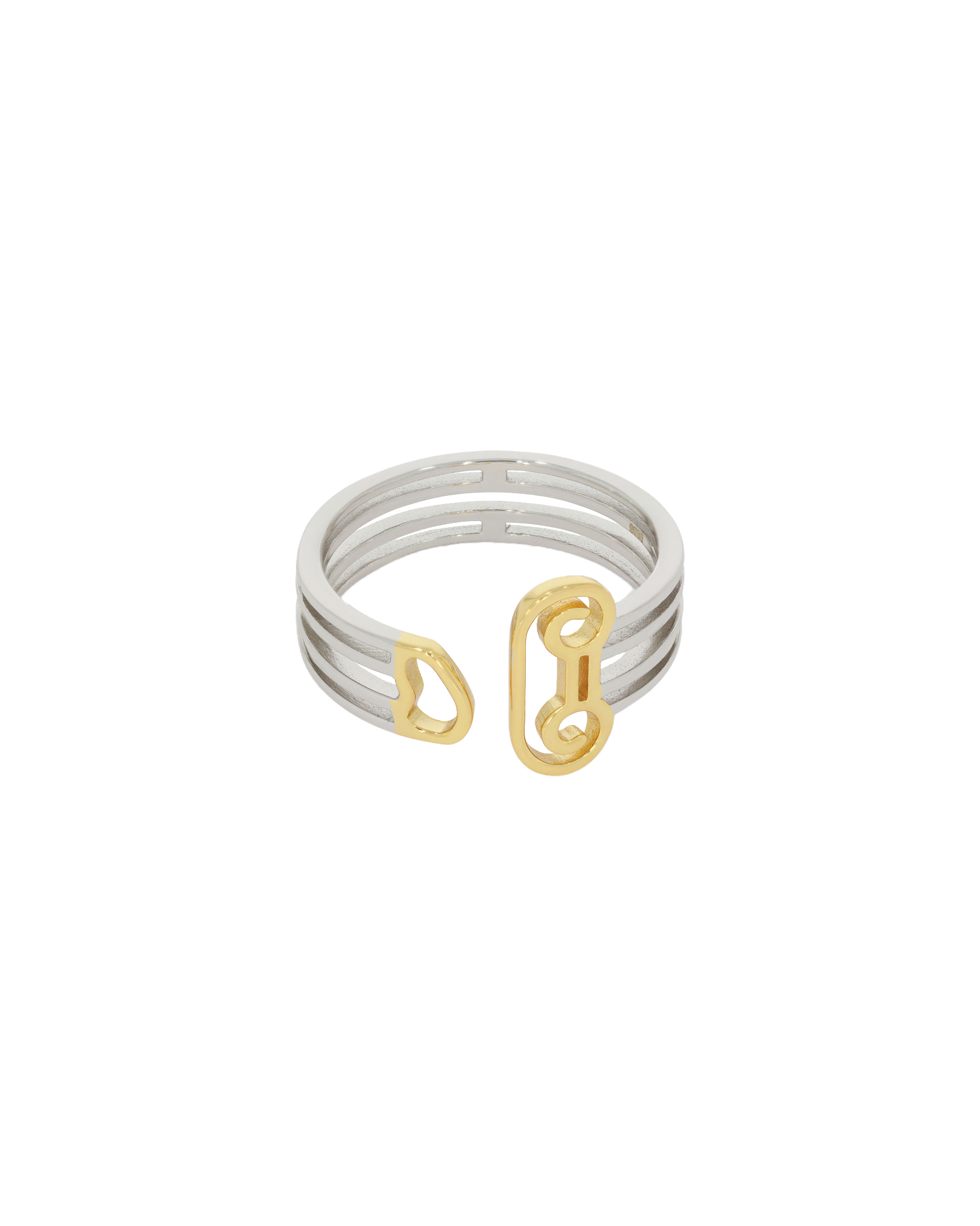 Gold and silver-plated brass cast Column ring. The column wraps around your finger and can be adjusted to fit.