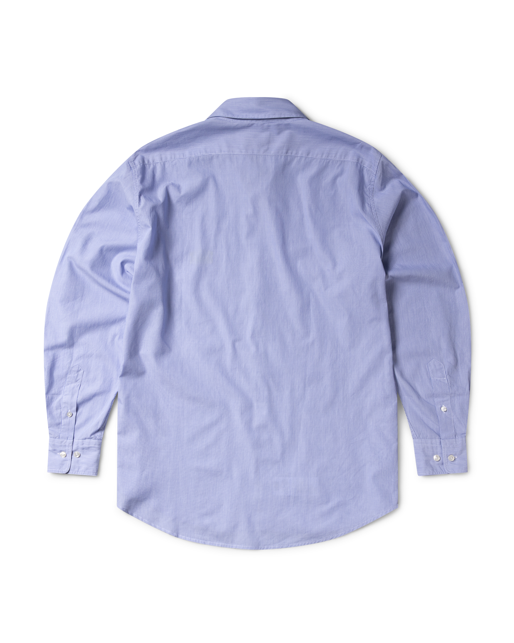 Classic stripe cotton LS shirt with gold embroidered temple logo on left chest. 100% cotton