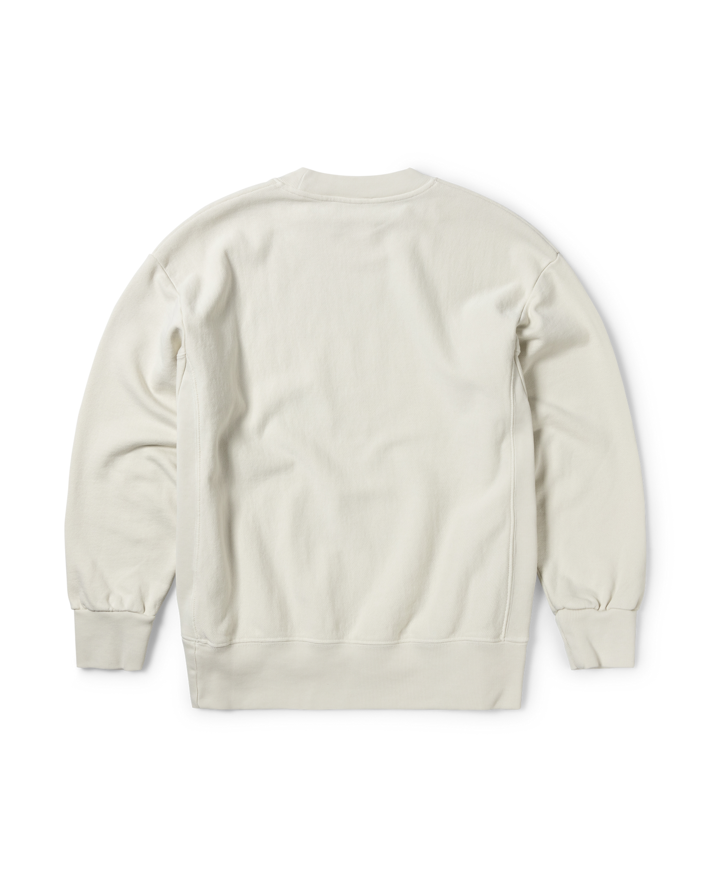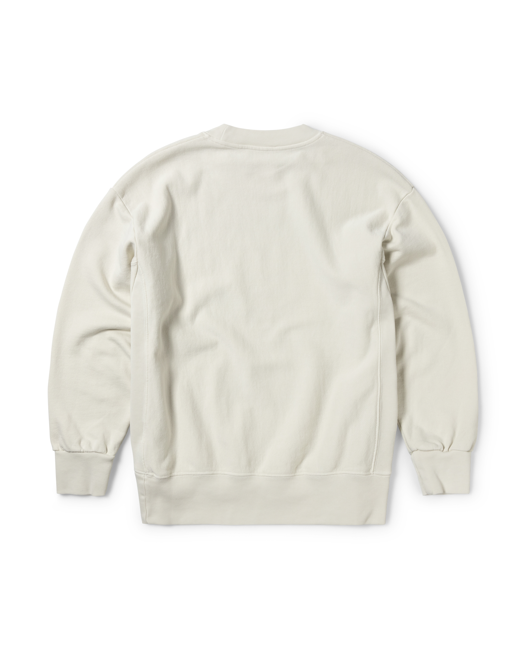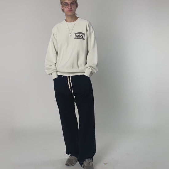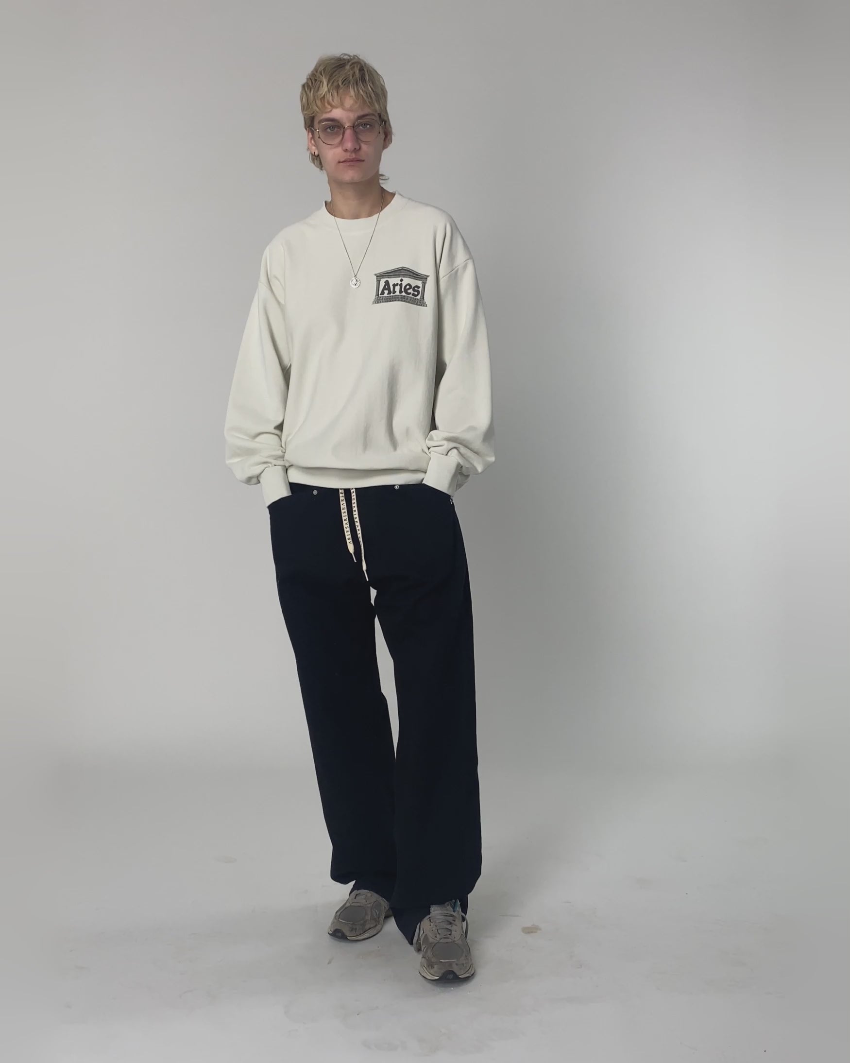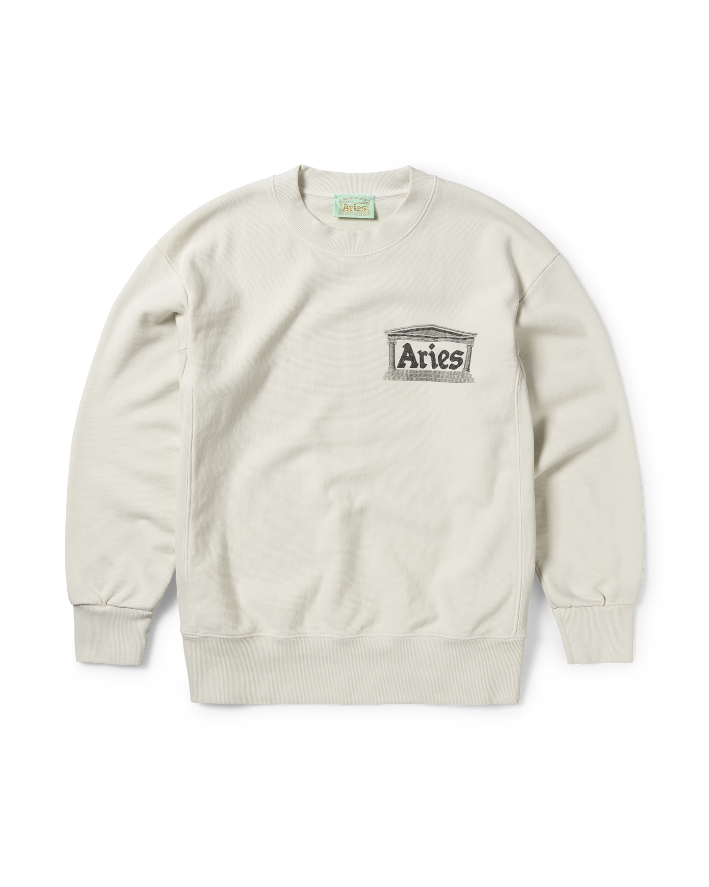 Crew neck sweatshirt, made in our heavy brushed-back cotton jersey fleece. Cut on the cross grain with rib panel detailing on both sides. Featuring new Ancient Aries Temple logo screen print on chest, finished with a heavy wash treatment for an aged look. Made in Italy.