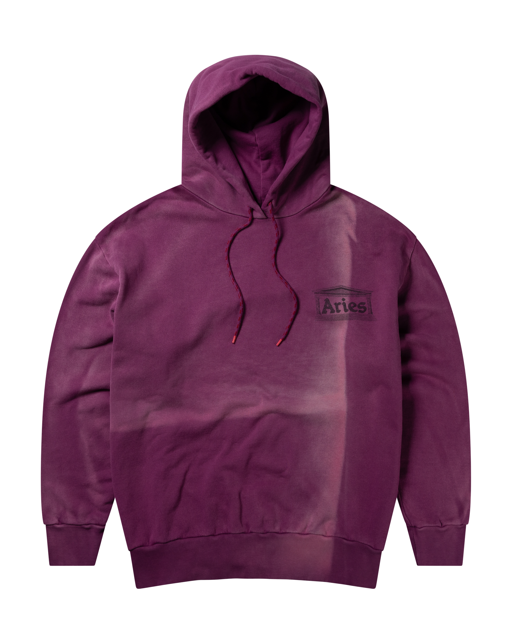 Hooded sweat made from brushed-back jersey fleece, with 'Aries Ancient Temple' graphic screen printed on the chest, with a sunbleach wash treatment for a naturally aged look.