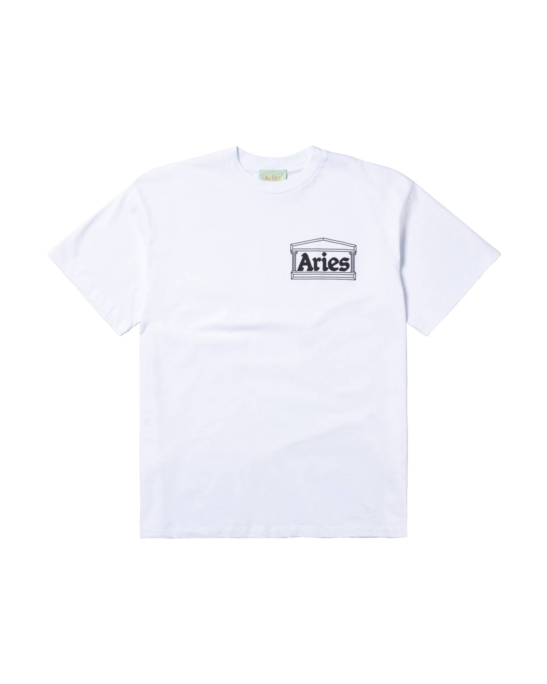 Unisex short sleeve mid-weight t-shirt with classic Aries temple logo screen print on the front chest.