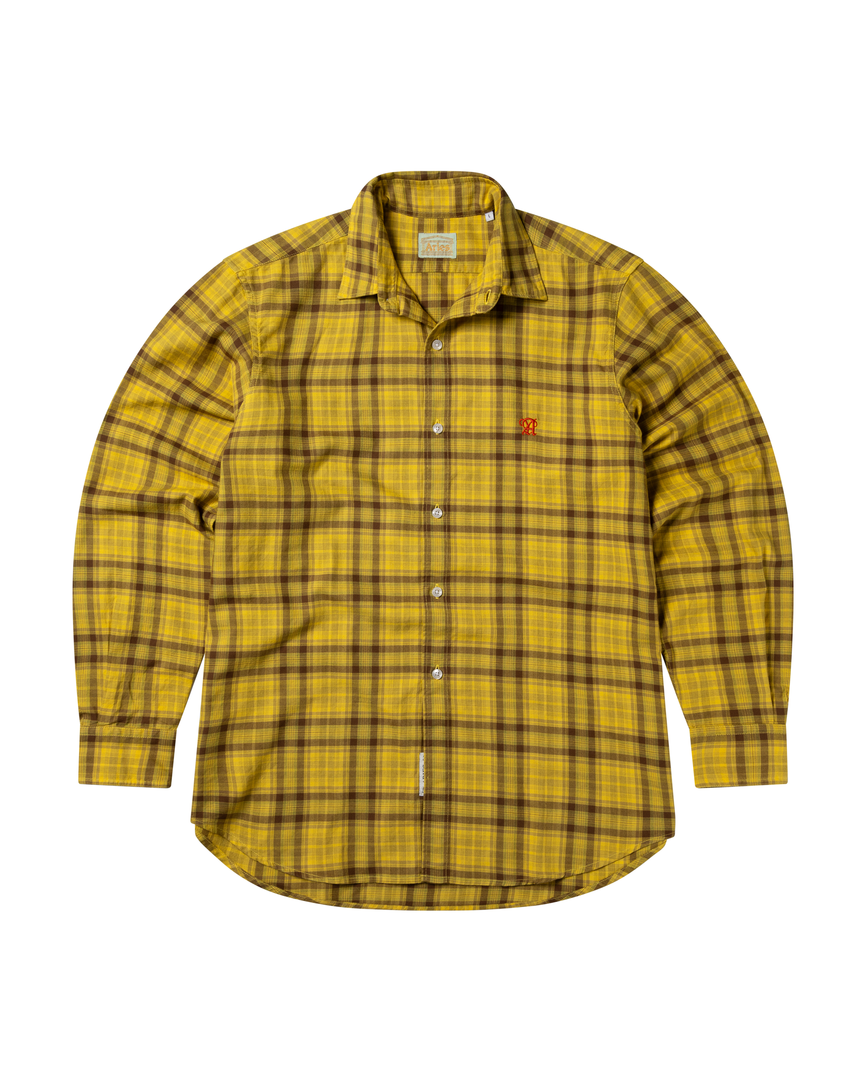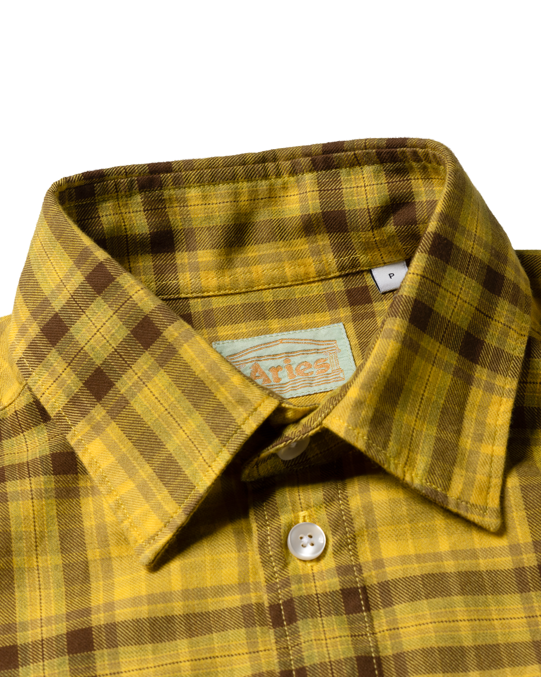 Overdyed classic plaid cotton shirt with an embroidered Aries temple logo at the wearer's left chest. 100% cotton.