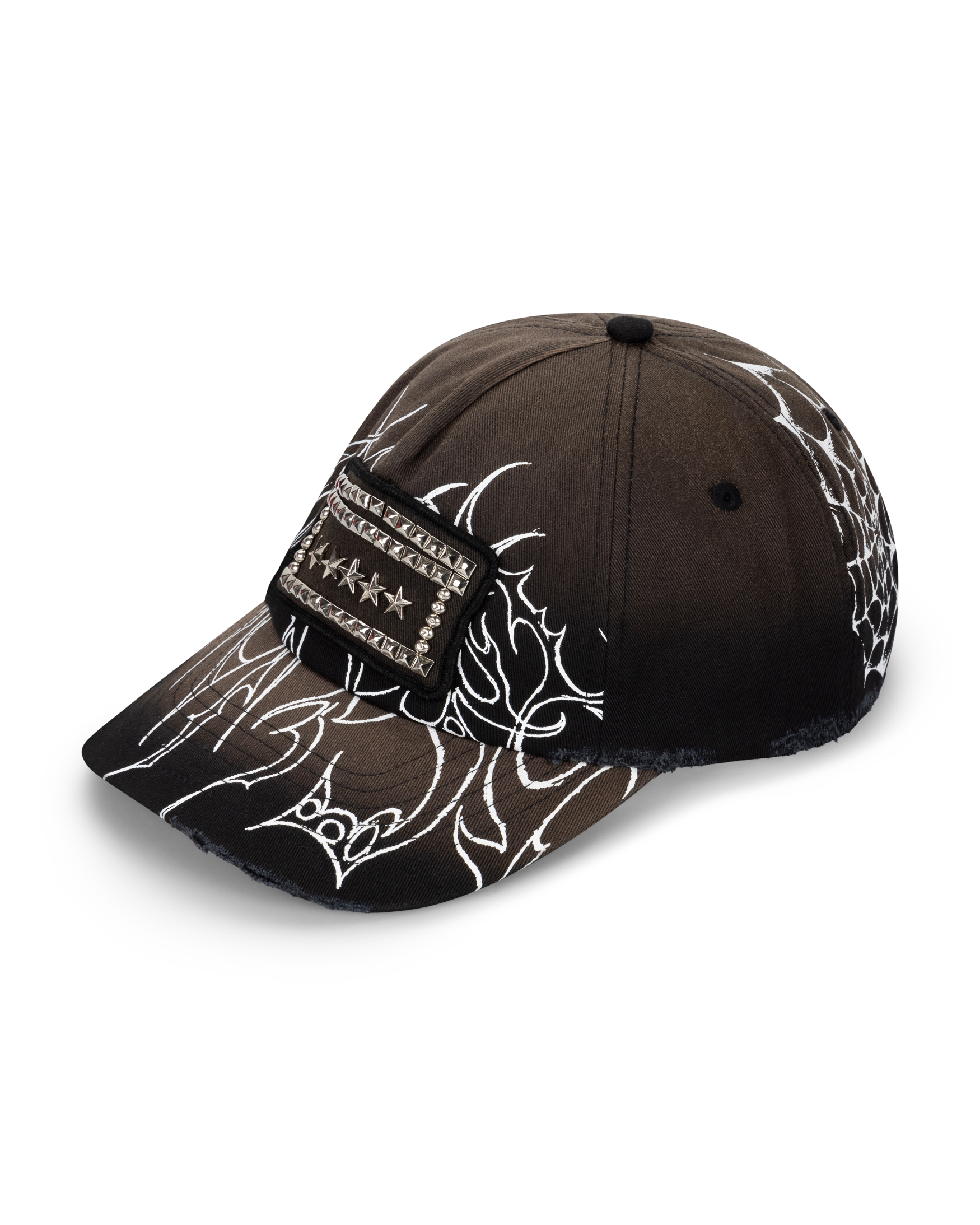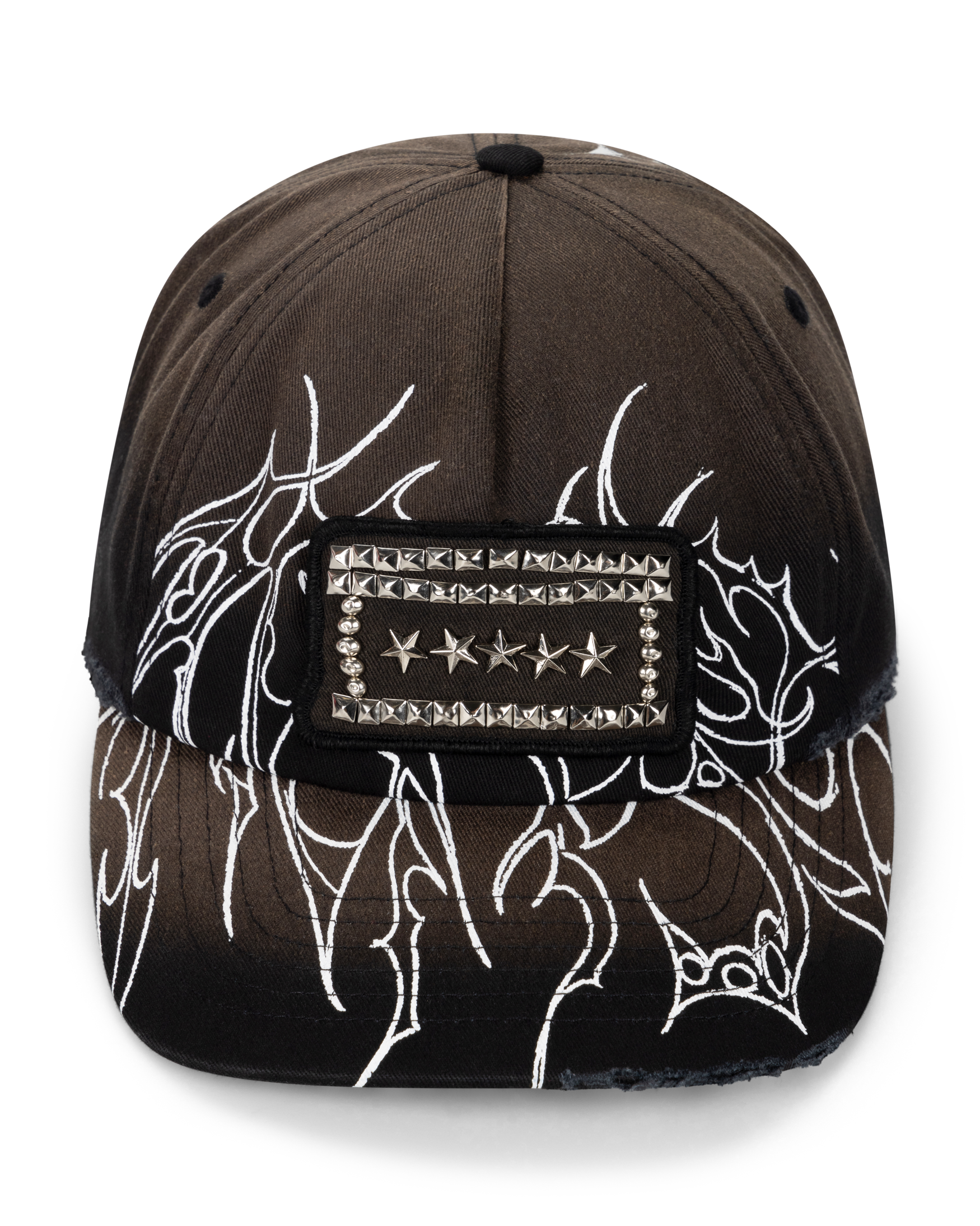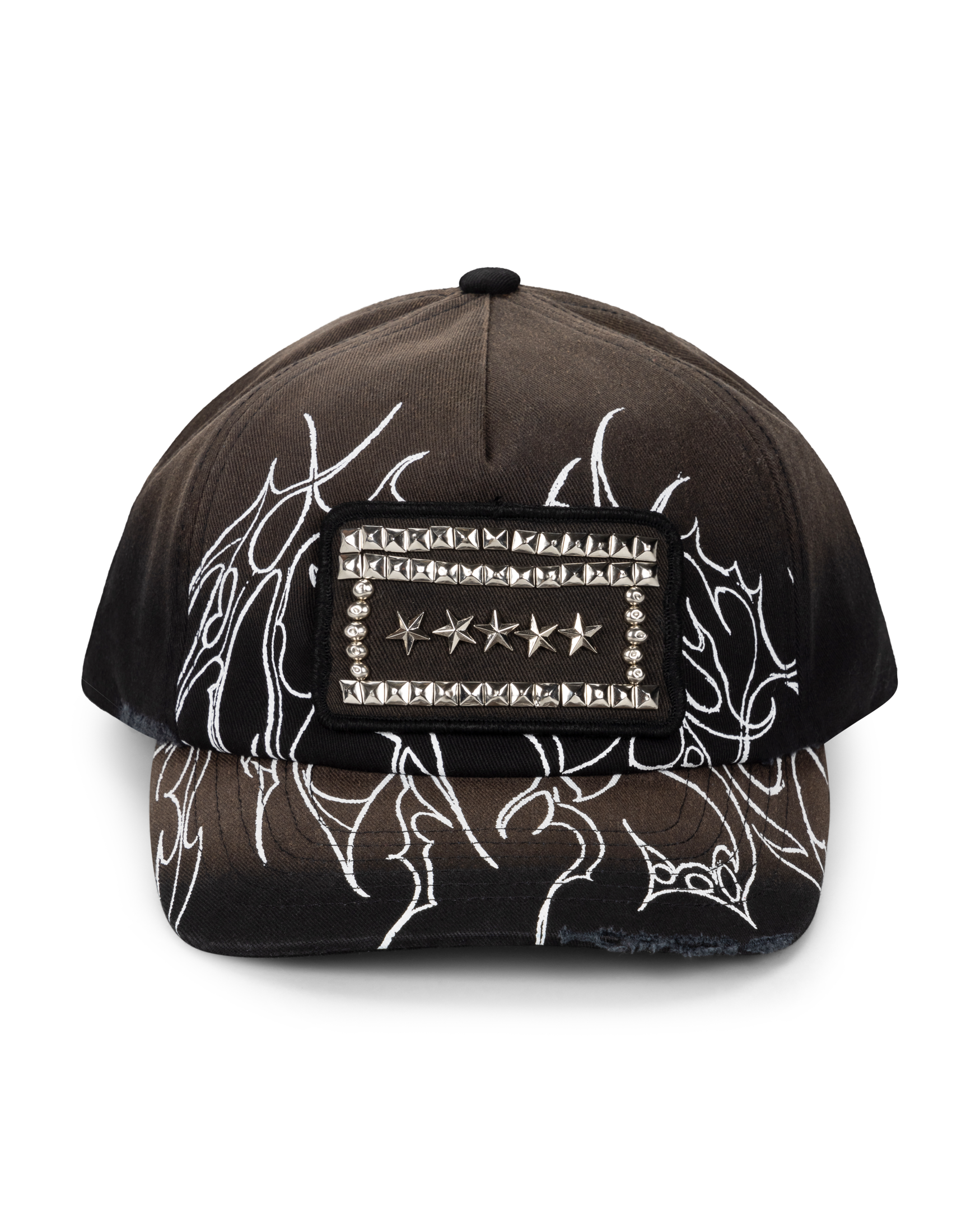 Sun bleached cotton cap with 'Overlord' graphic screen print and stud Temple patch.