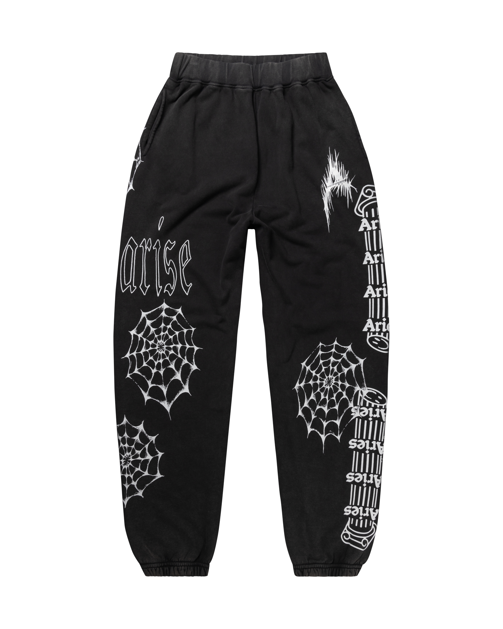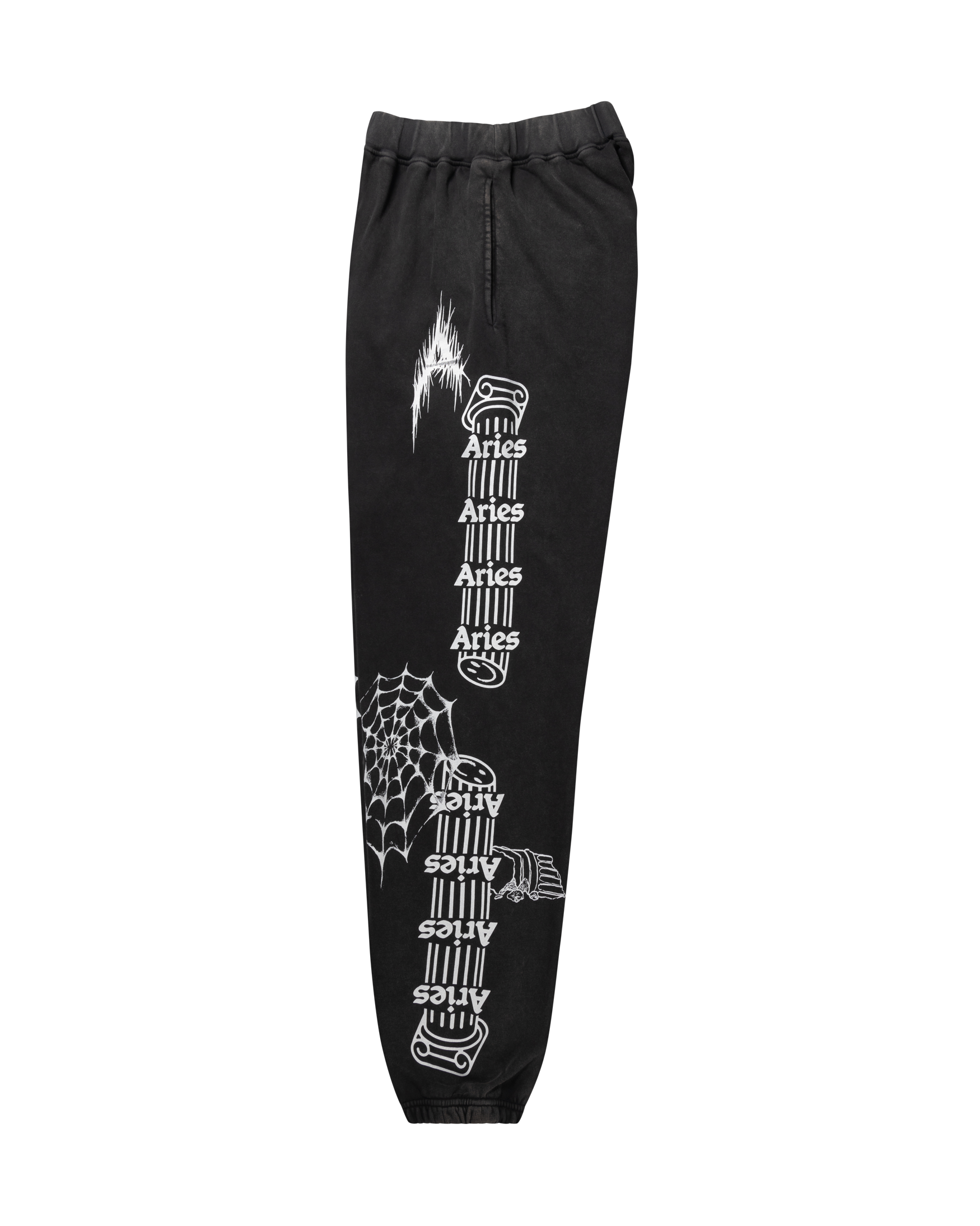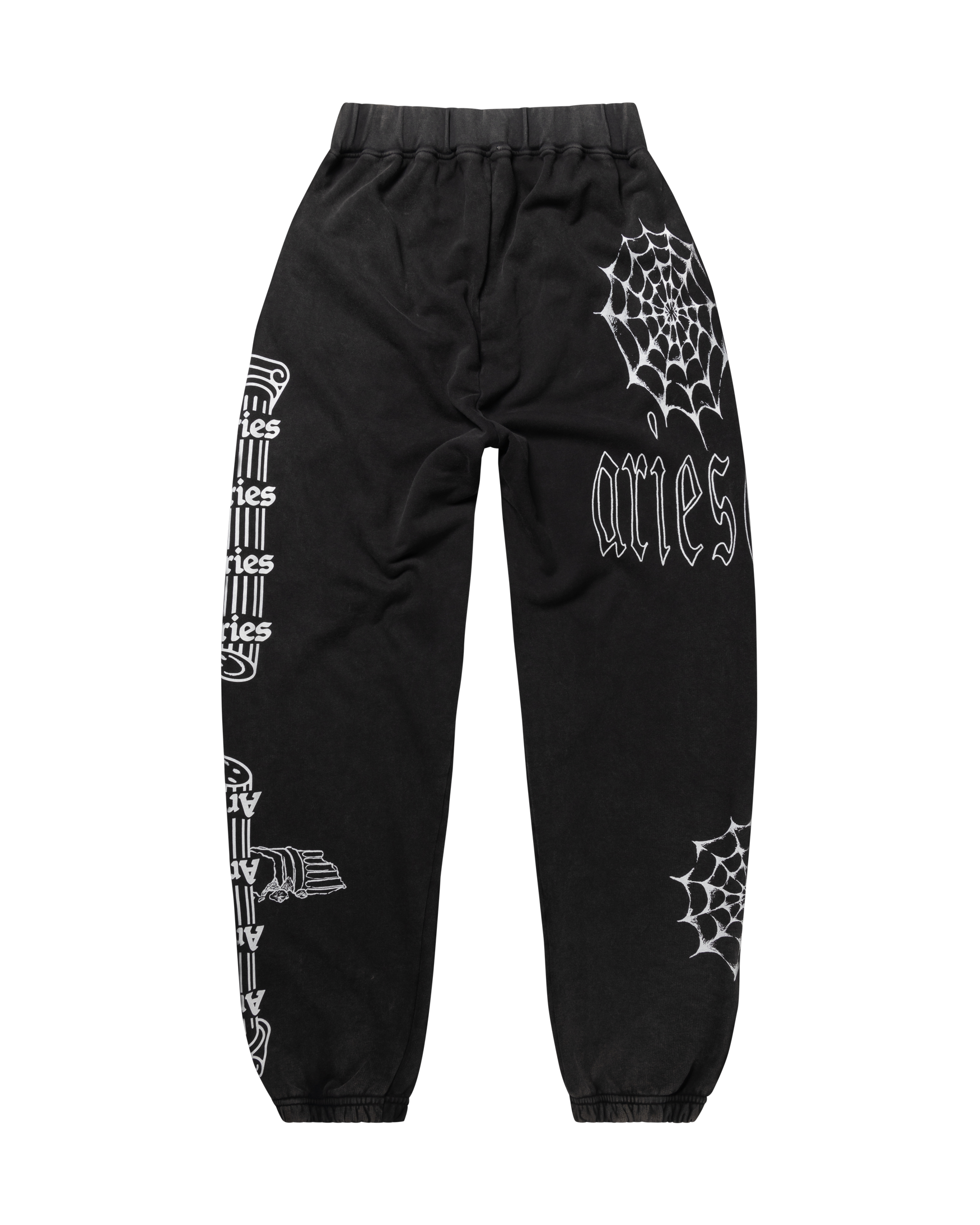 Unisex sweatpant made from brushed-back jersey fleece. Loaded with classic Aries Column'graphics, screen printed down the leg, printed over in seasonal Overlord graphics. Finished with a wash treatment for an aged look. 100% cotton.