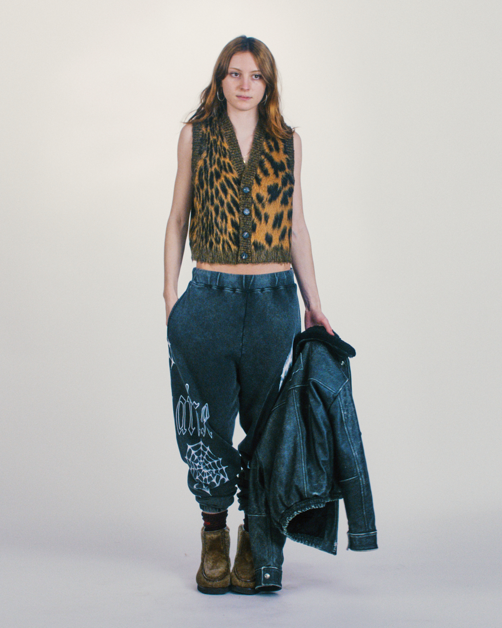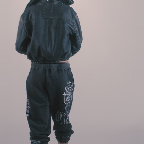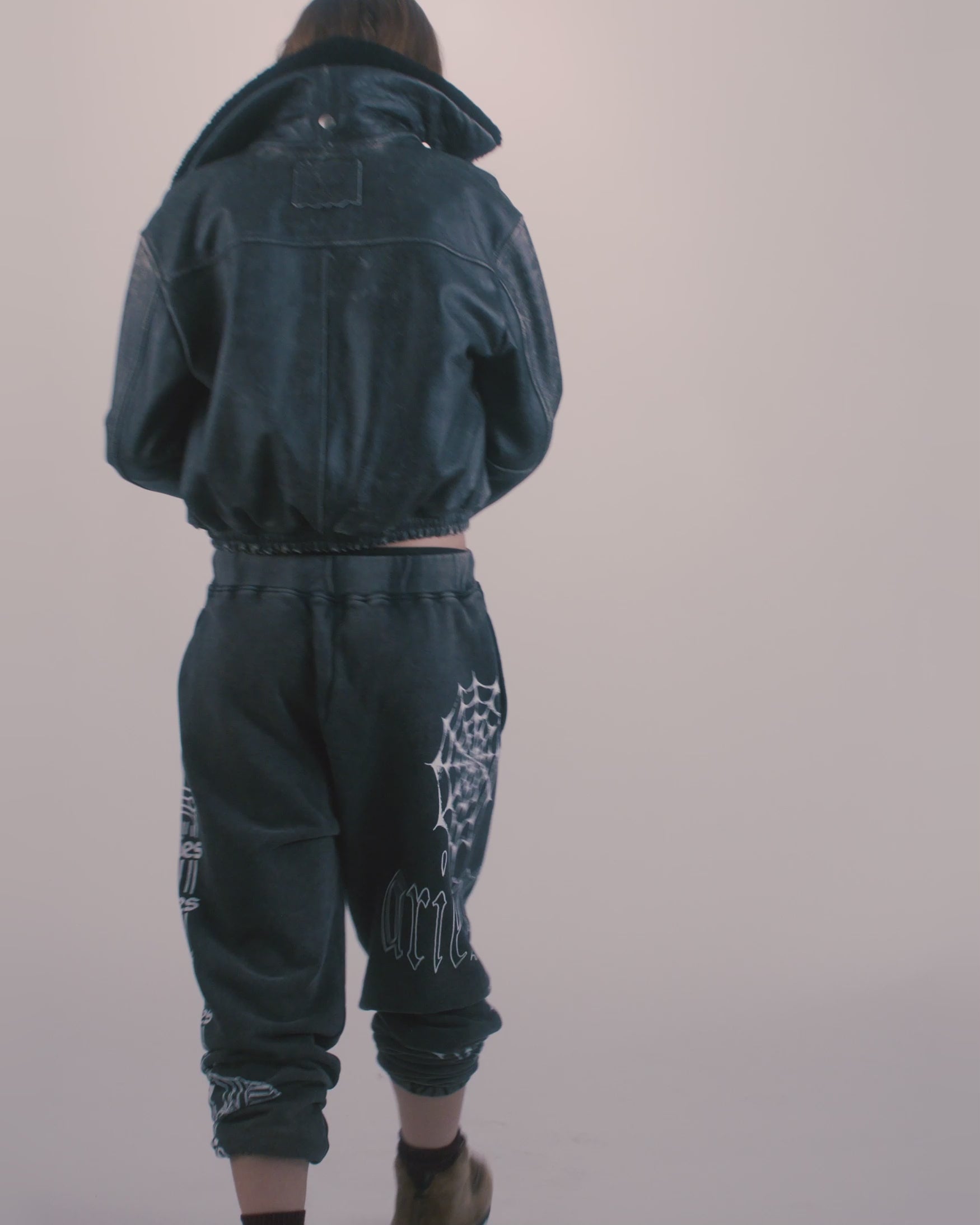Unisex sweatpant made from brushed-back jersey fleece. Loaded with classic Aries Column'graphics, screen printed down the leg, printed over in seasonal Overlord graphics. Finished with a wash treatment for an aged look. 100% cotton.