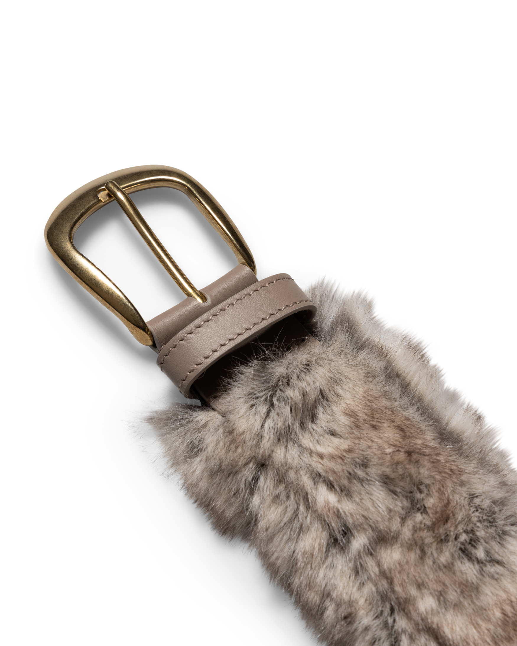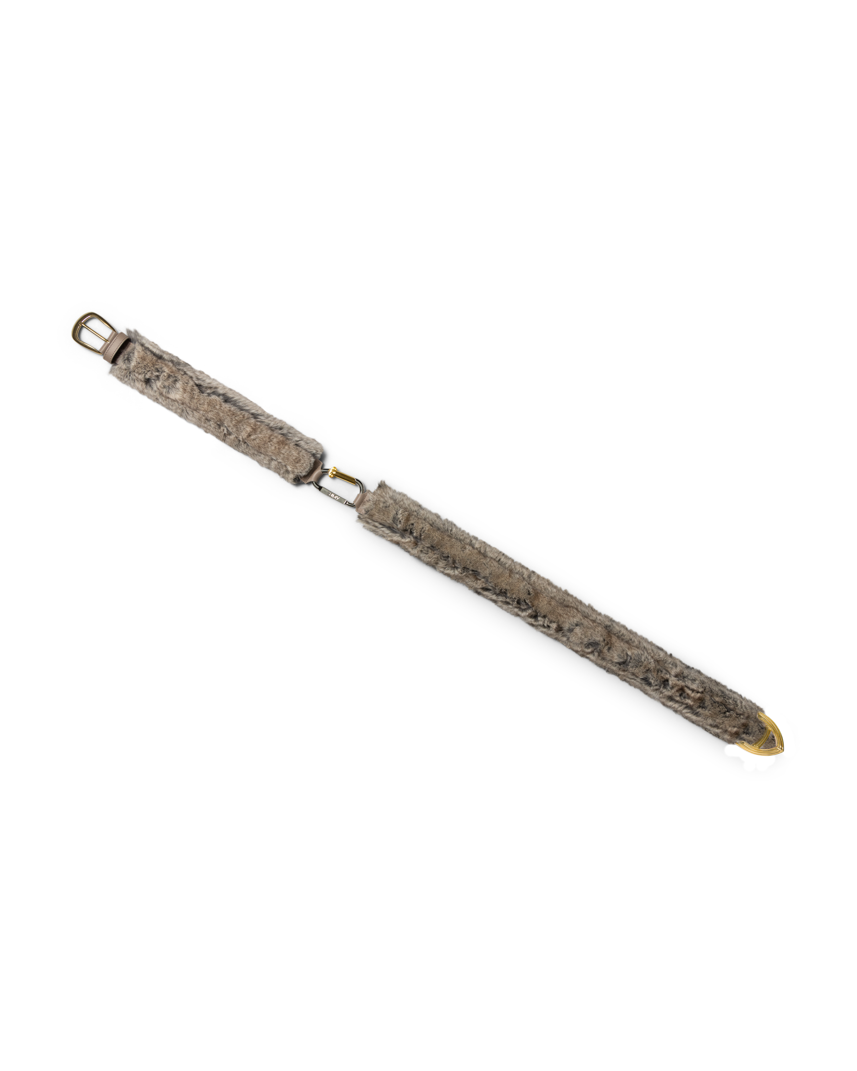 Faux chinchilla finish. Features the Aries metal column belt loop, Aries carabiner fastening, and aluminium hardware.