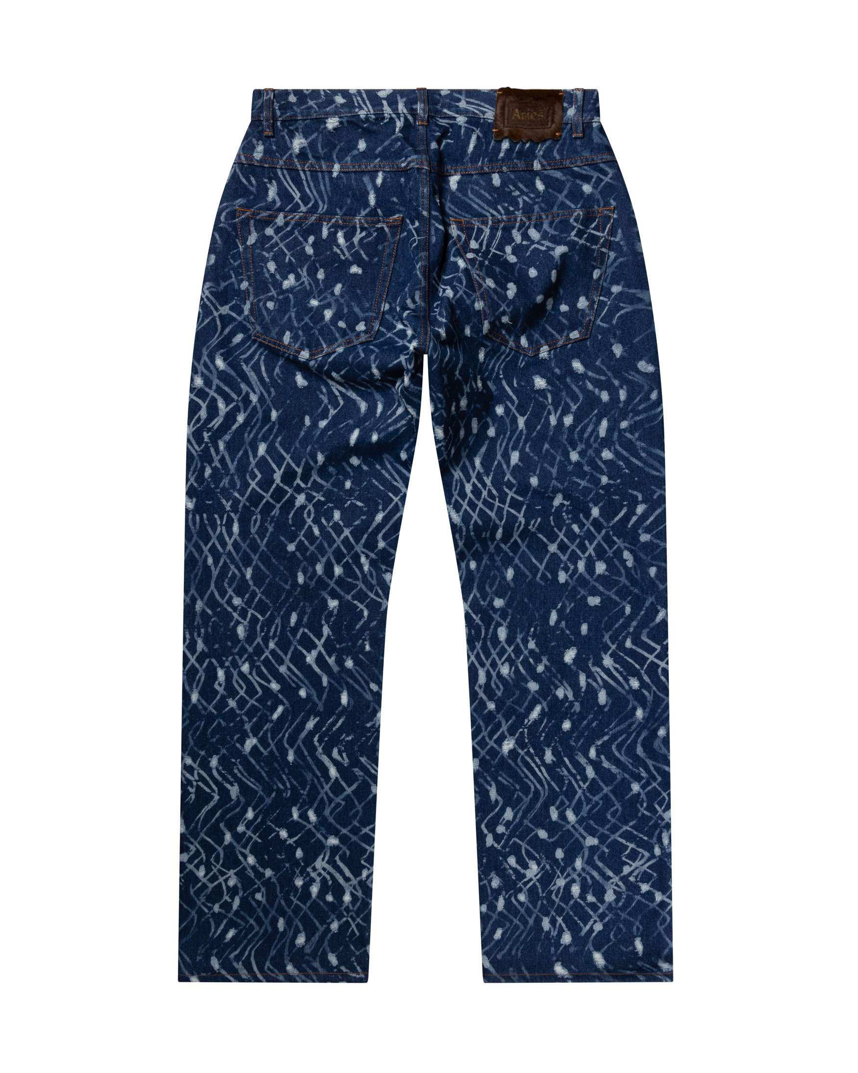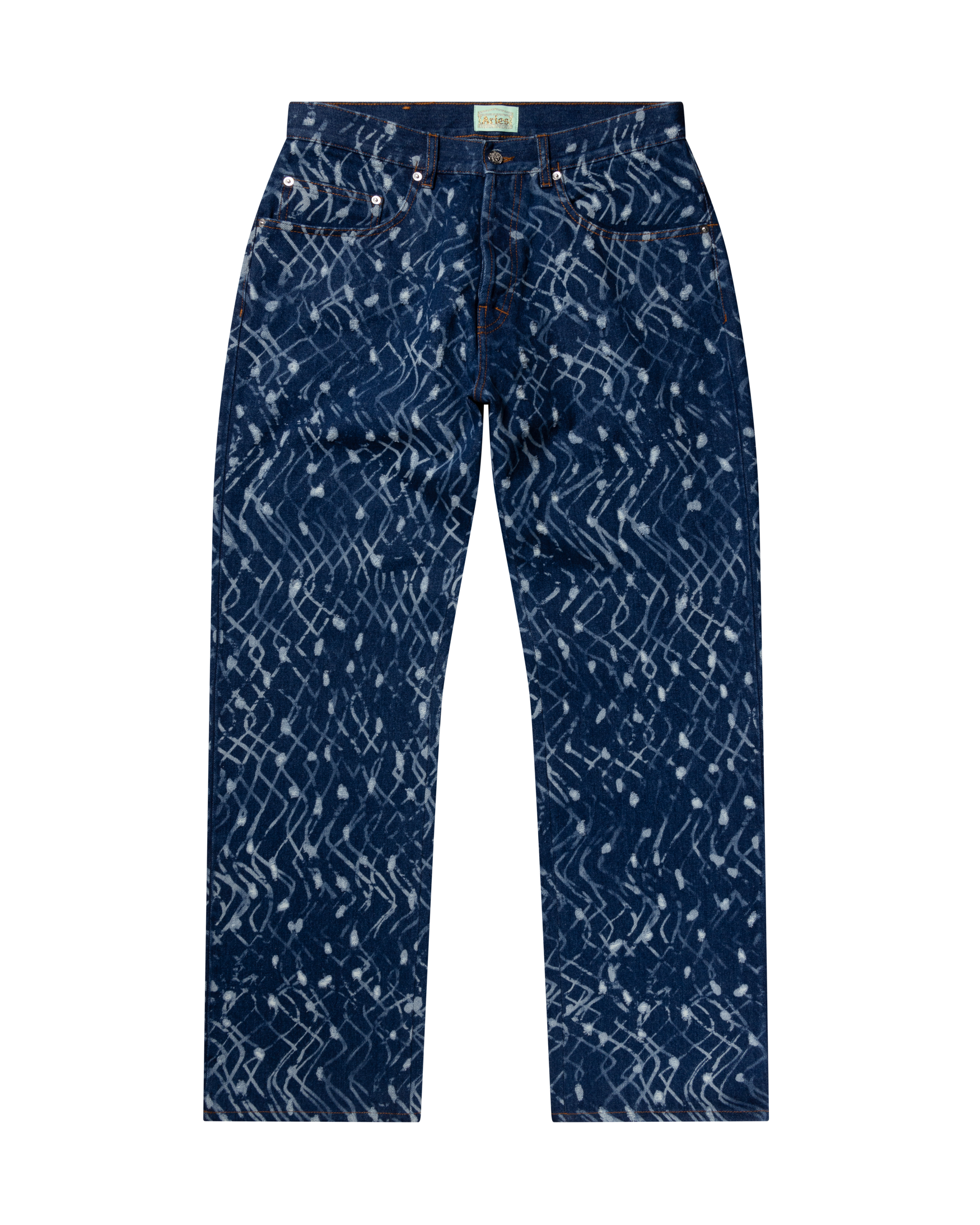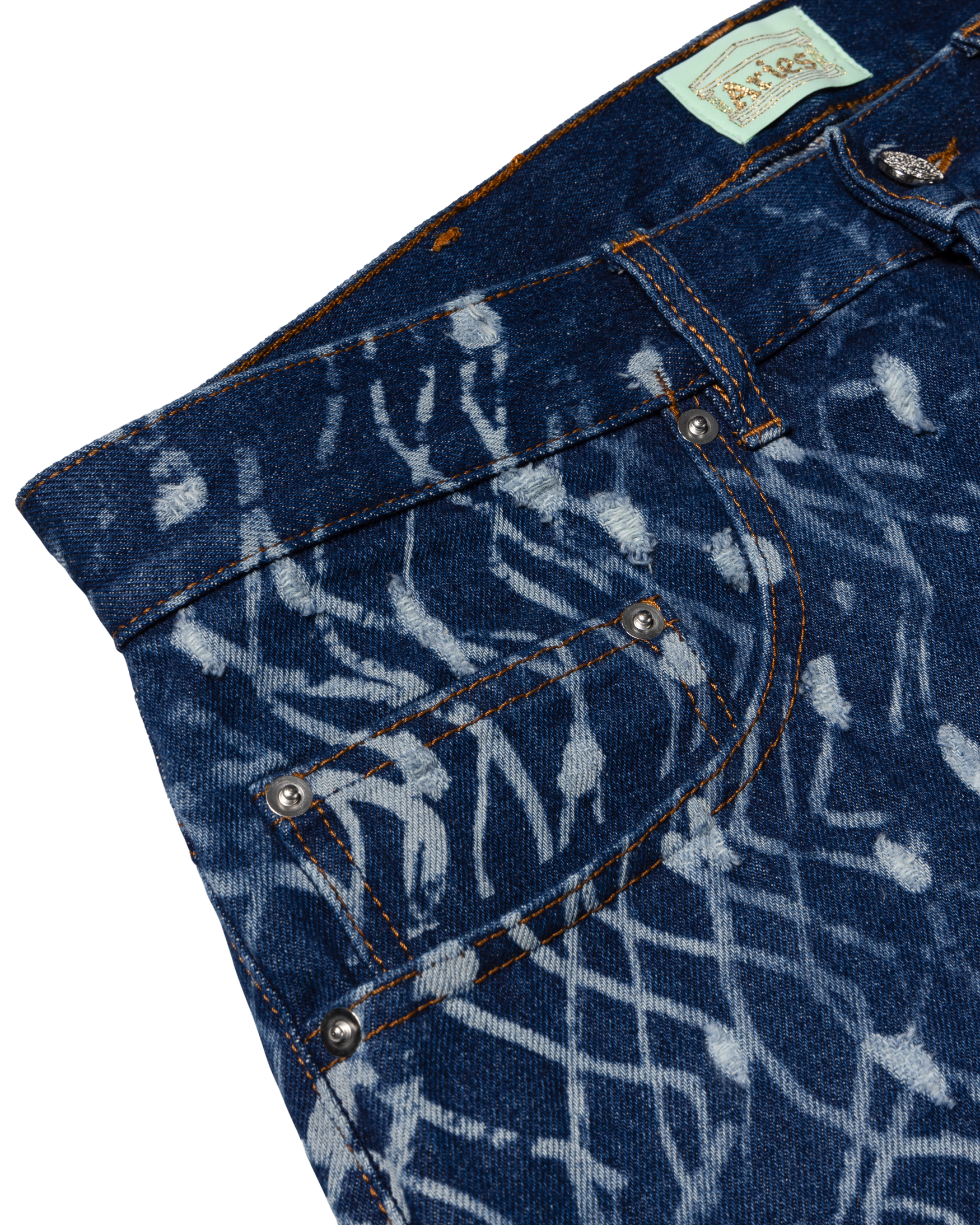 Unisex classic straight leg Batten Jean. Made from premium indigo denim with laser destroy chain mail. 100% cotton.