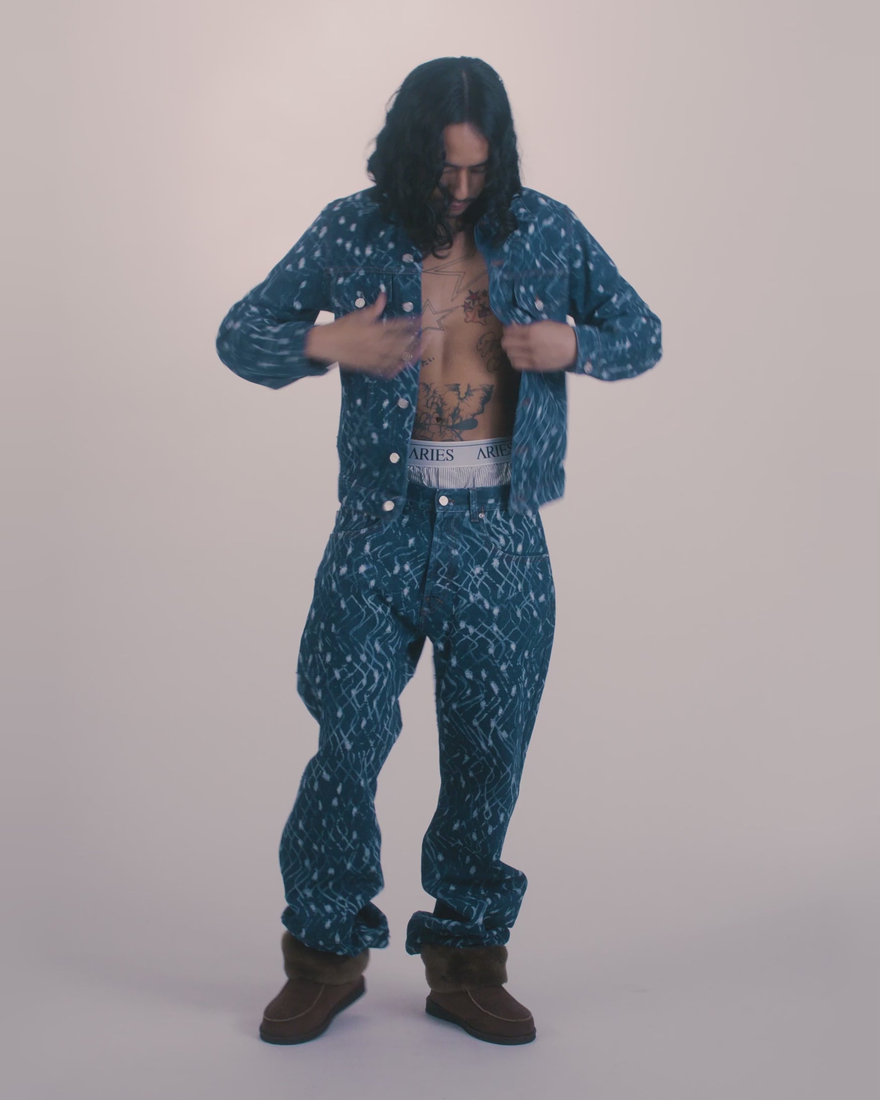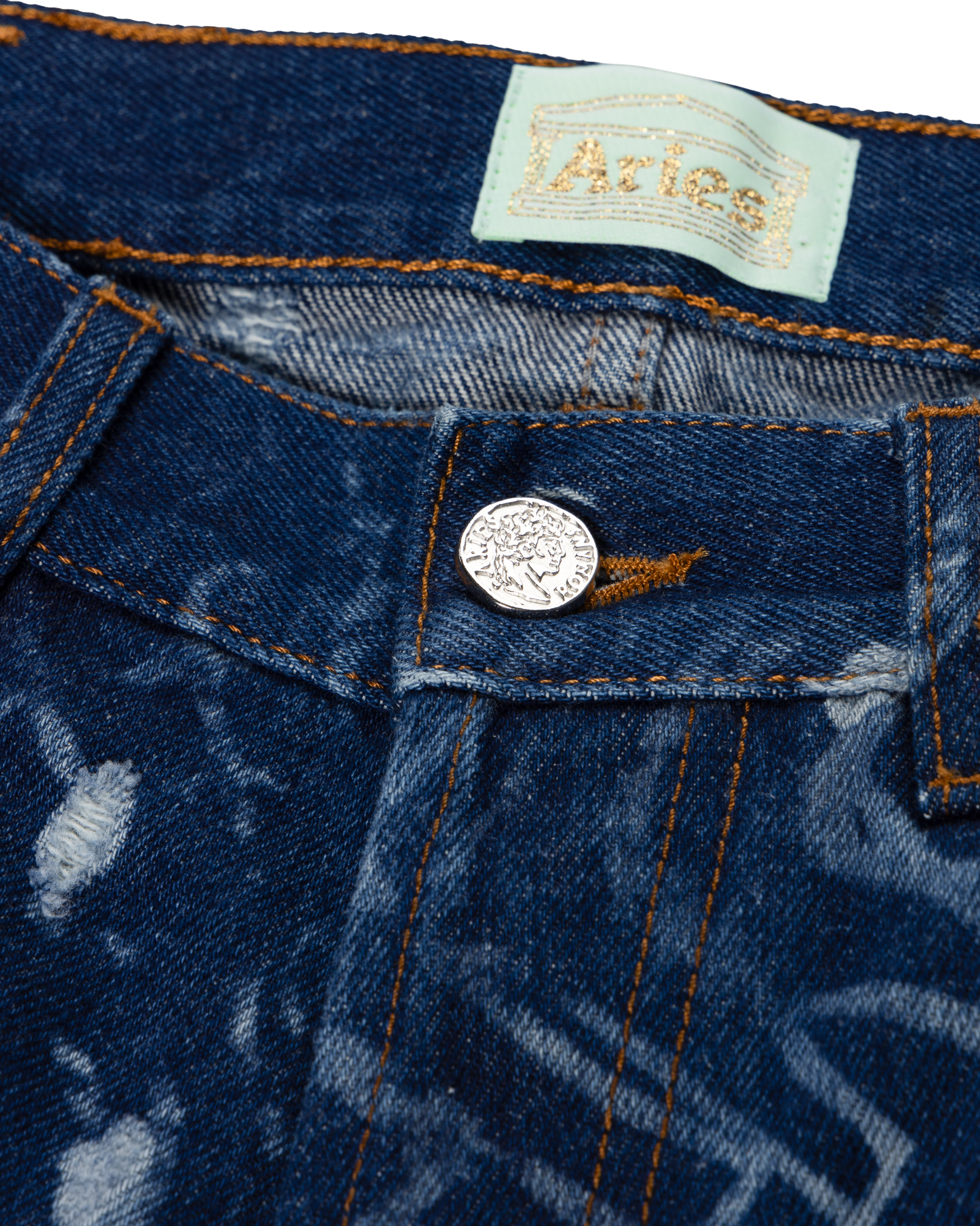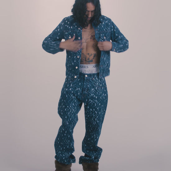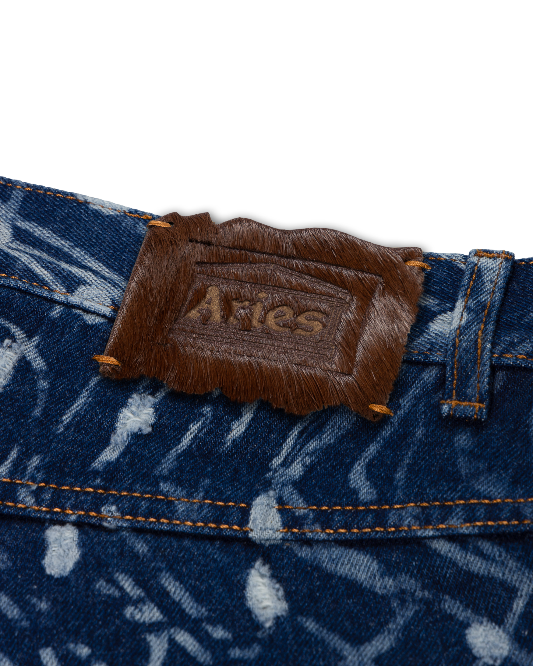 Unisex classic straight leg Batten Jean. Made from premium indigo denim with laser destroy chain mail. 100% cotton.