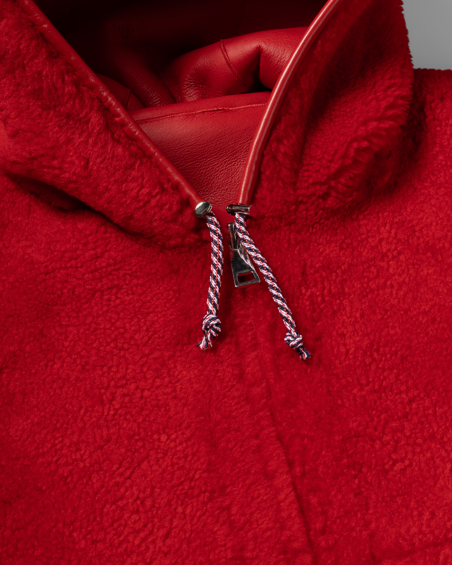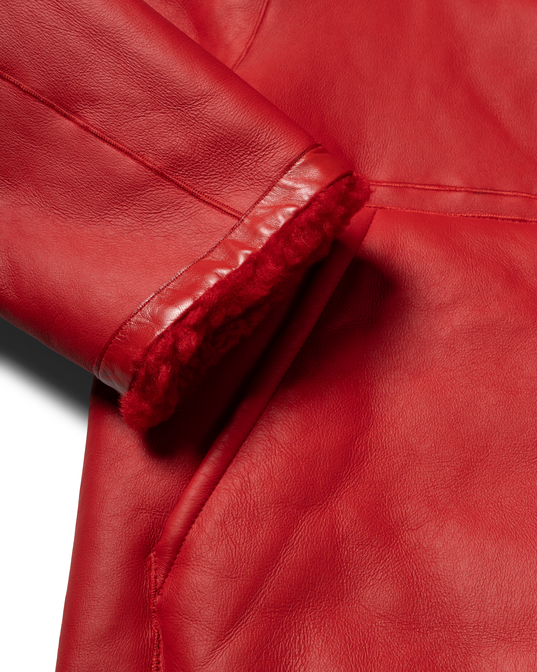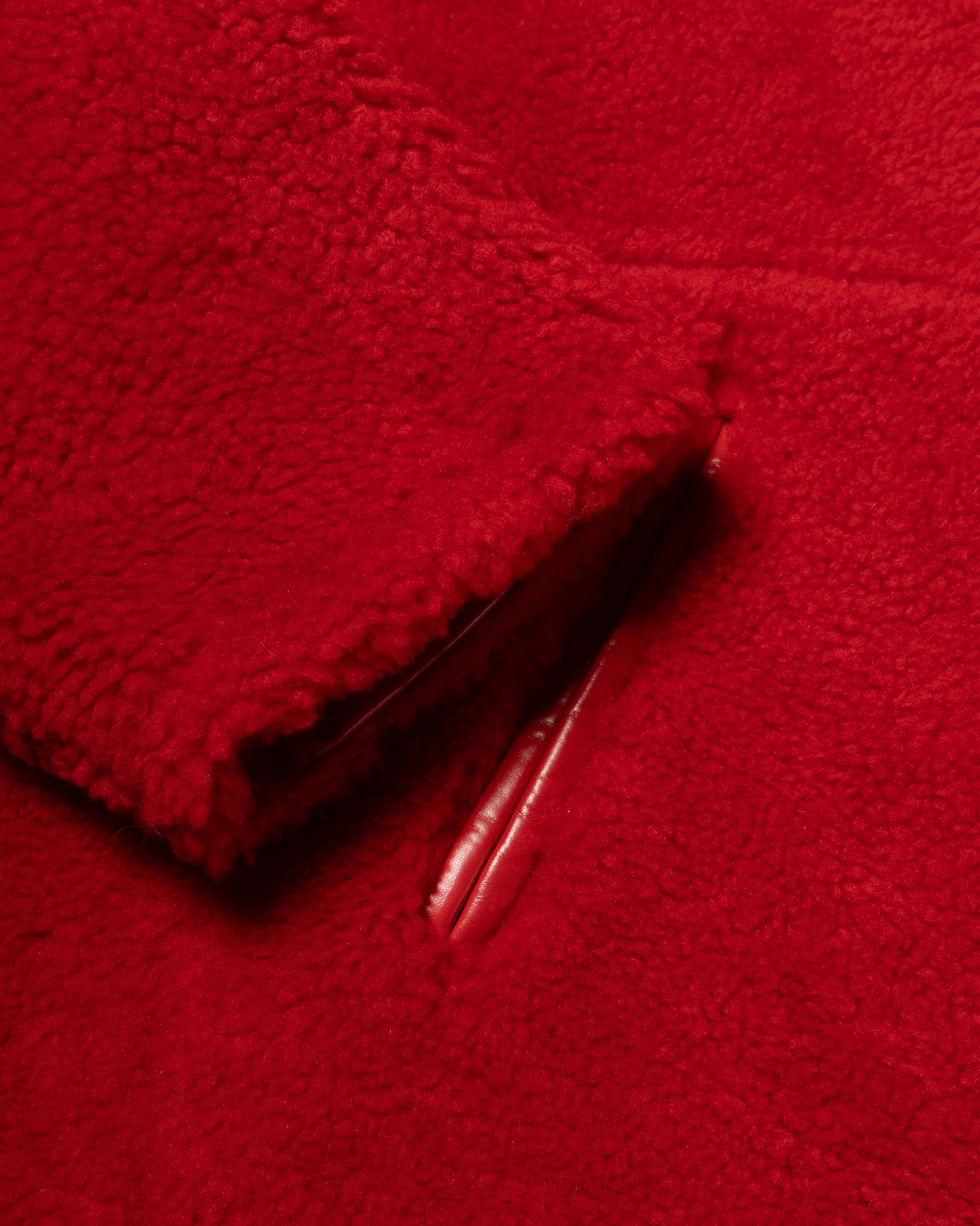 Oversized reversible teddy-fur sheepskin jacket with metal hardware. Made in Italy using premium bi-product sheepskin.