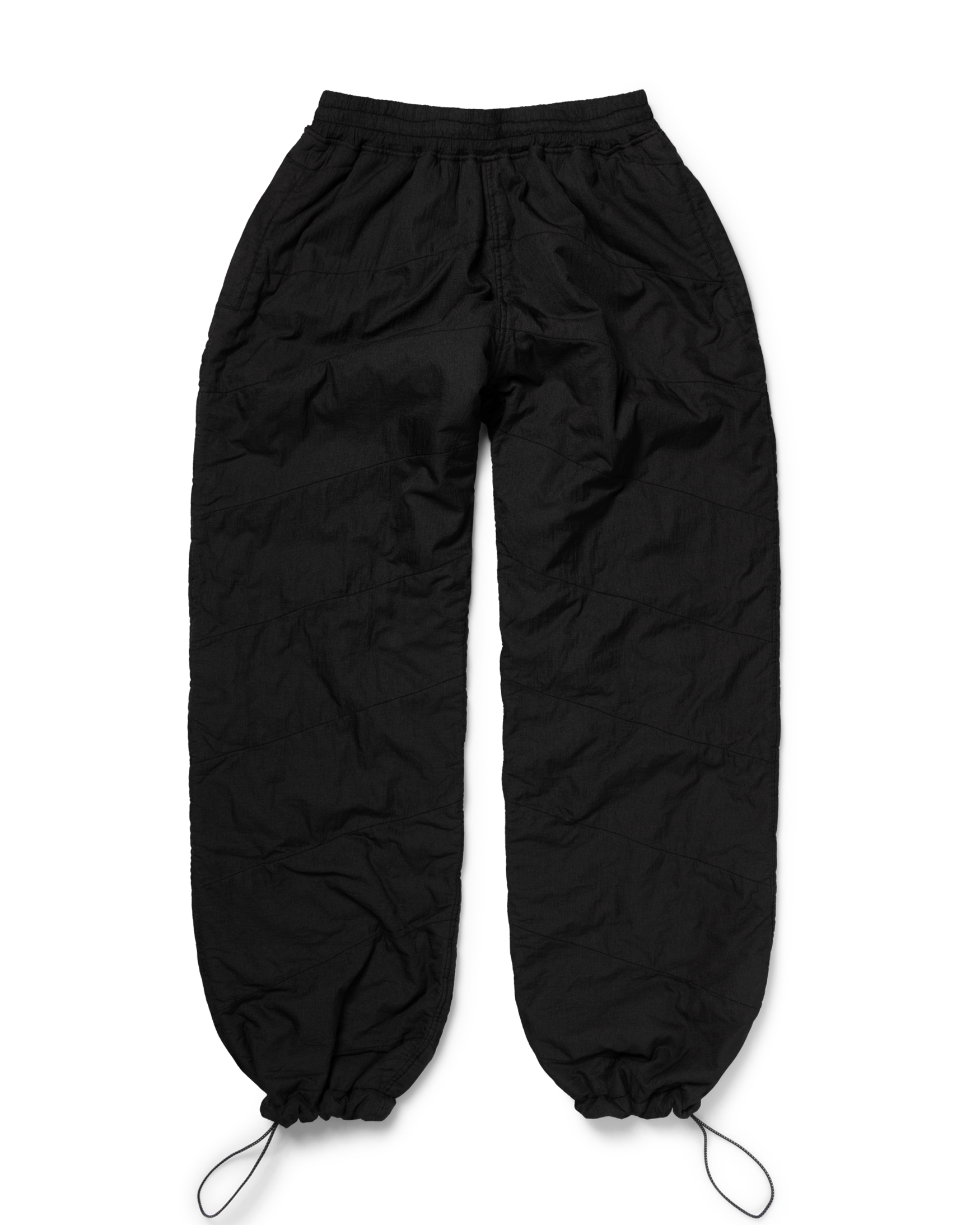 Unisex quilted mini ripstop nylon trackpant with chevron stitch detailing, using sustainable wadding from recycled PET bottles. With an elasticated waistband, ankle toggles and a back zip patch pocket with silicone temple patch. Folds down into its own bag. With a two-colour spray dye finish. 100% nylon.