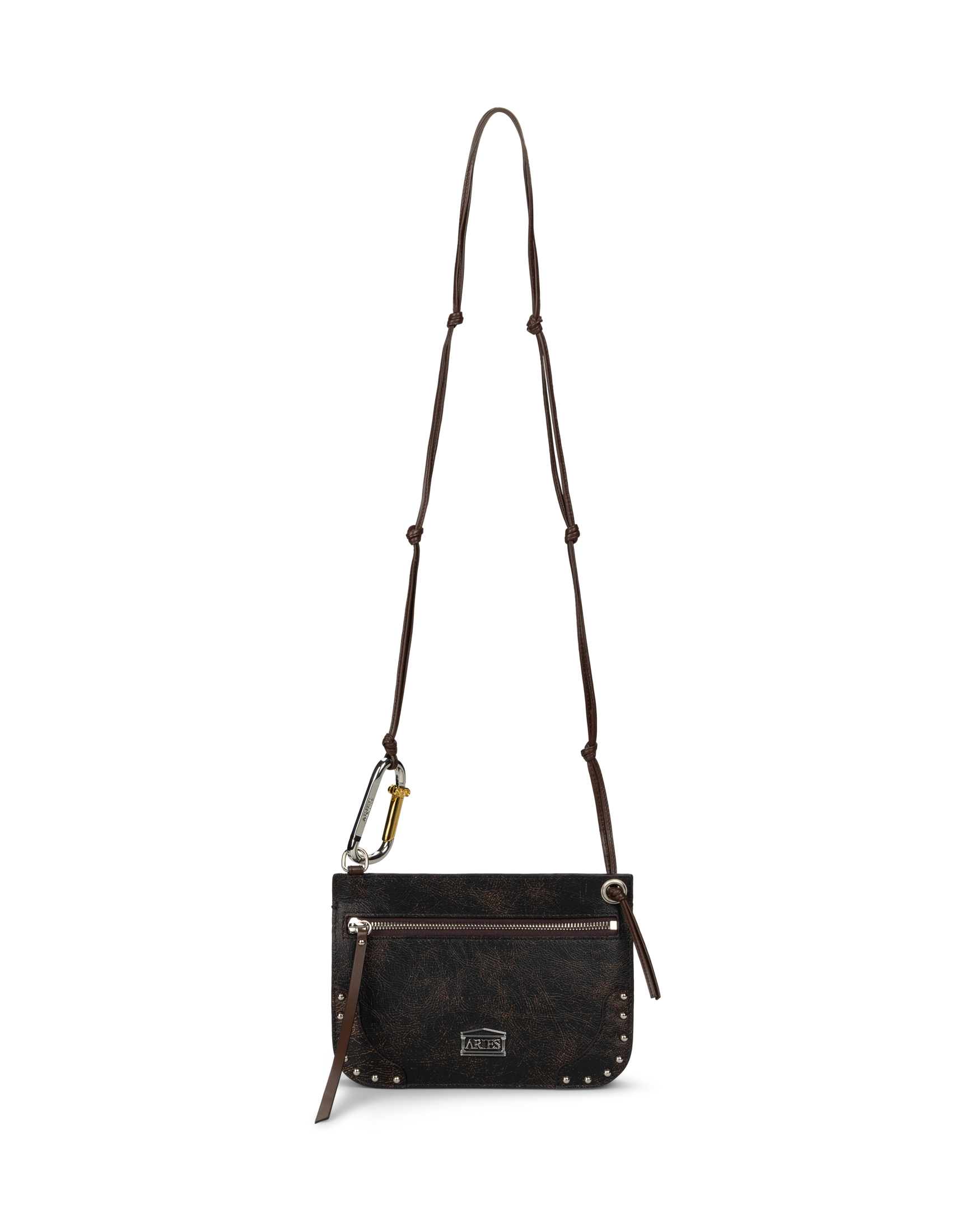 Vintage Leather Bobby Bag with Aries Column Carabiner and Aries Metal Temple logo.