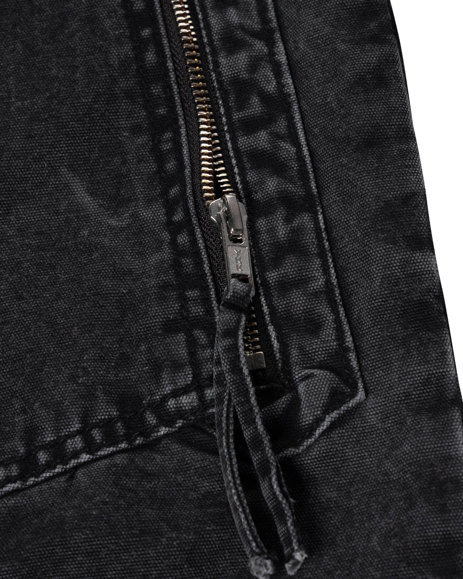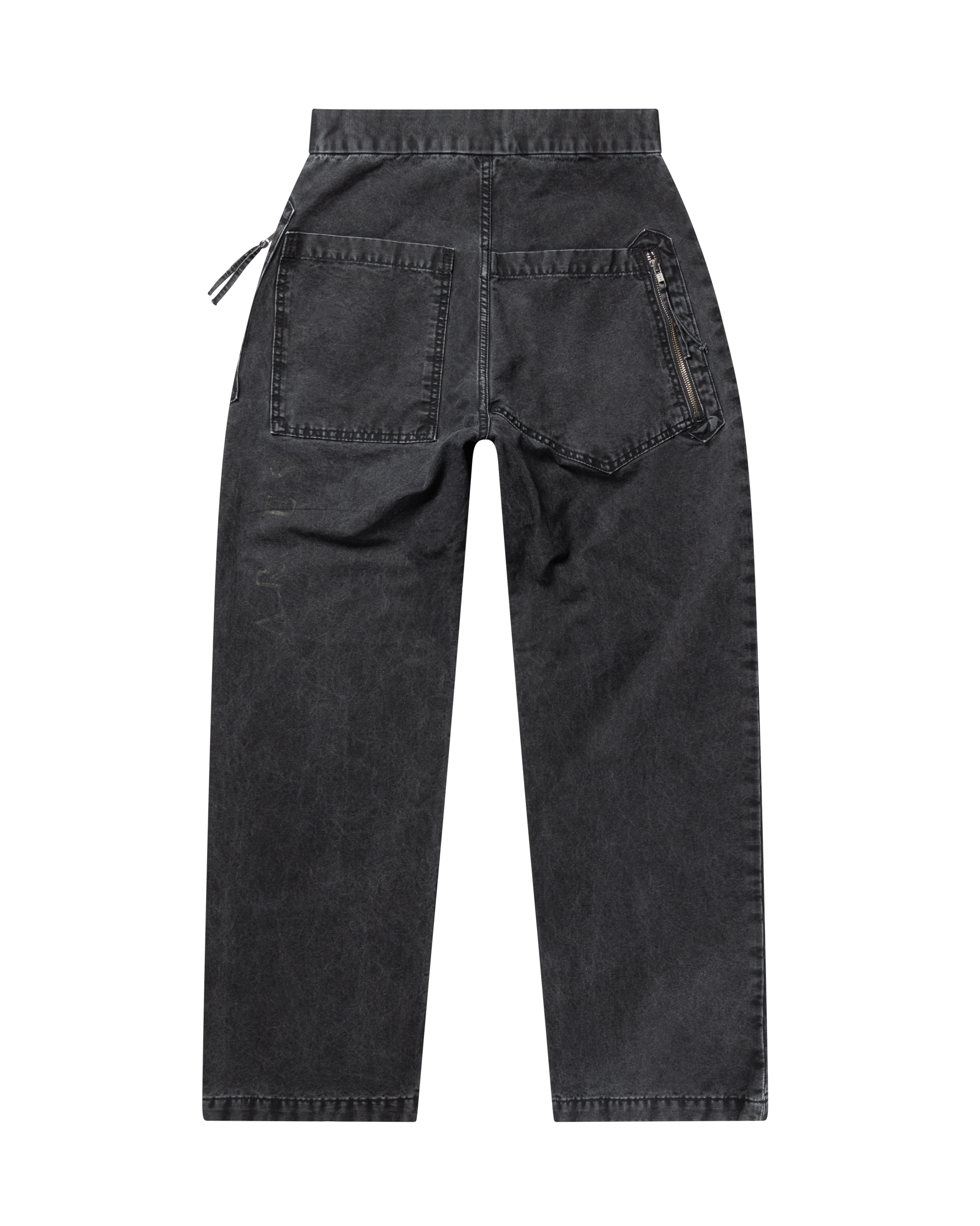Enzyme washed, cotton canvas walking-style trousers with a chunky contrast front zip, velcro side tabs to adjust the waist and zipped side pockets. 100% cotton.