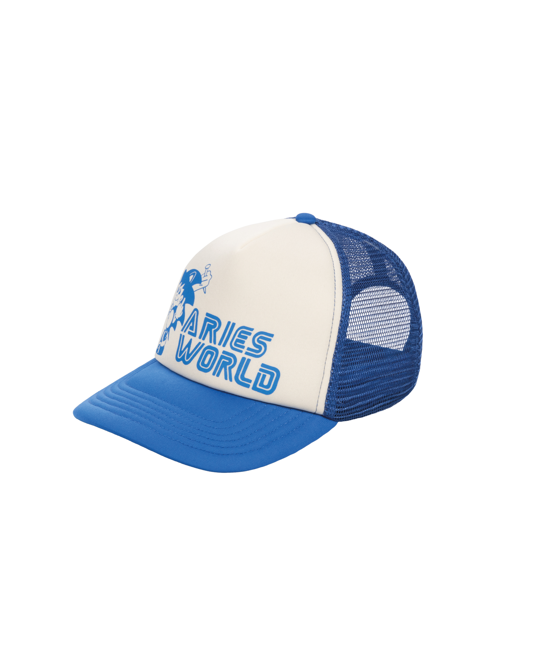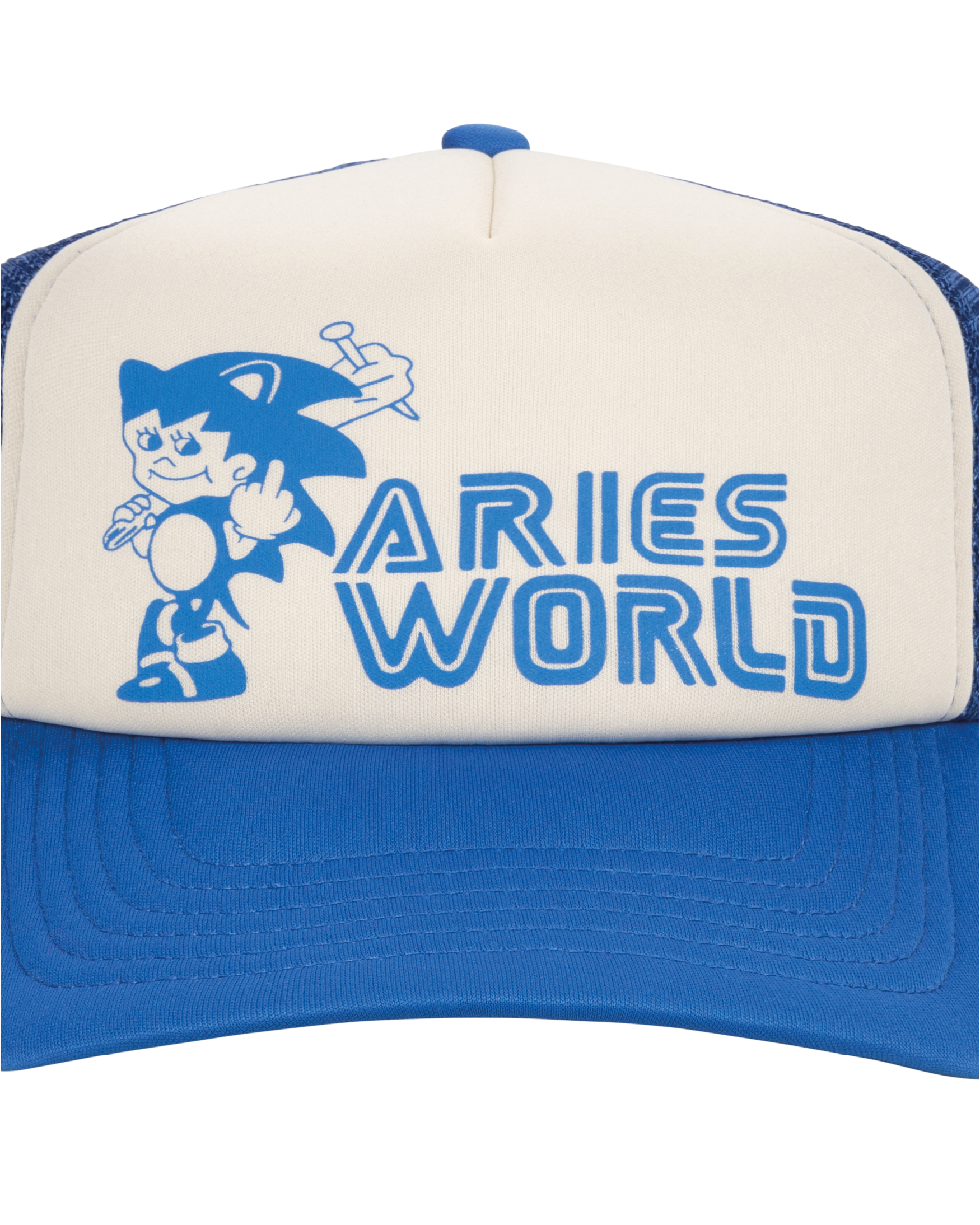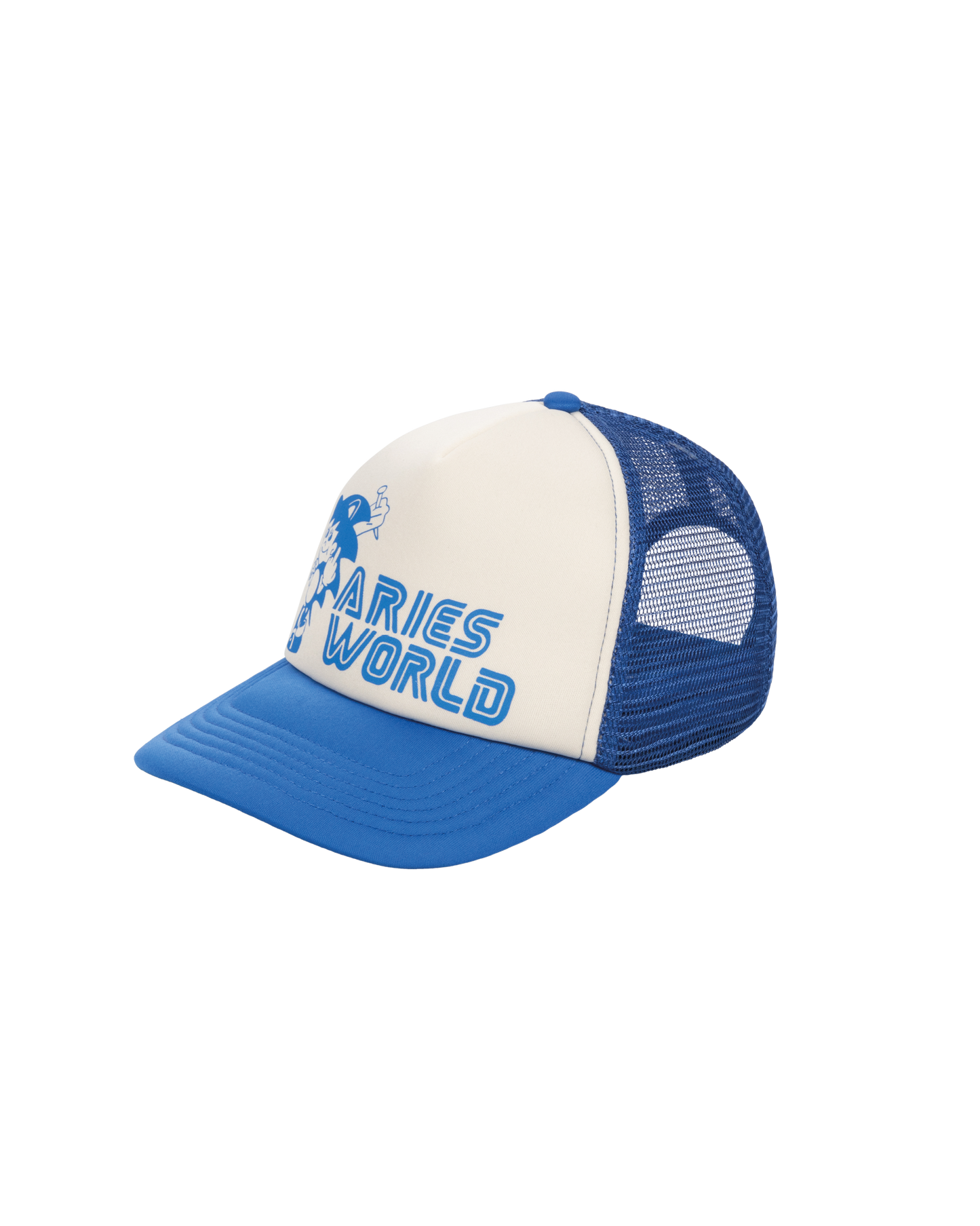 Classic trucker cap with Aries Sonico Cave Man graphic.