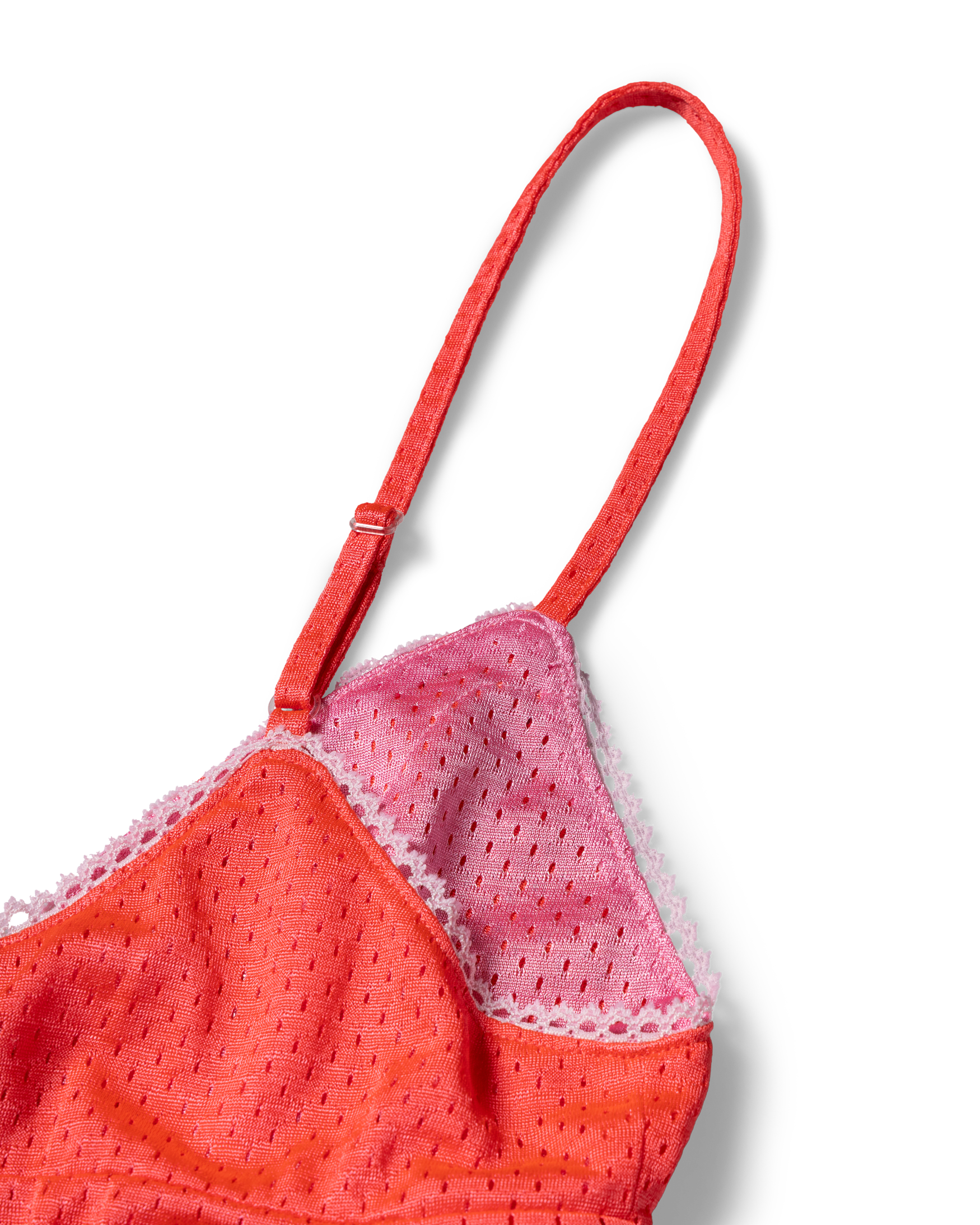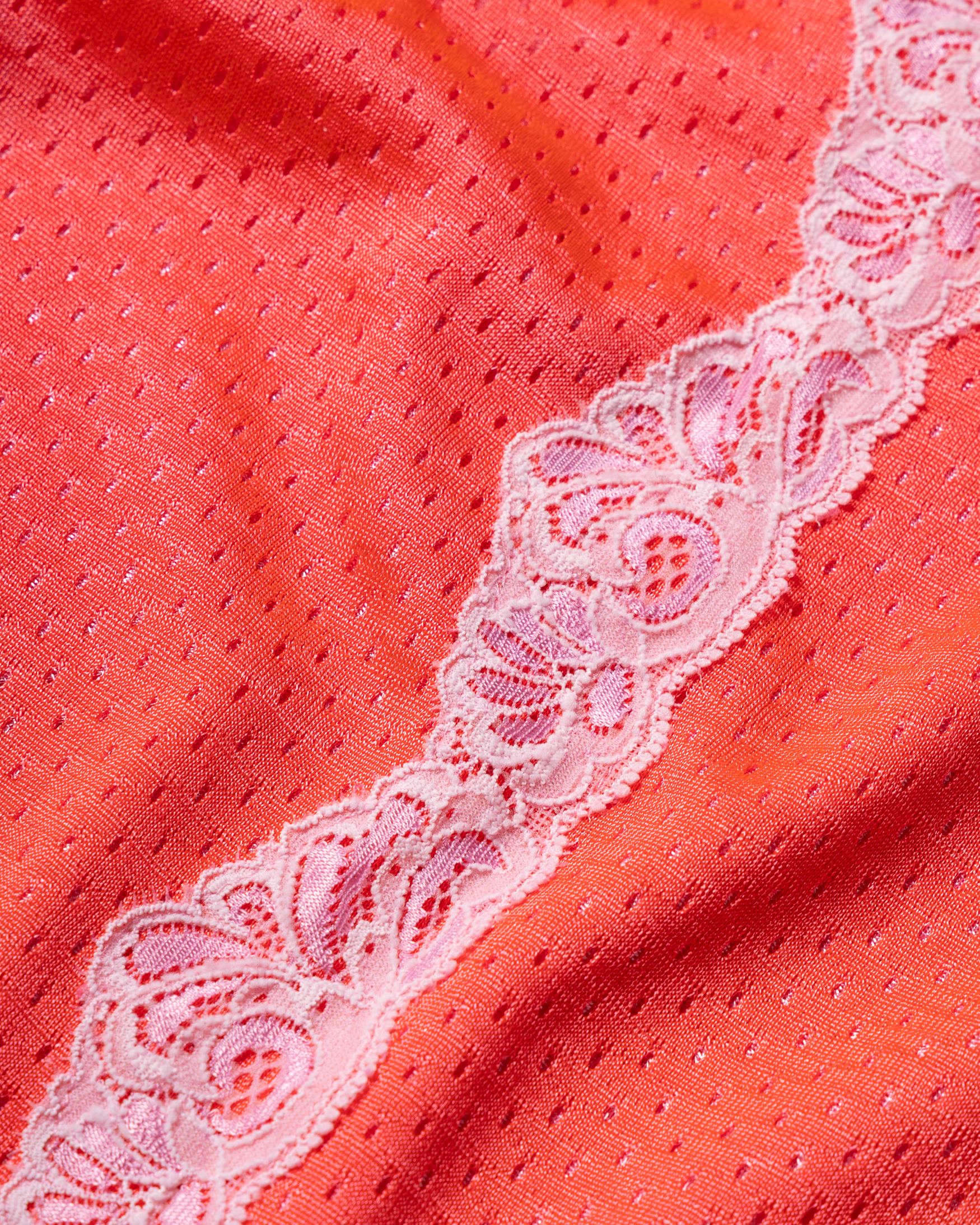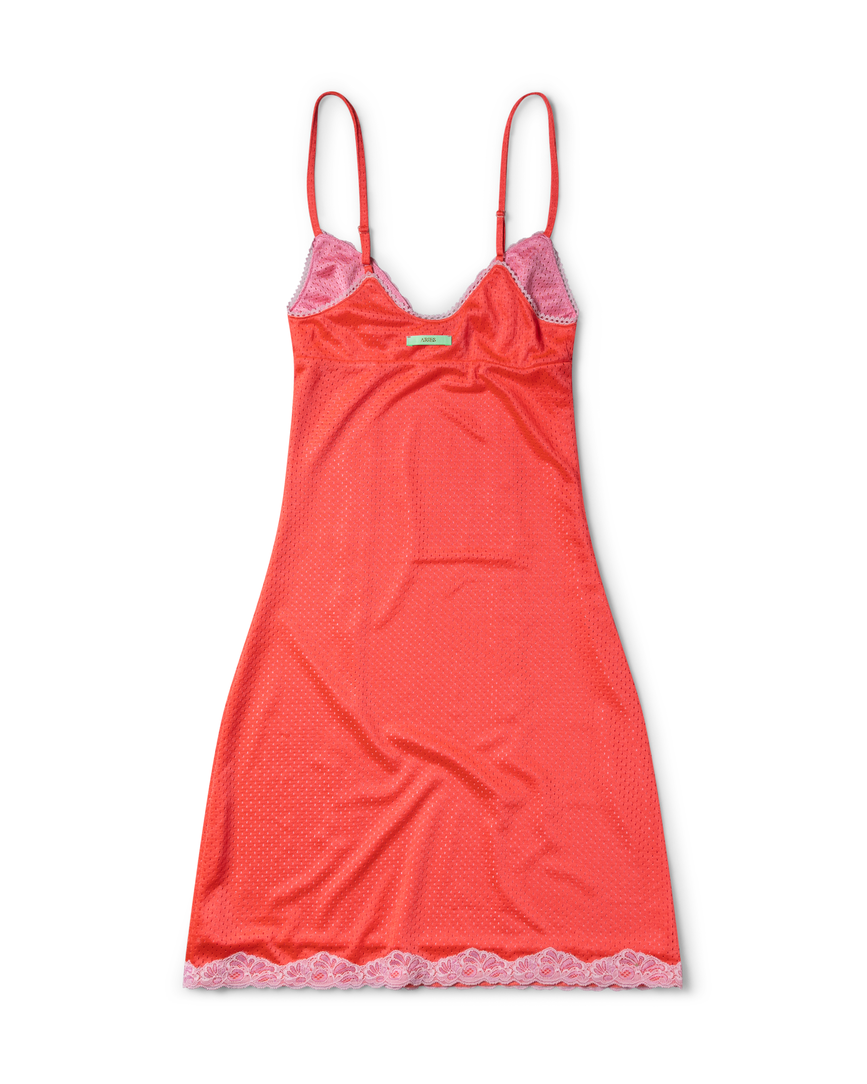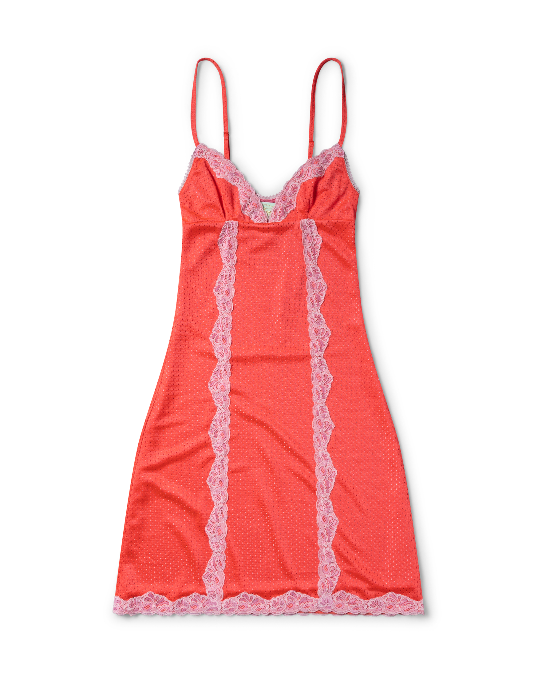 Strappy babydoll dress in double layer shiny airtex with contrast lace trim detailing.