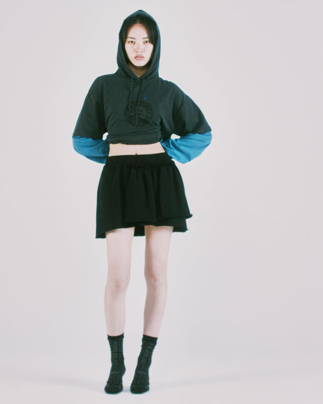 Pointelle Temple Patchwork Hoodie