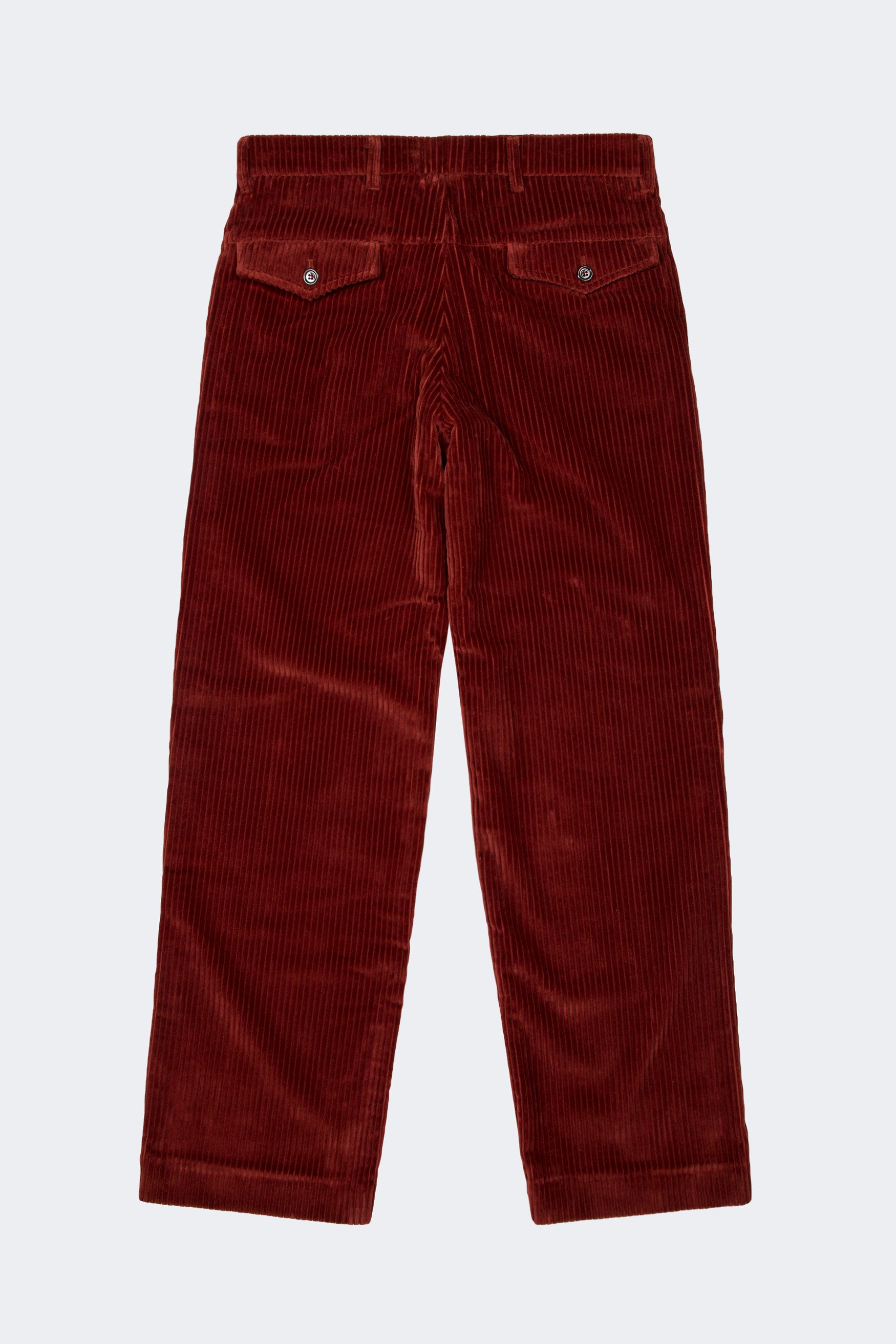 Jumbo cord chinos with a fluorescent zip pocket detail, in rust.