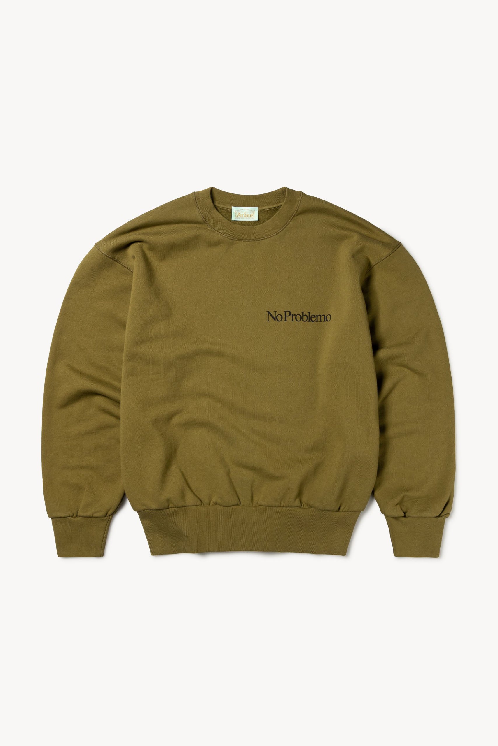 Unisex crew-neck sweatshirt made from brushed-back jersey fleece. With a mini No Problemo screen-printed chest graphic. 100% cotton. Made in Italy.
