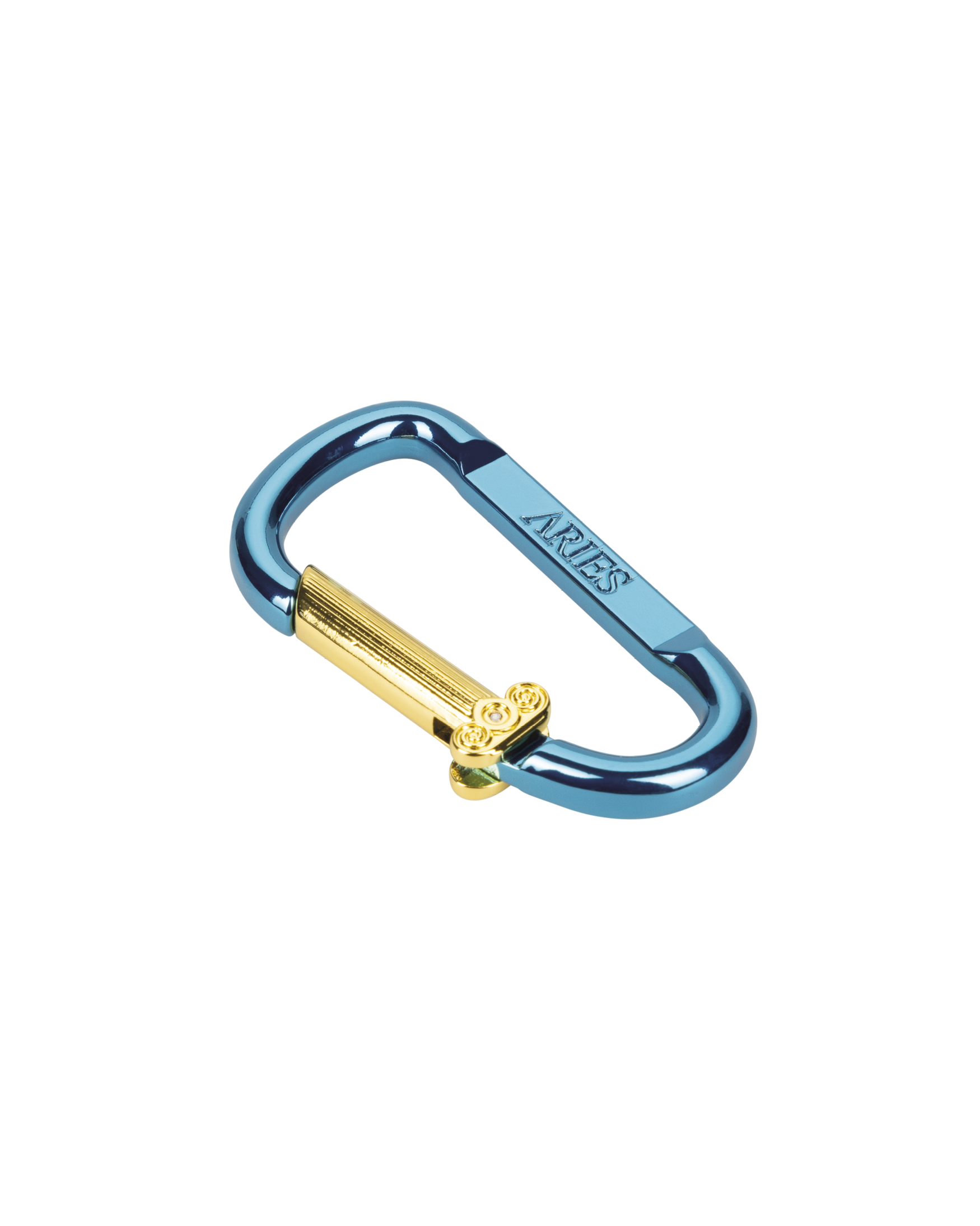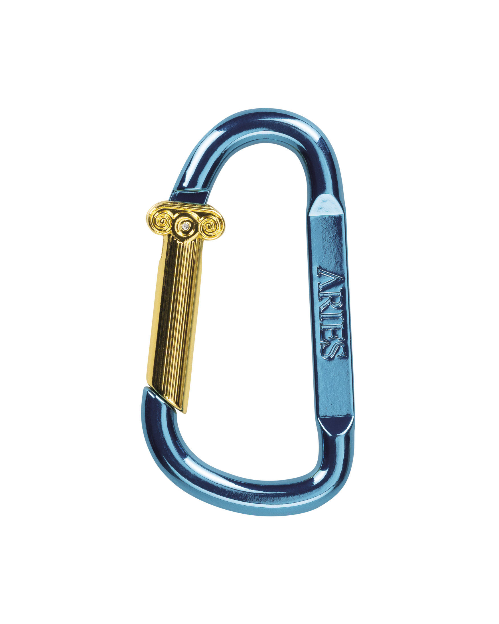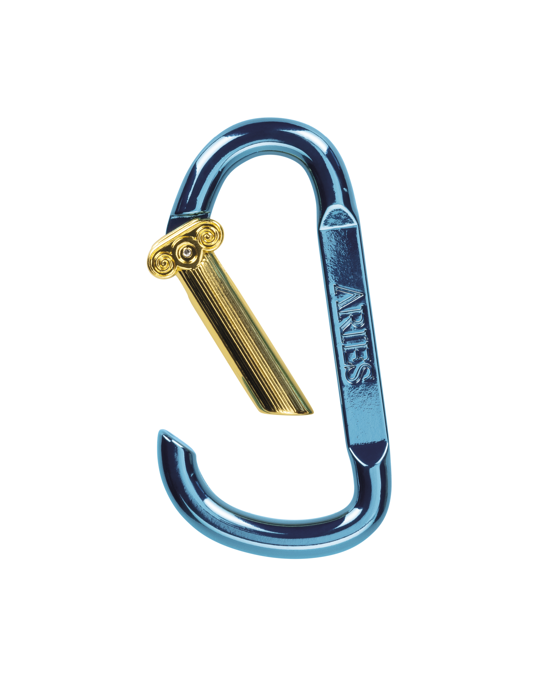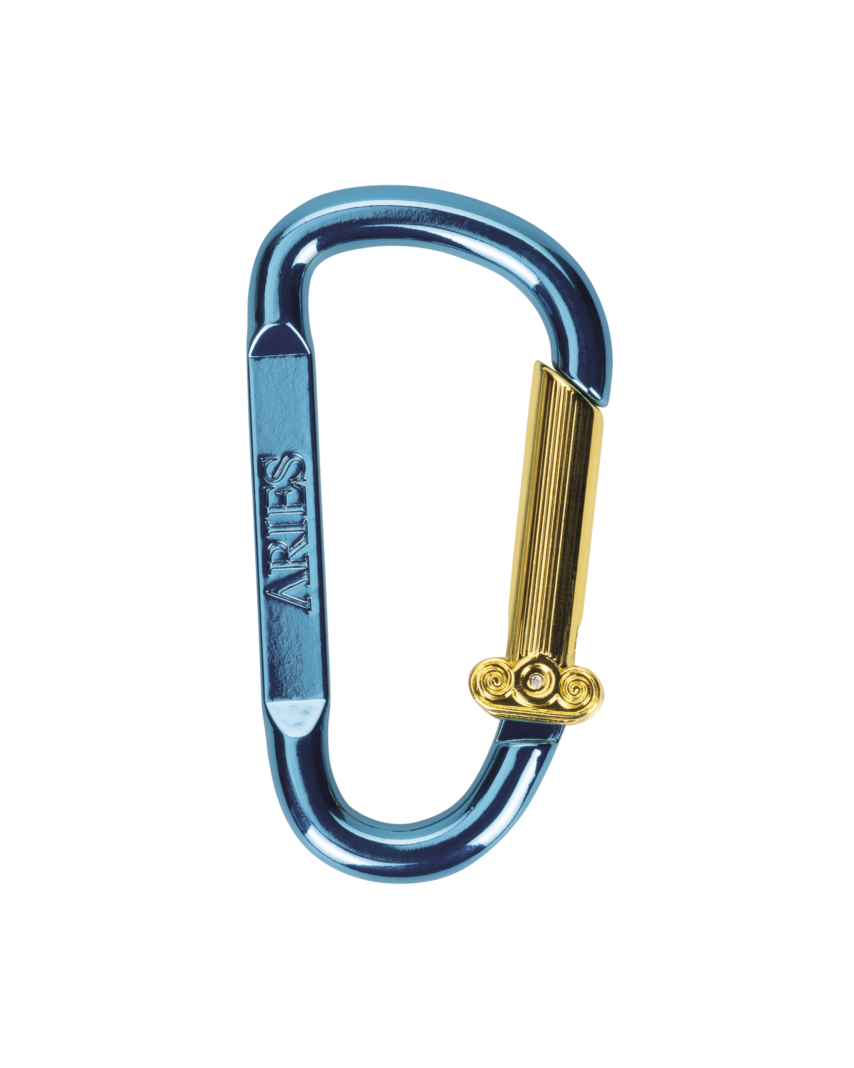 Moulded brass, silver and gold plated with moulded Aries carabiner as the clip - not for climbing.