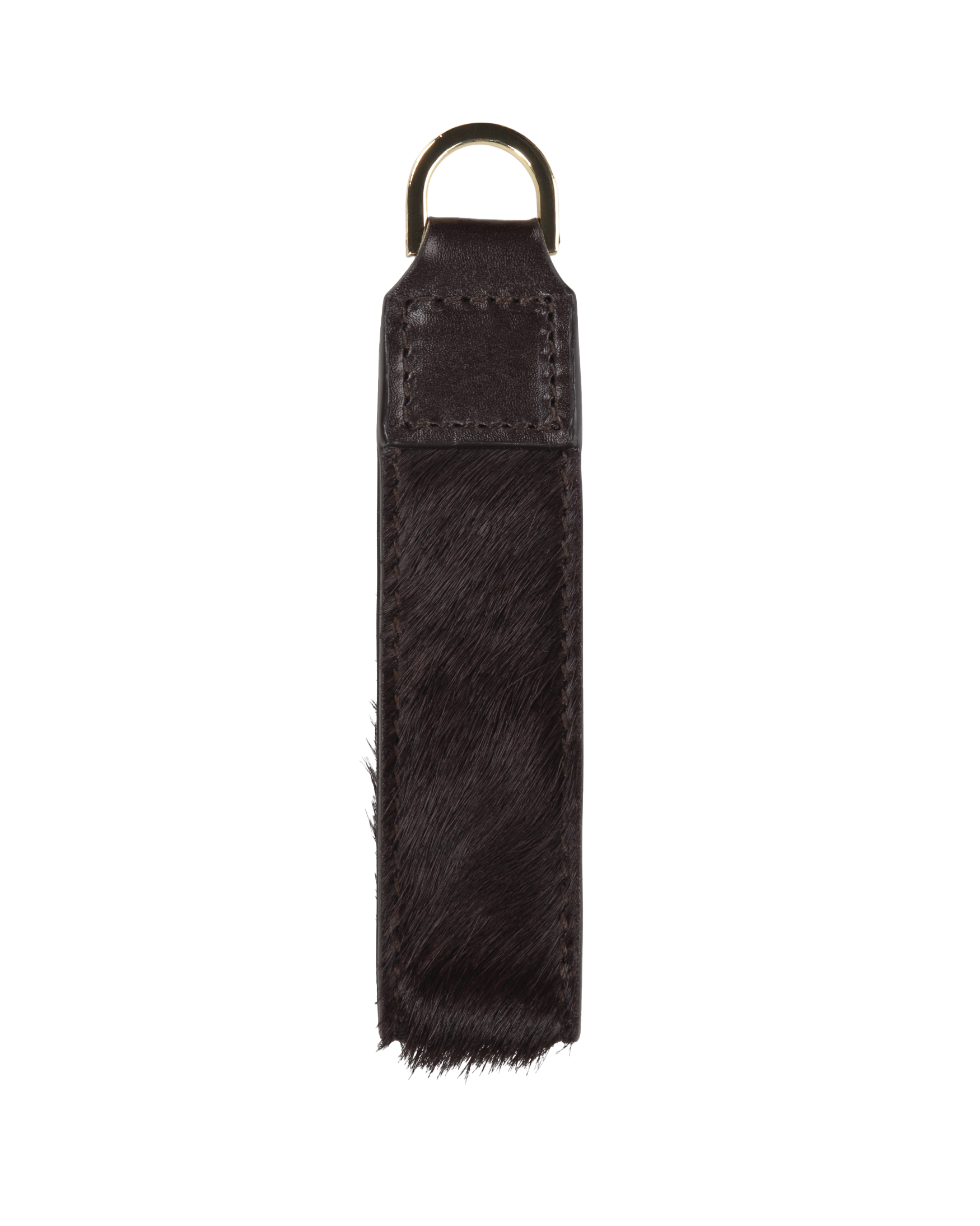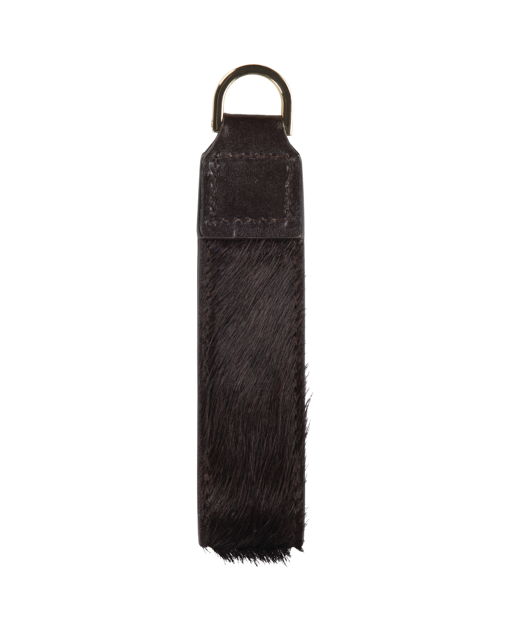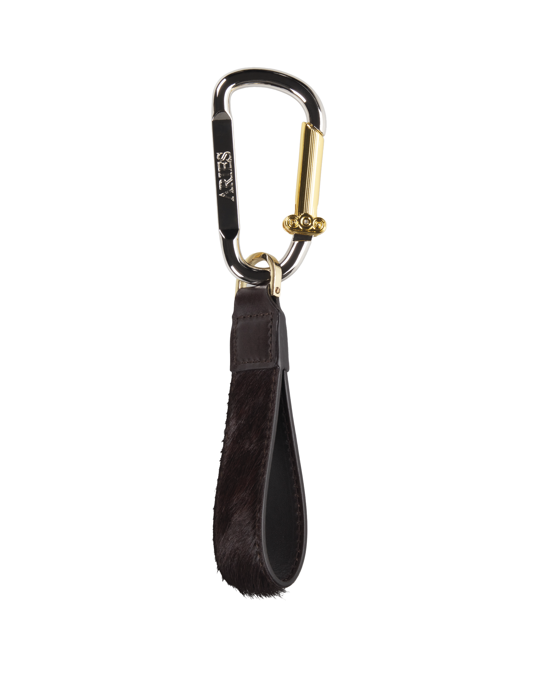 Premium ponyskin leather keychain with Column carabiner. Made in Italy.