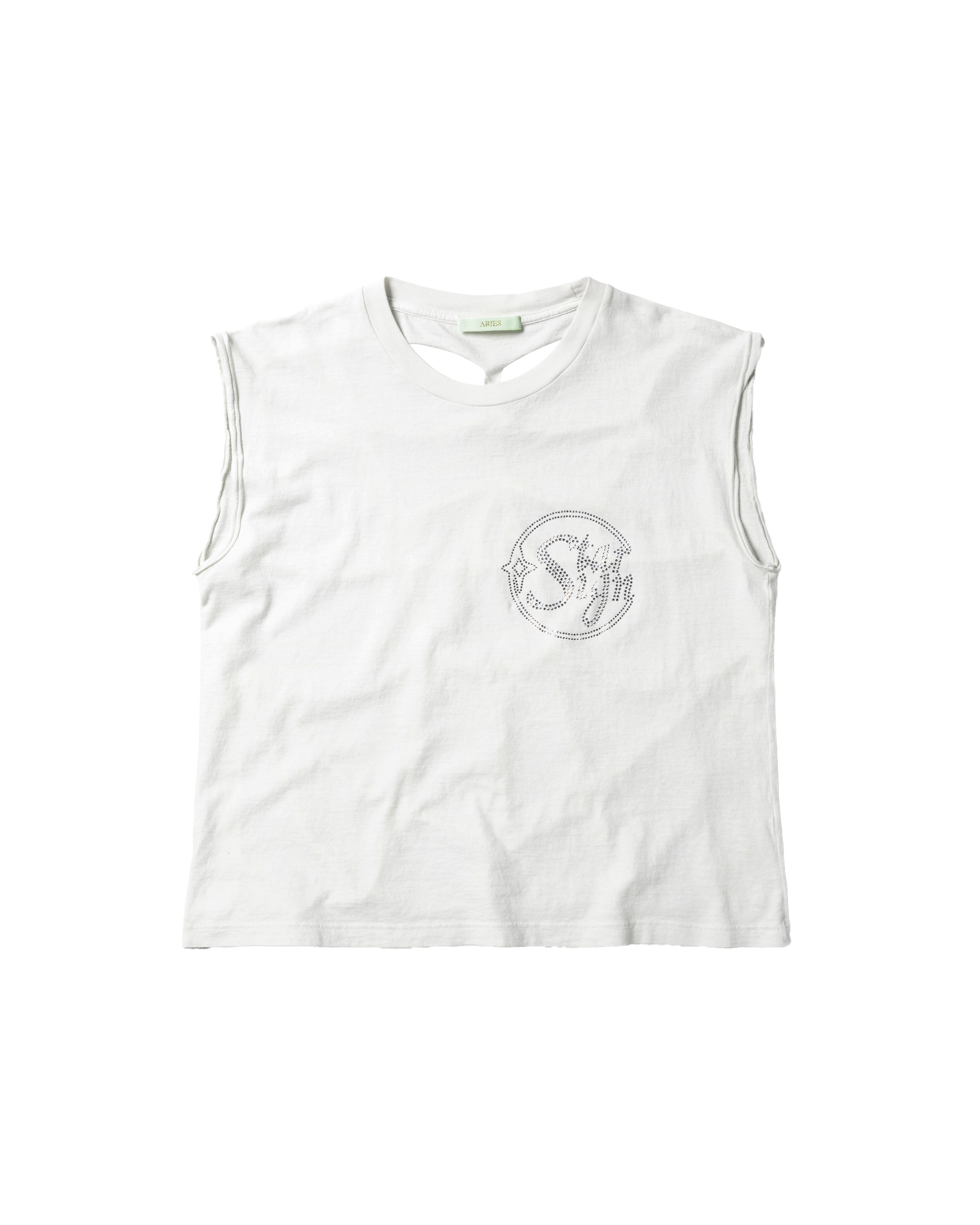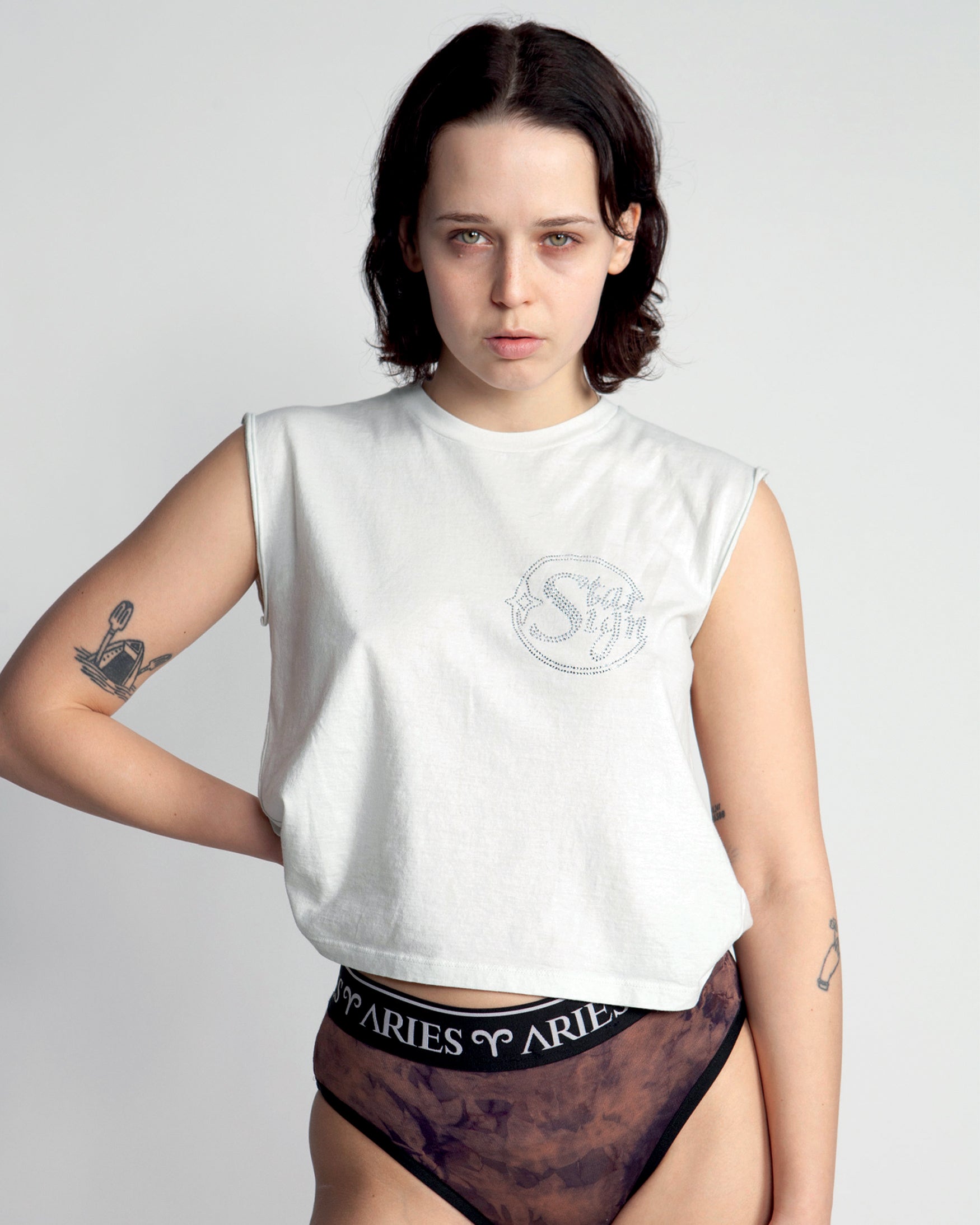 Shrunken muscle vest made from super lightweight cotton jersey. Featuring an Aries graphic in diamante on the chest and cut out back.