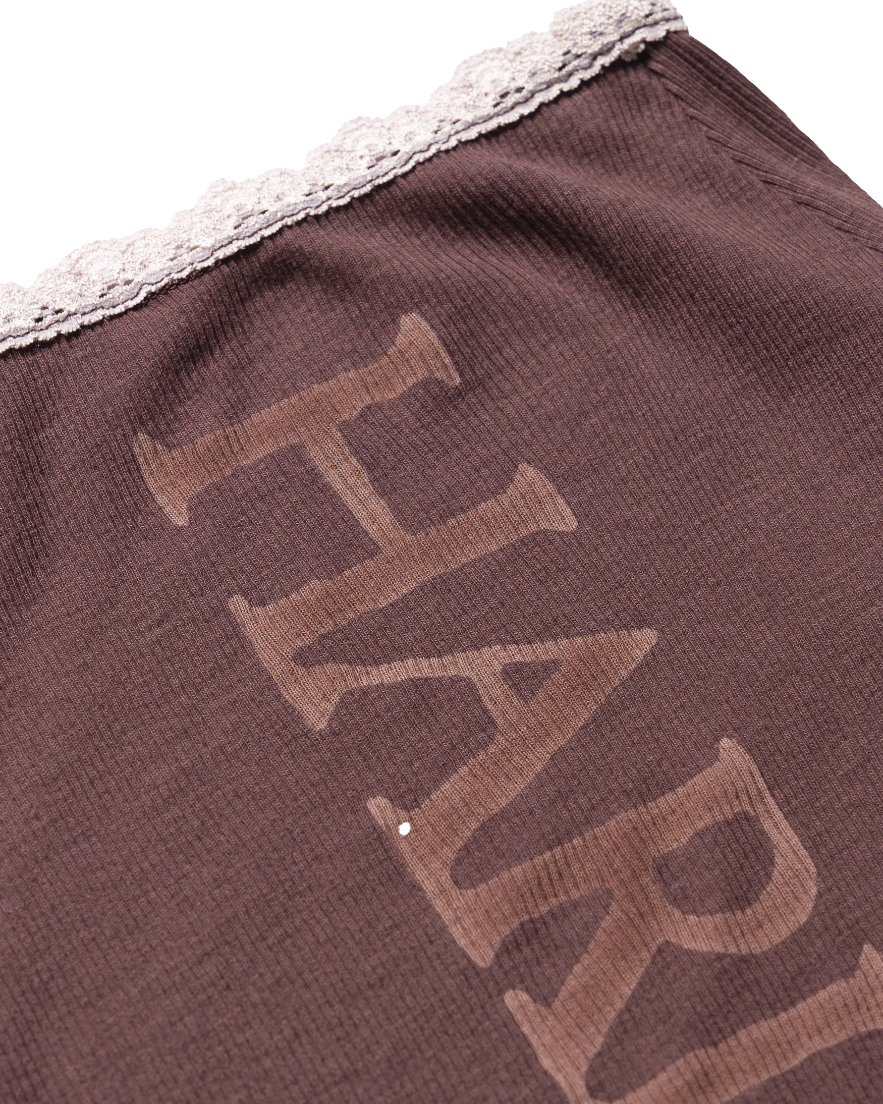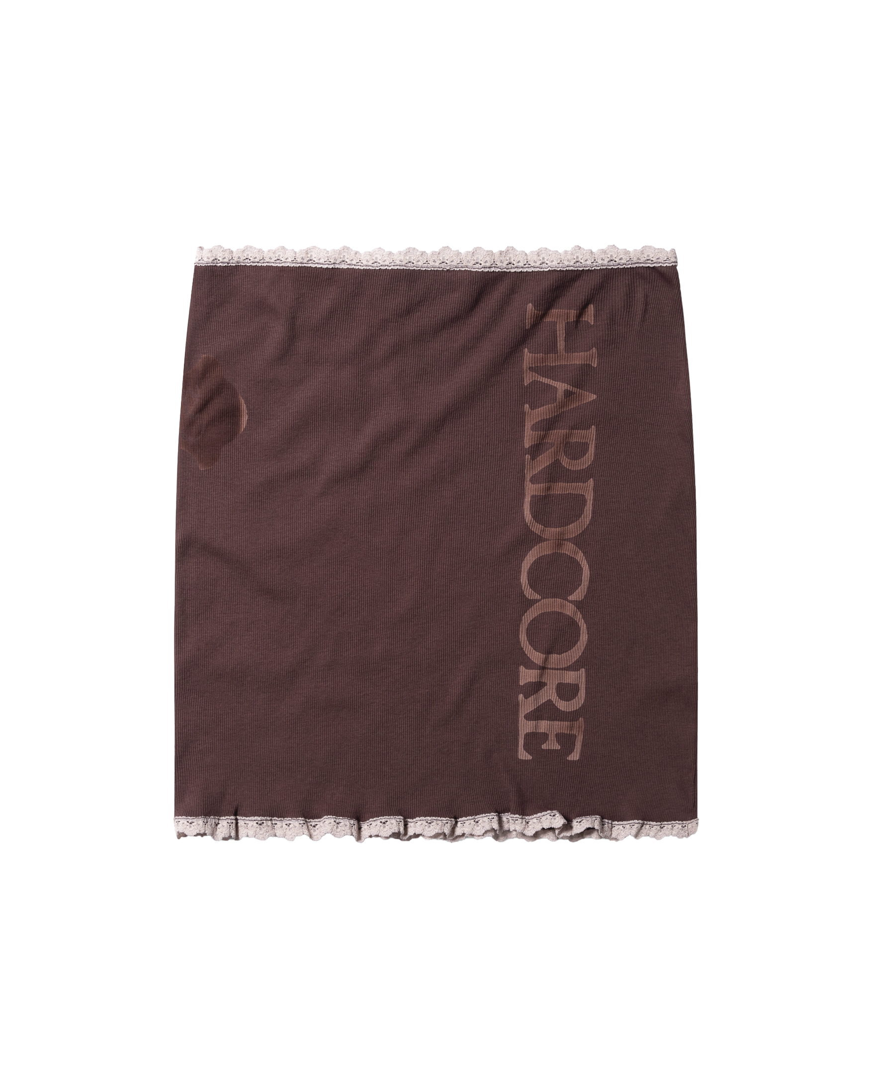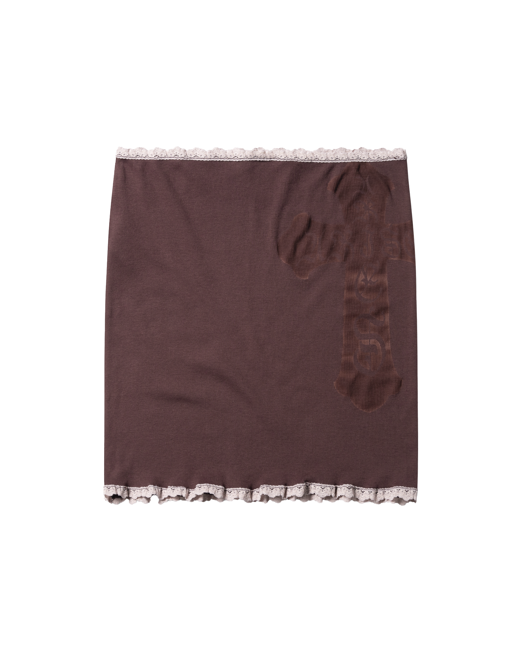 Lightweight cotton jersey rib skirt with a lace trim. Featuring seasonal Aries Graphic screen prints.