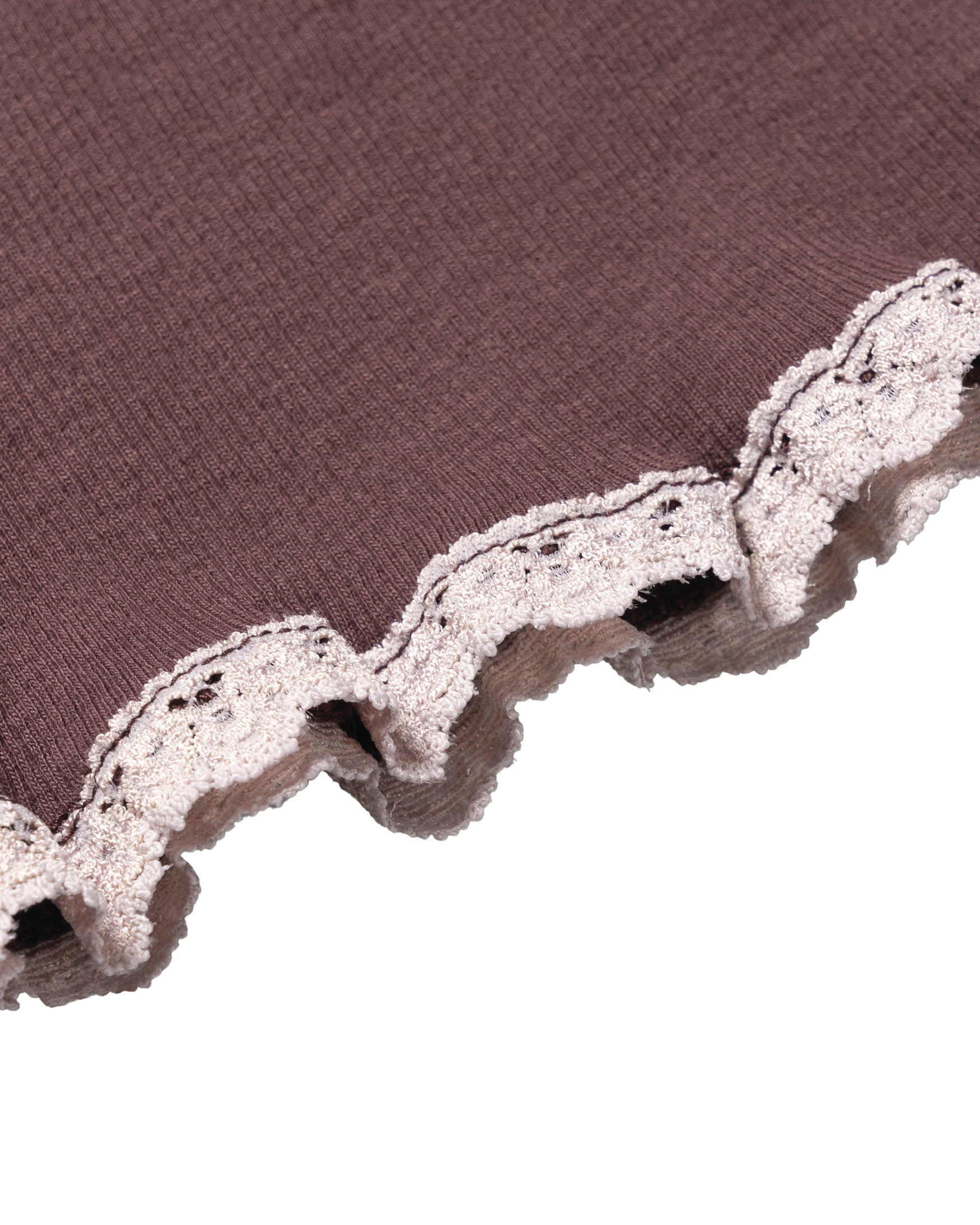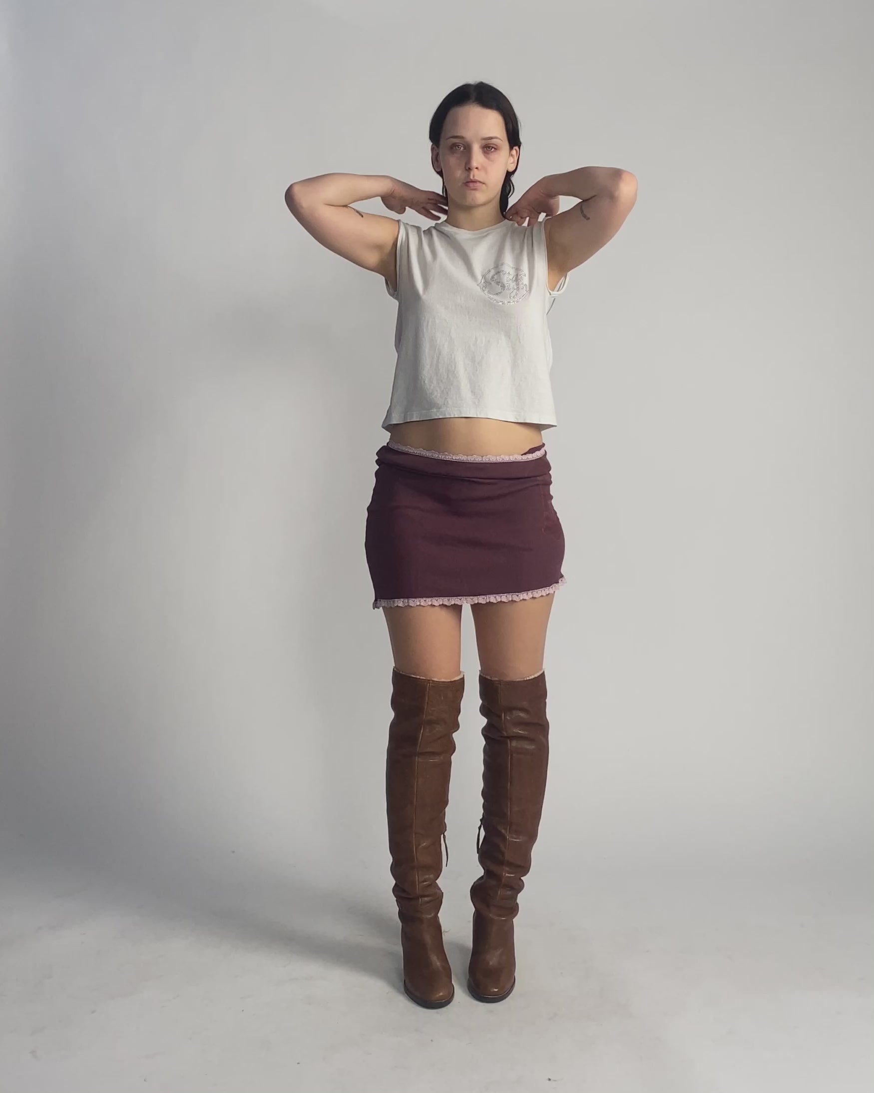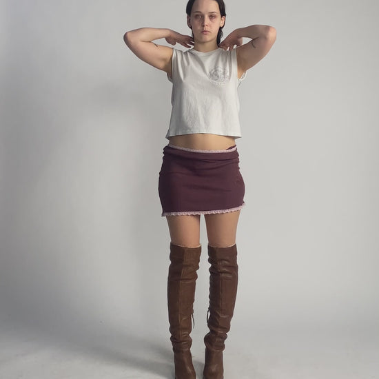 Lightweight cotton jersey rib skirt with a lace trim. Featuring seasonal Aries Graphic screen prints.