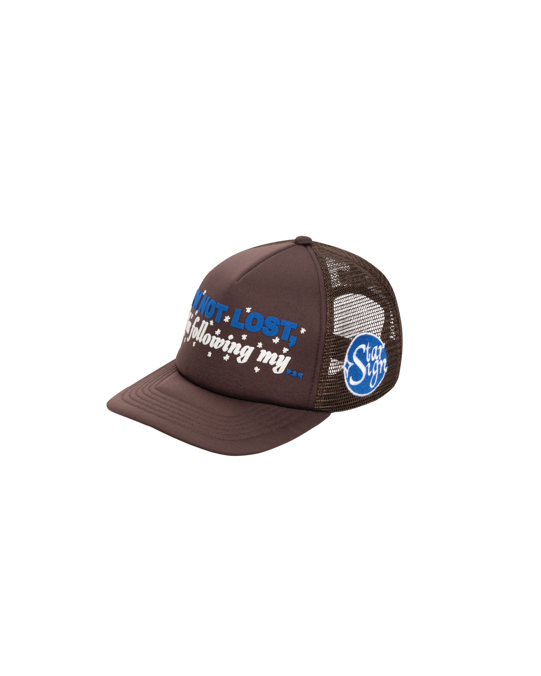 Classic trucker cap with Star Sign patch and Aries embroidery.