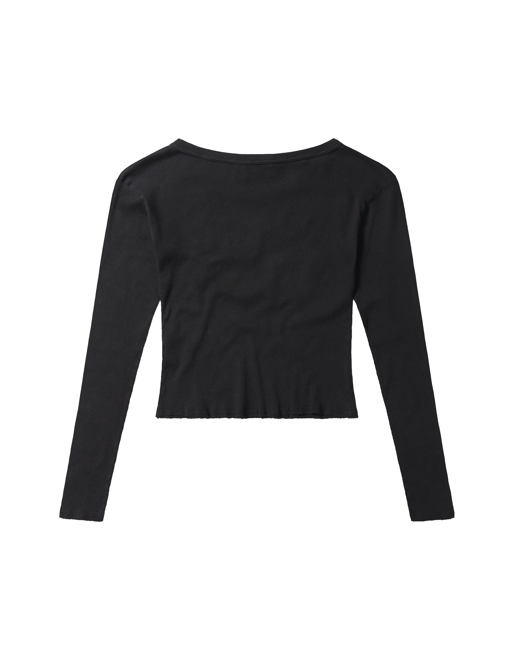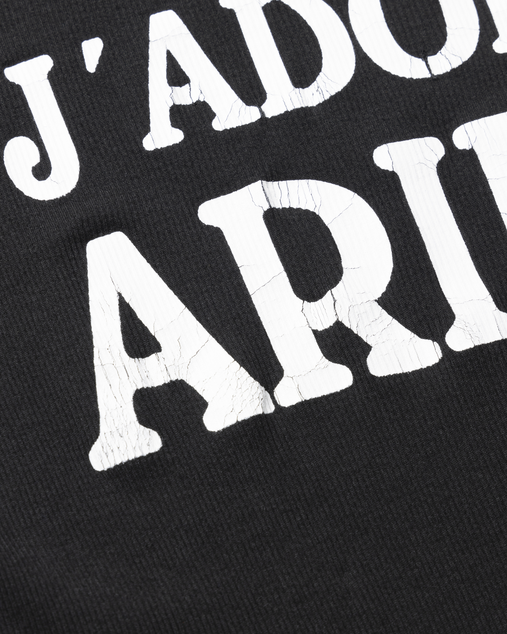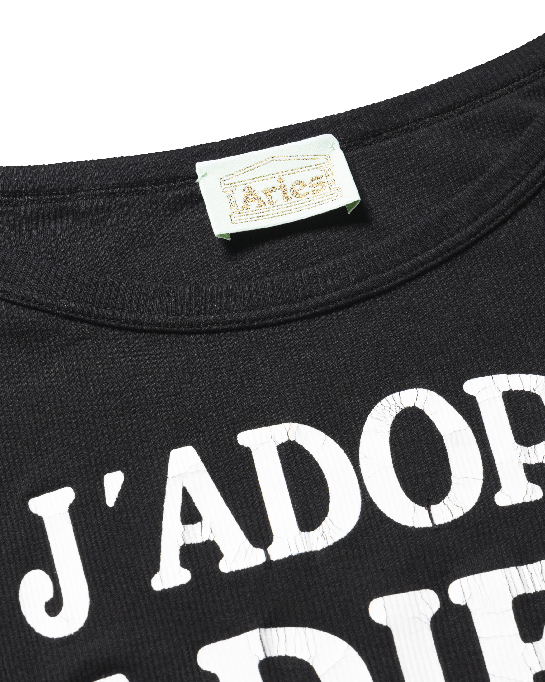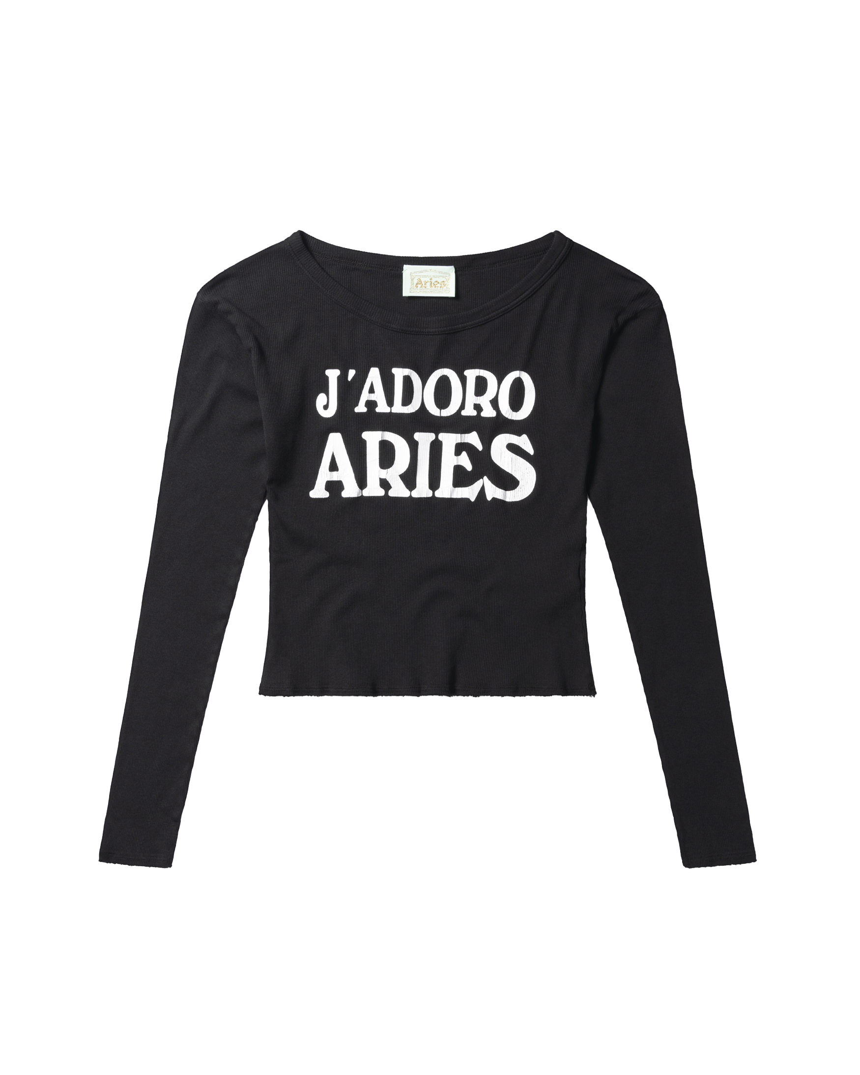 Shrunken long sleeved tee in a lightweight ribbed cotton featuring a cracked J'adoro Aries screen print.