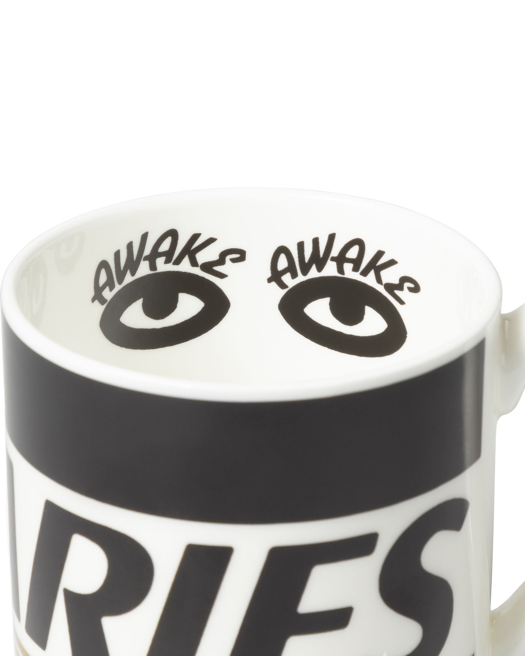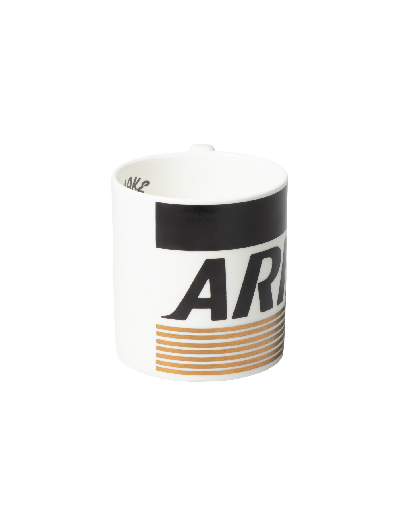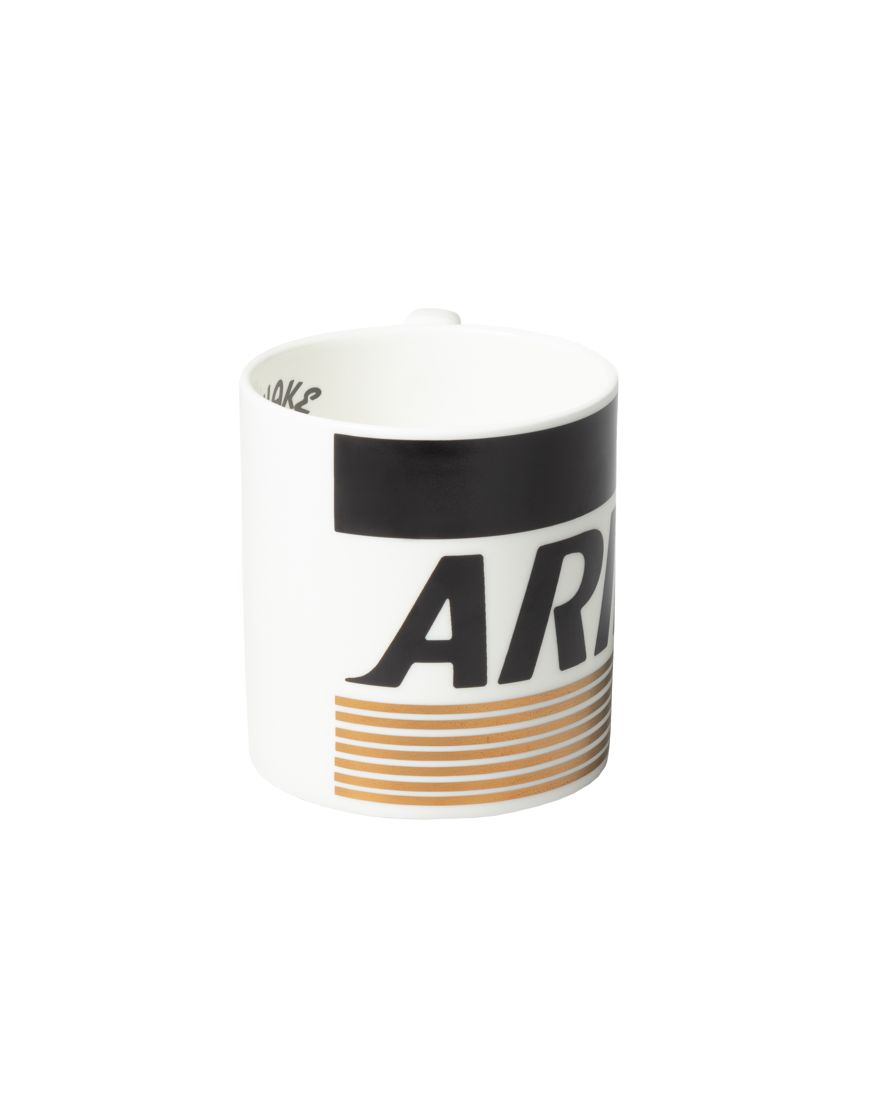 Aries bone china mug with classic Aries Credit Card graphic in gold leaf and black. Aries temple logo on base.