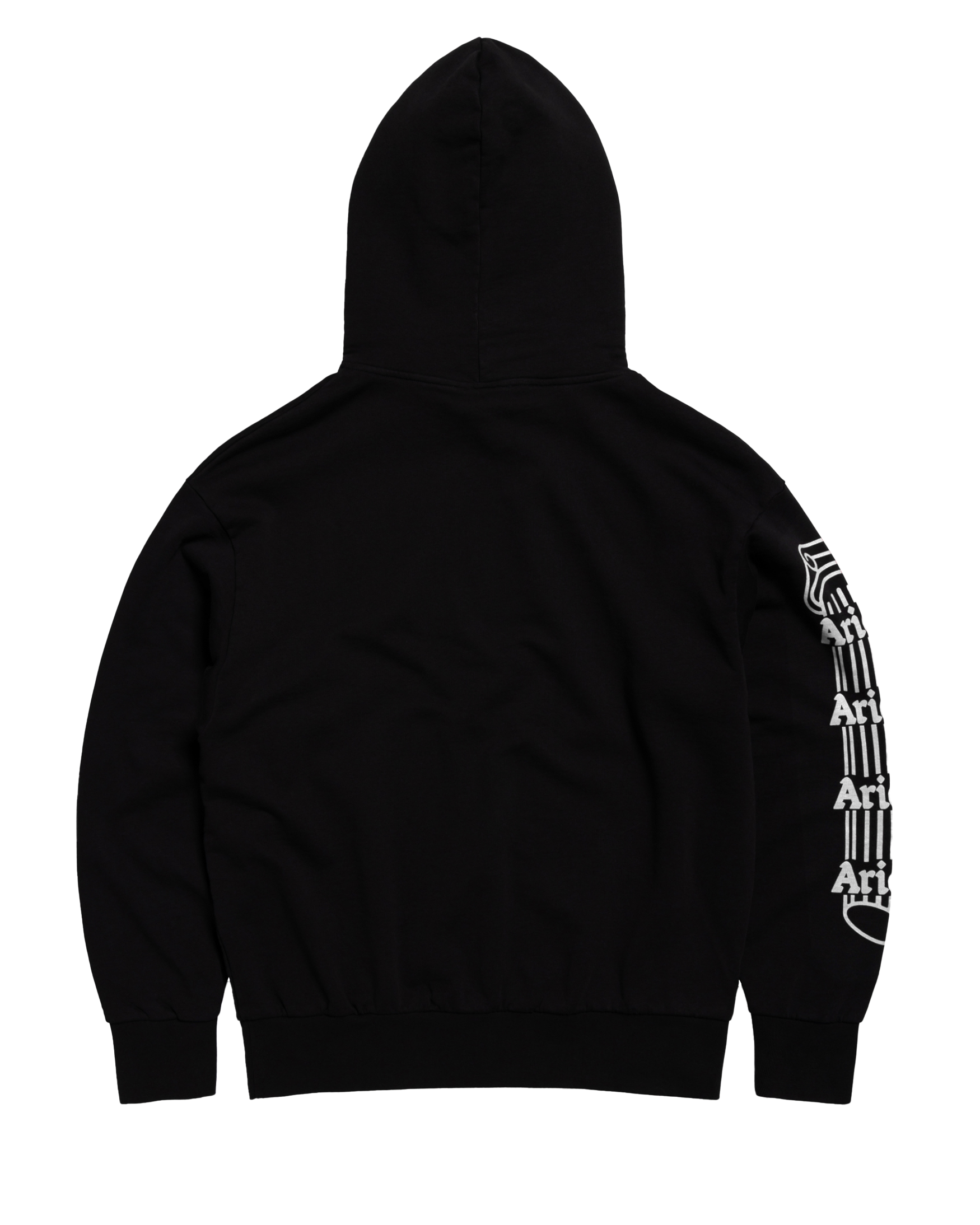 Hooded sweatshirt made from brushed-back jersey fleece, featuring Aries Temple and Column screen-printed graphics.