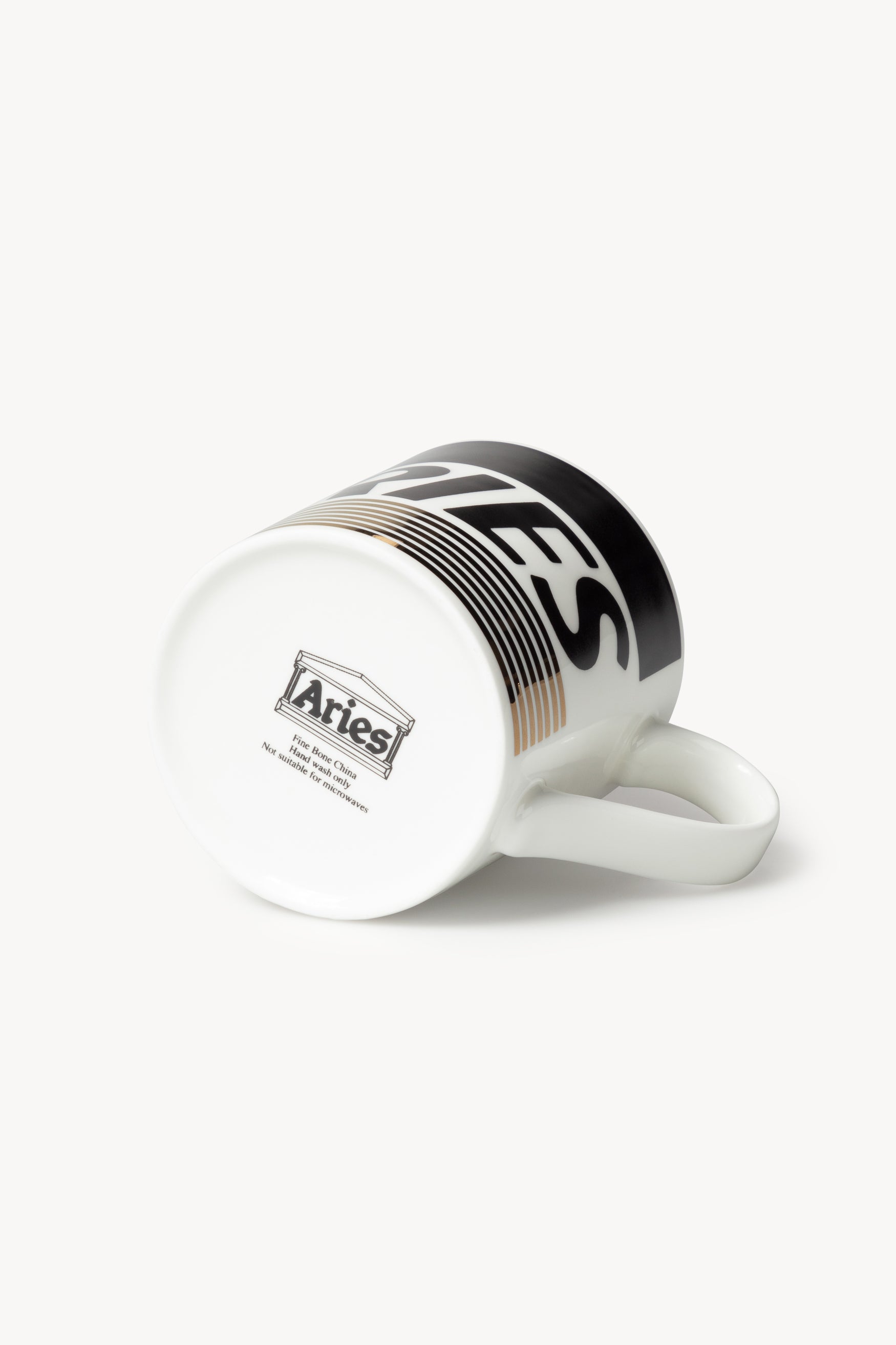 Aries bone china mug with classic Aries Credit Card graphic in gold leaf and black. Aries temple logo on base.