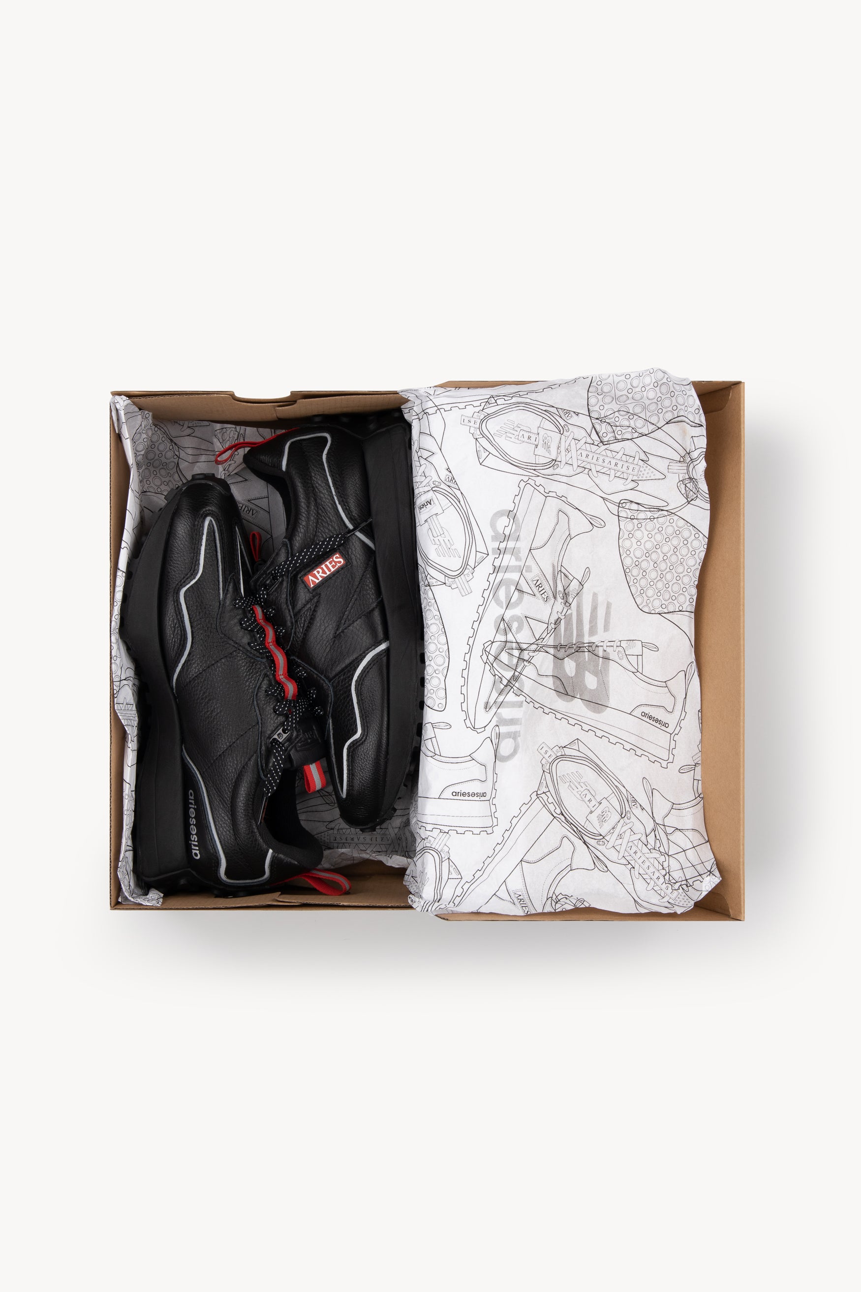 Aries x New Balance new 327 - hybrid between a classic 90’s casuals style and an Italian sport-fashion trainer with a bit of 00s reflective highlights. Made in white leather with a gum sole.