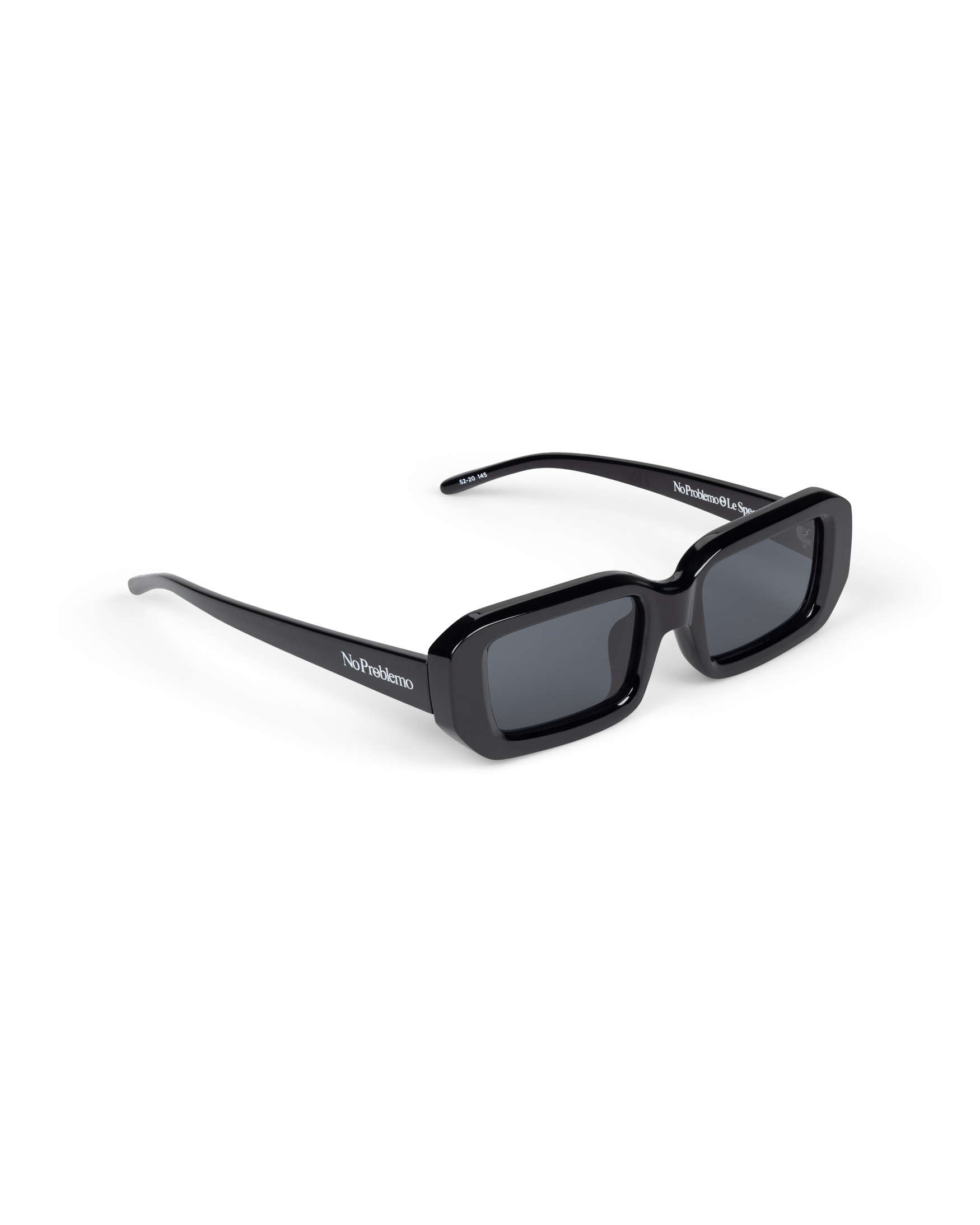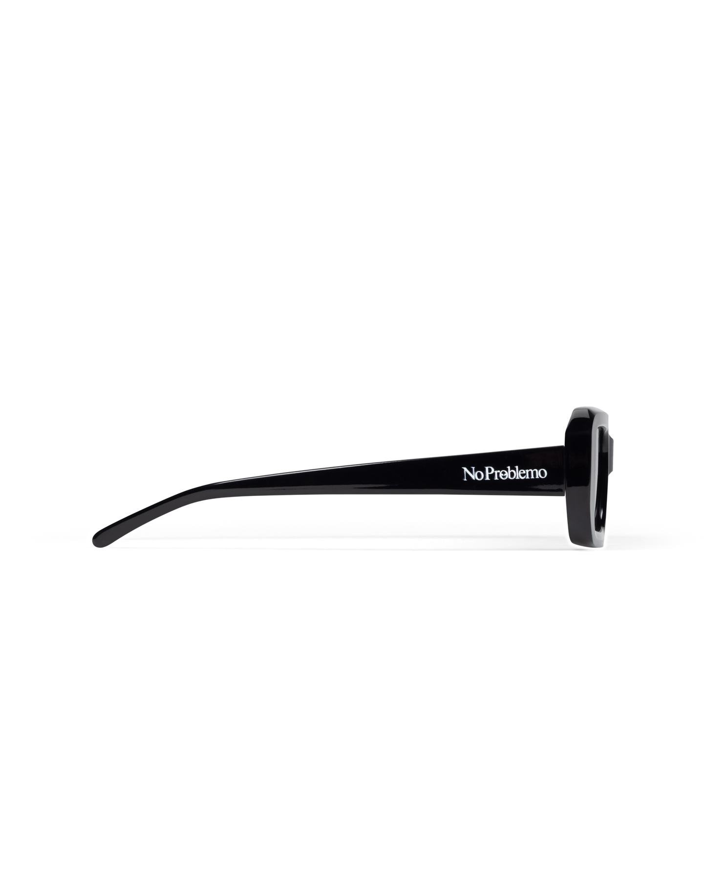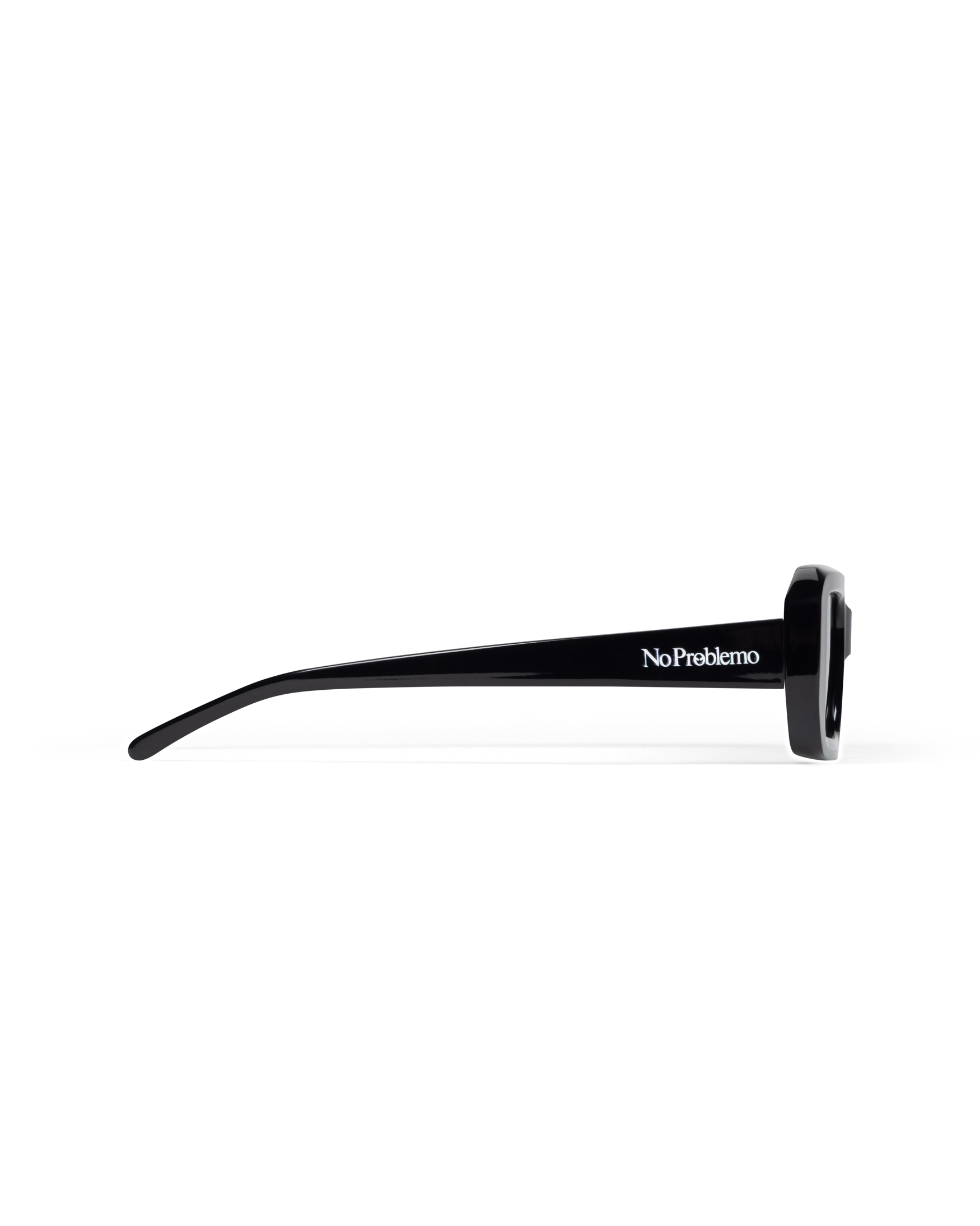 designed with a contemporary rectangular shape, the blackpool sunglasses are designed with narrow proportions and wide fit for all face sizes. this unisex frame features soft bevelled details and sleek tapered temples and is finished with no problemo logo print to temple.