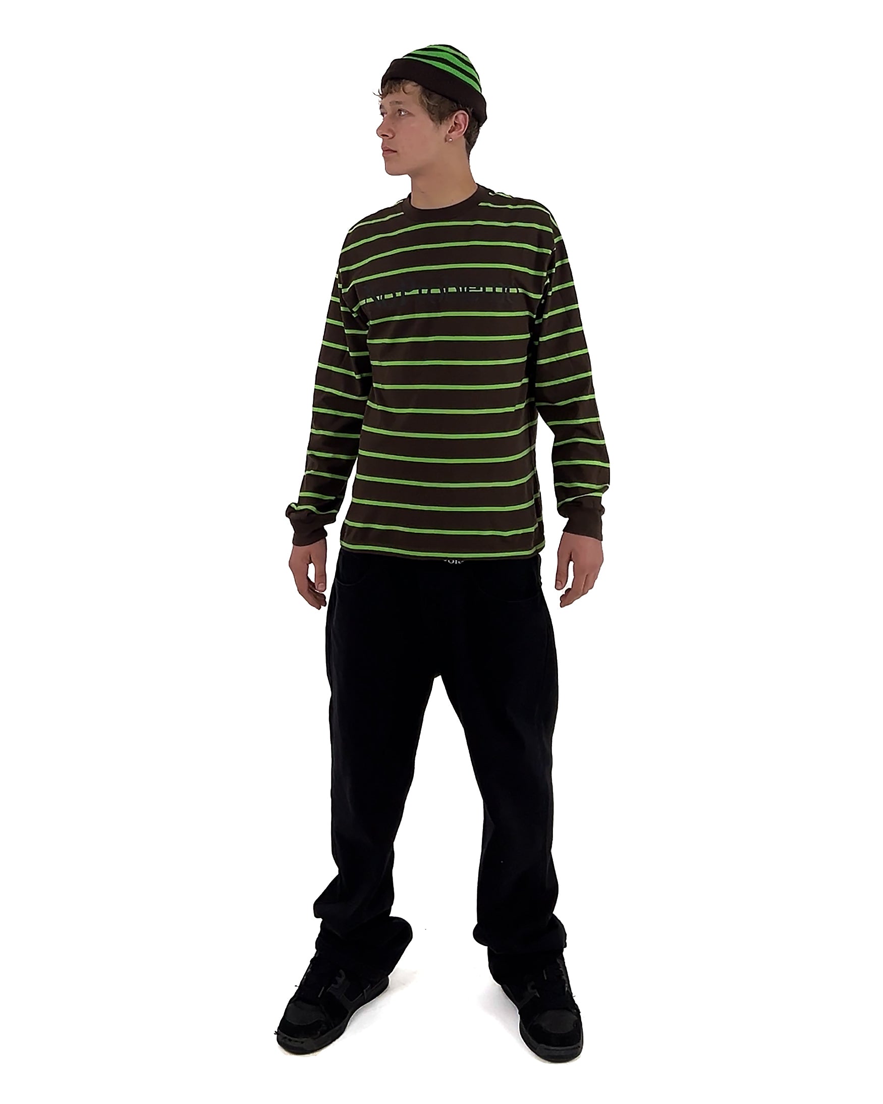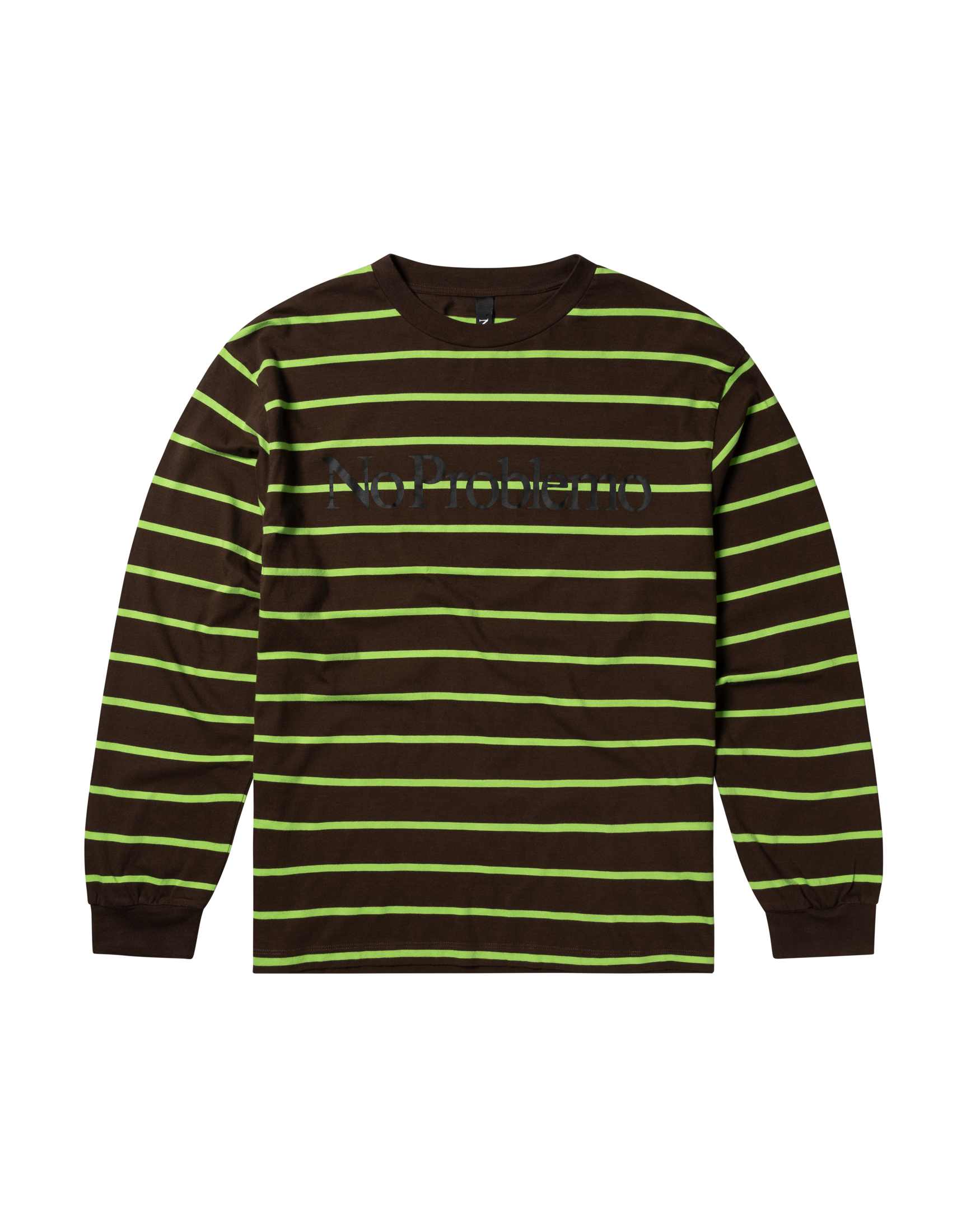 FEATURING A CLASSIC 'NO PROBLEMO' GRAPHIC SCREEN PRINTED ON THE FRONT AND YARN DYED STRIPE