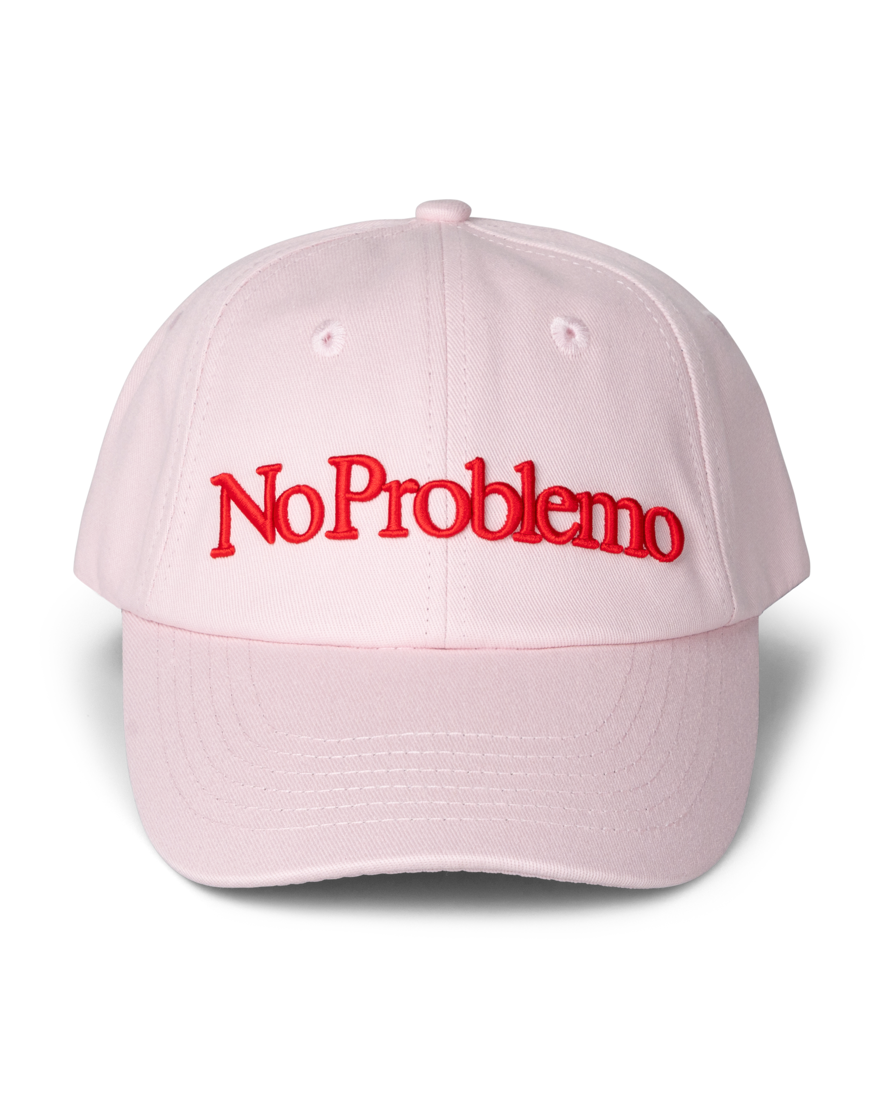 6 panel cap made from 100% cotton drill with a plastic back strap featuring a no problemo 3d front embroidery and a gothic alieno embroidery on the back.