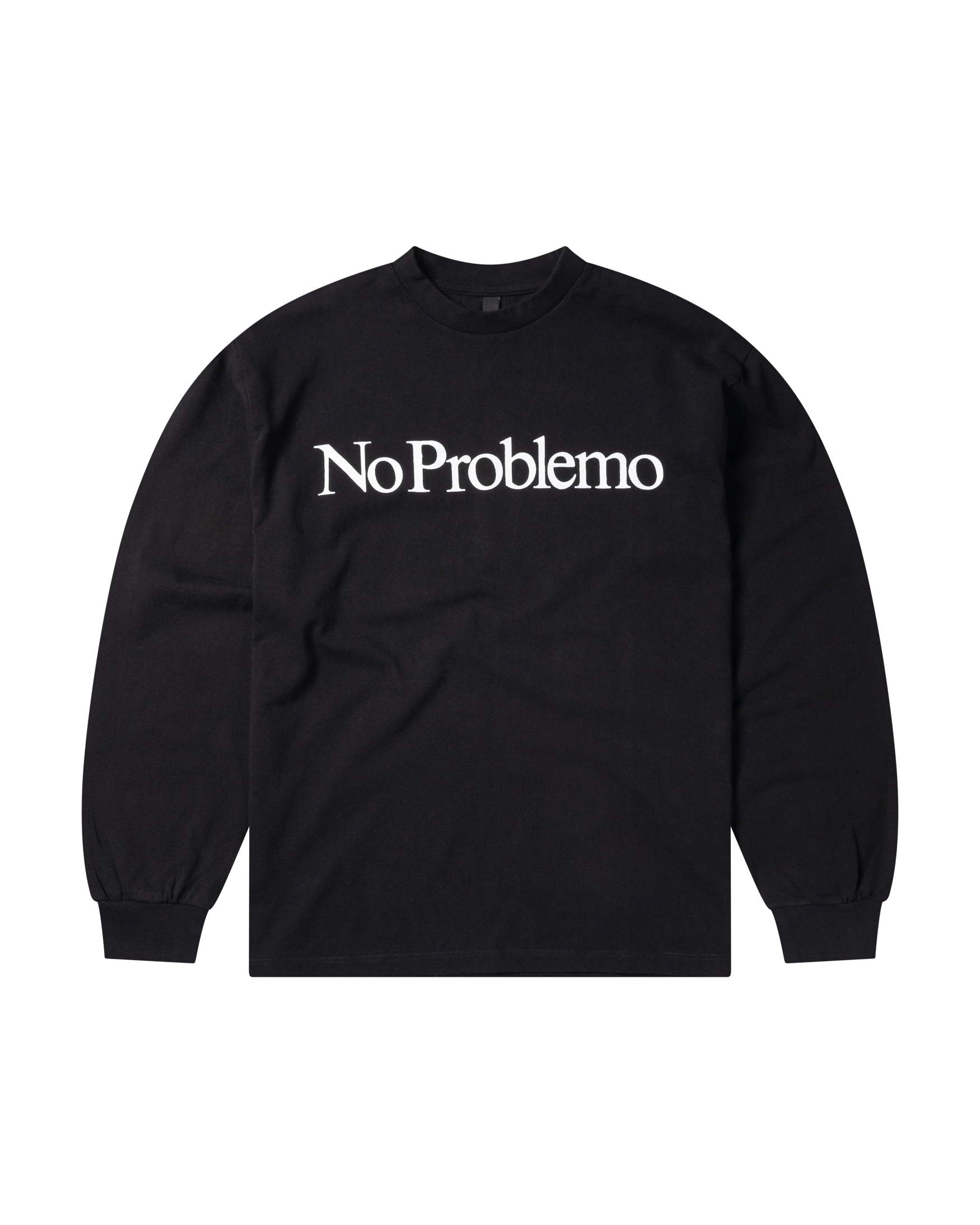 unisex long sleeve t-shirt made from 100% cotton, heavy-weight jersey with a classic 'no problemo' graphic screen printed on the front.