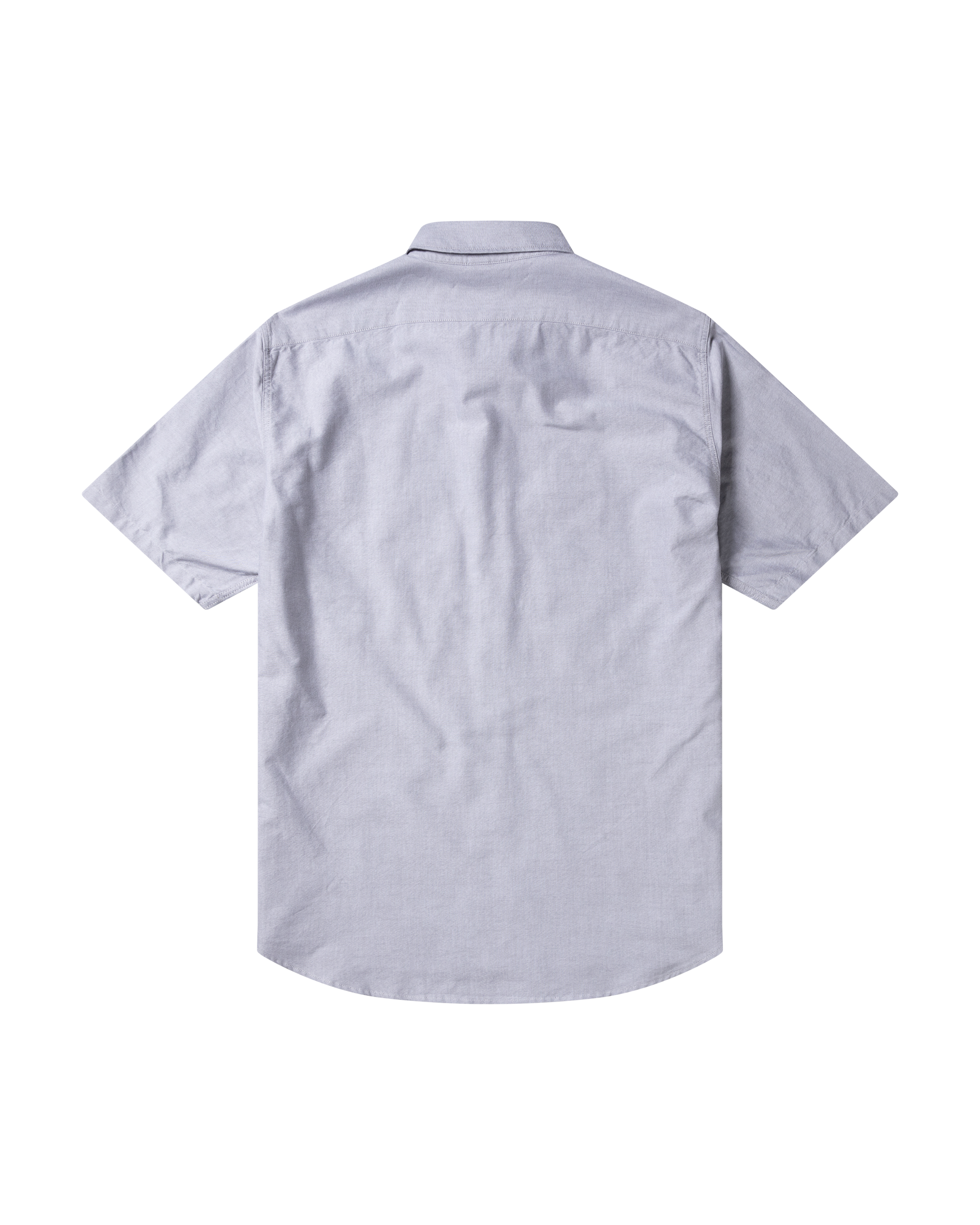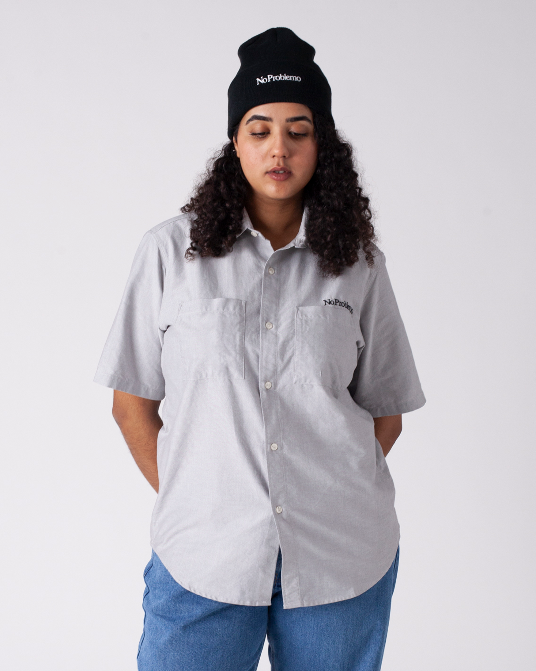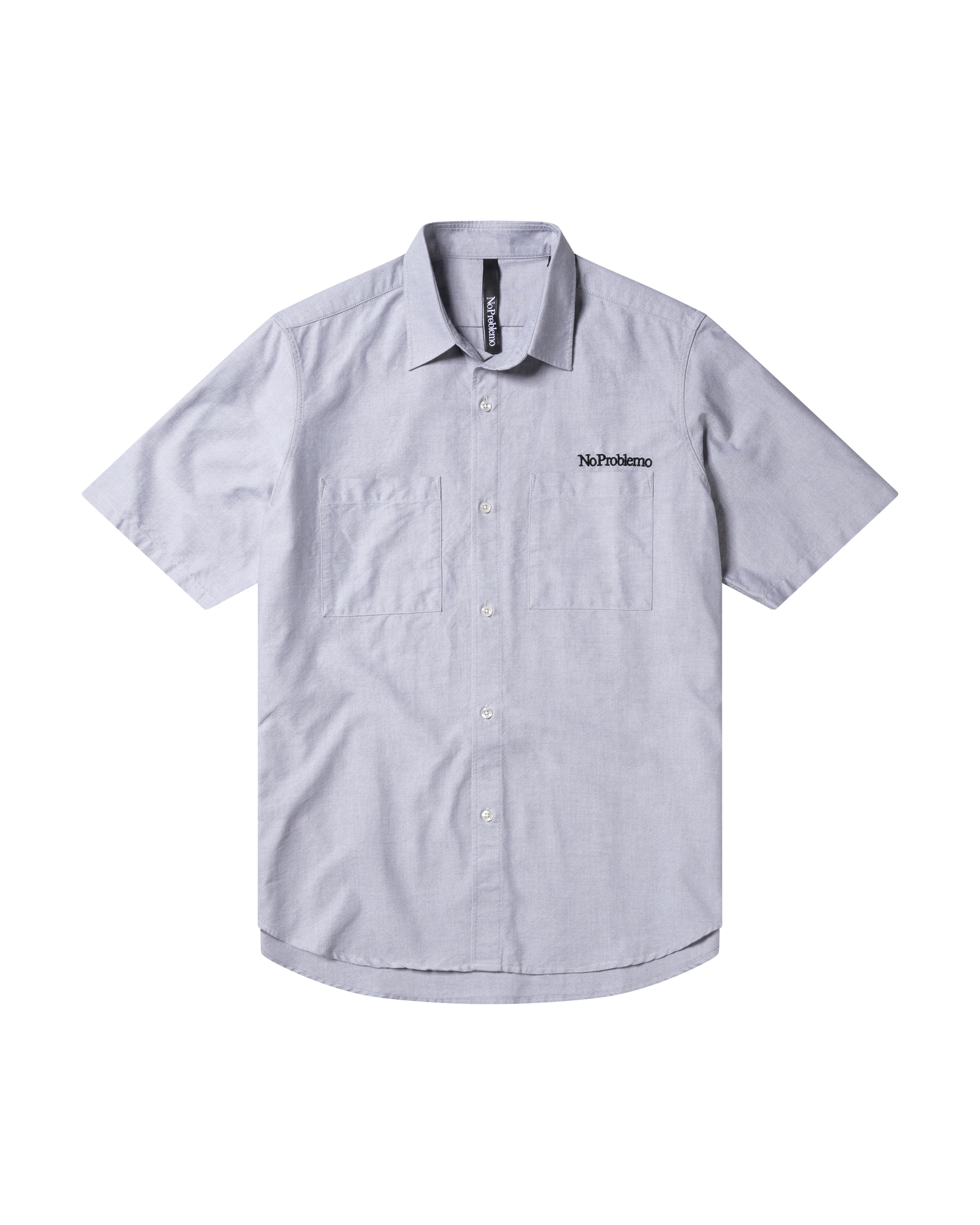 classic short-sleeved shirt featuring a mini problemo logo embroidery over the chest pocket.