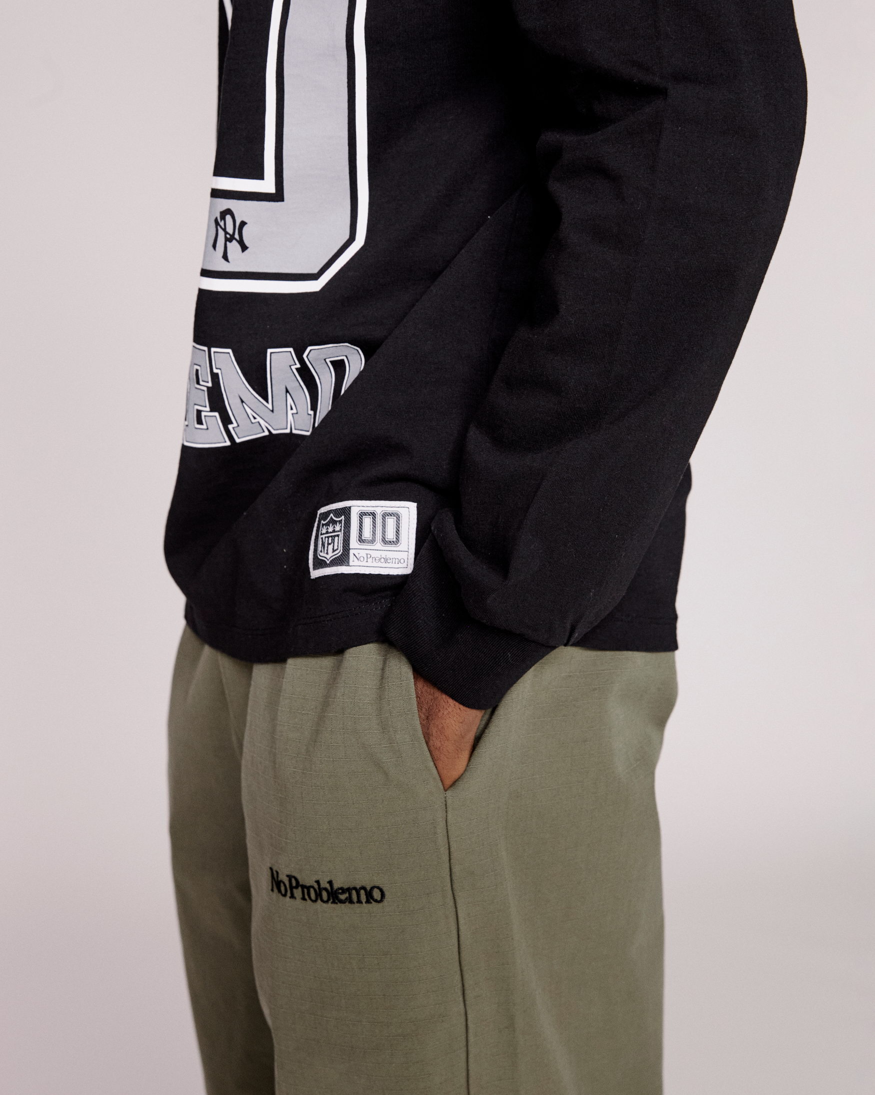 featuring woven patch and mini problemo embroidered logo.